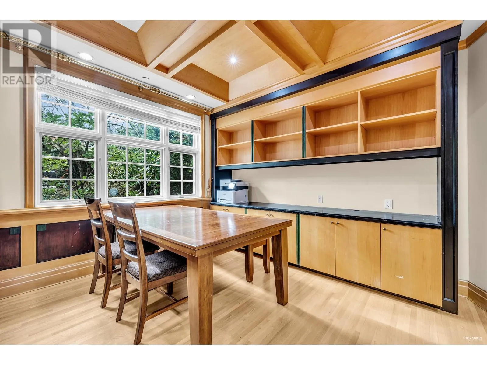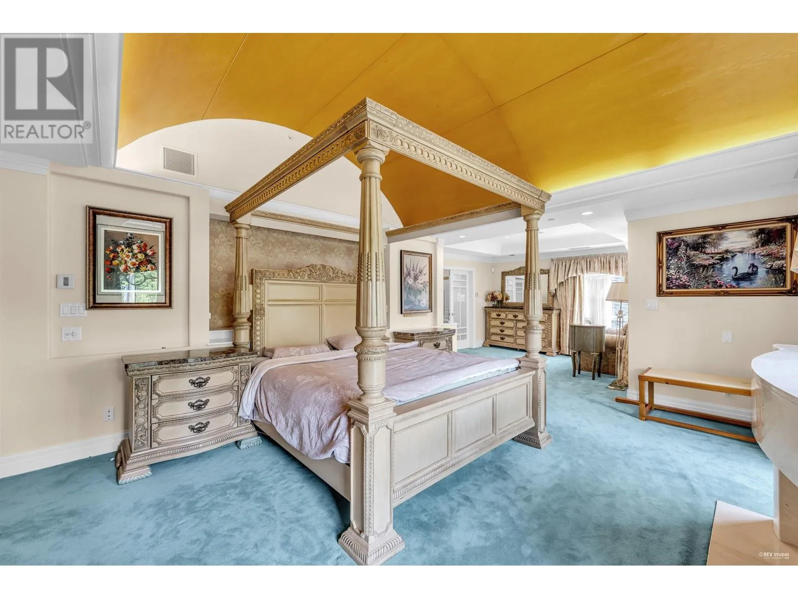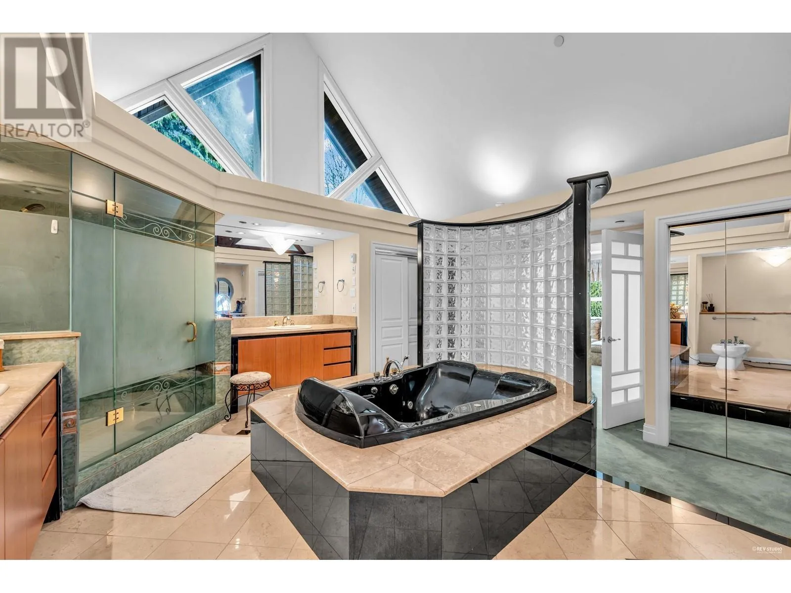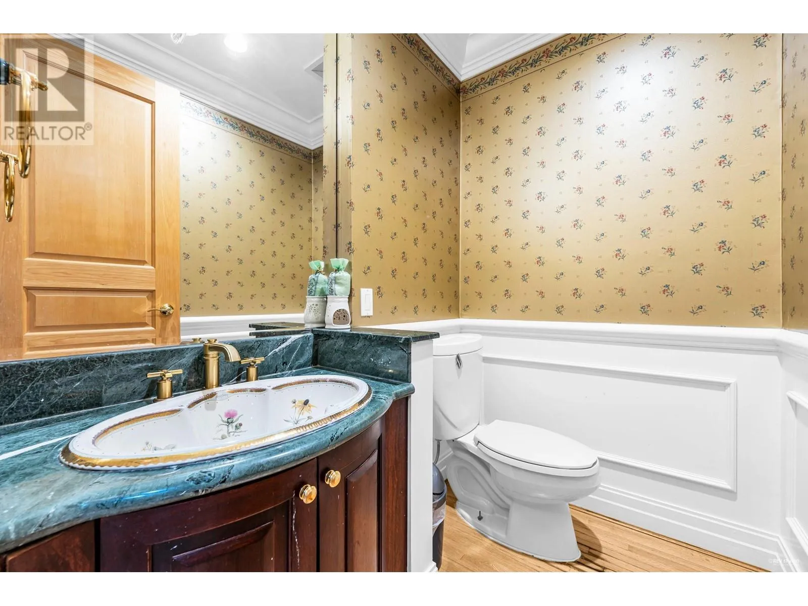 Stunning custom-built mansion in prestigious 1st Shaughnessy, showcasing exquisite craftsmanship and premium finishes. Features include a grand double-height foyer, indoor fish pond with waterfall, elegant living/dining areas, and maple hardwood flooring. The gourmet and wok kitchens are outfitted with top-tier appliances, opening to a large deck overlooking a landscaped backyard with a fish pond. Upstairs offers 4 spacious ensuite bedrooms (3 with steam showers), while the lower level includes a home theatre, gym, office, and guest suite. Additional luxuries: indoor pool, A/C, HRV, radiant heat, elevator, sauna, smart security, and 4-car garage-all set within a beautifully fenced garden. (id:27476)