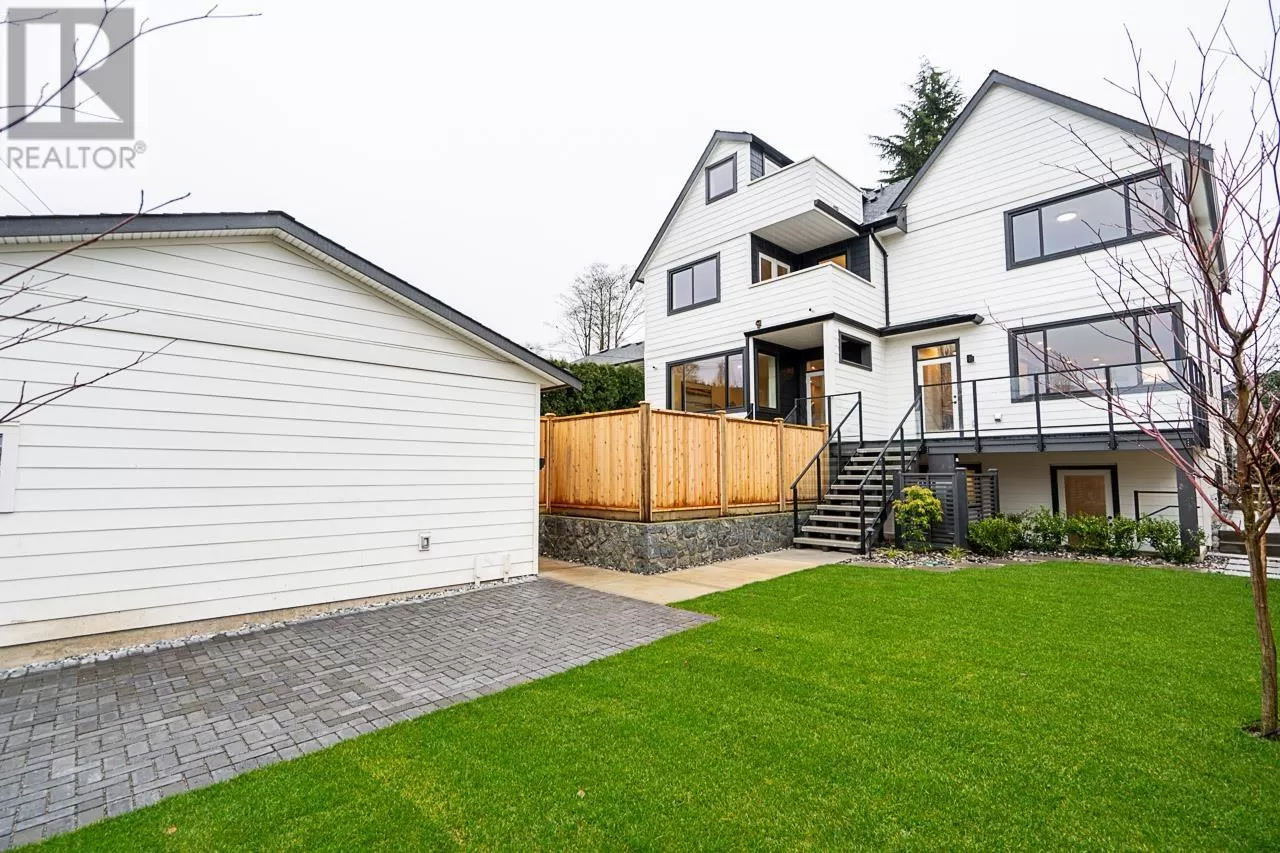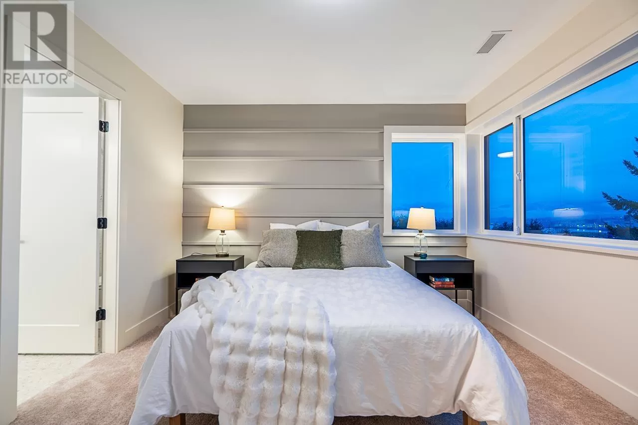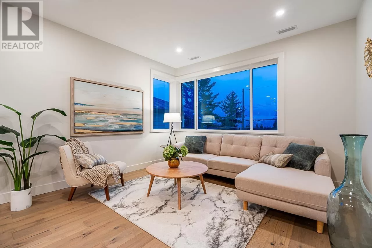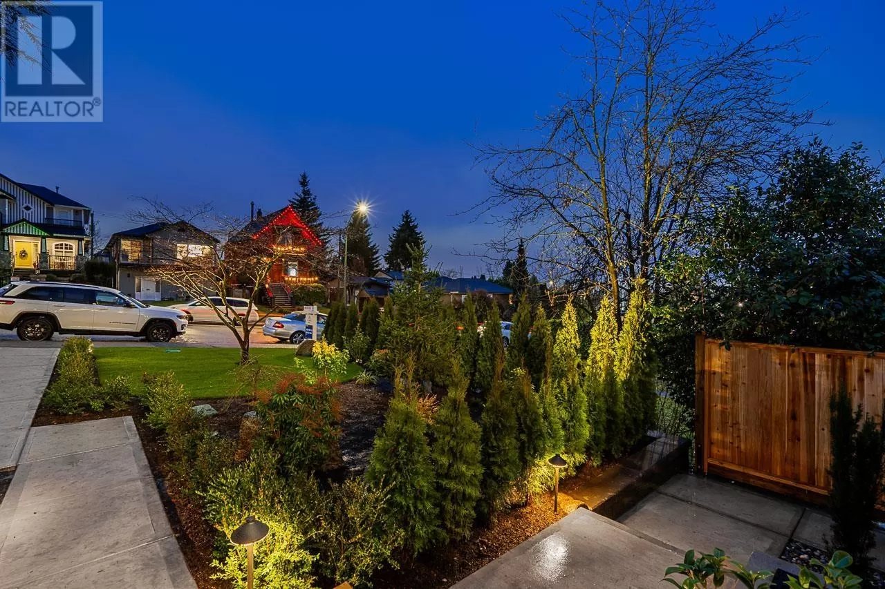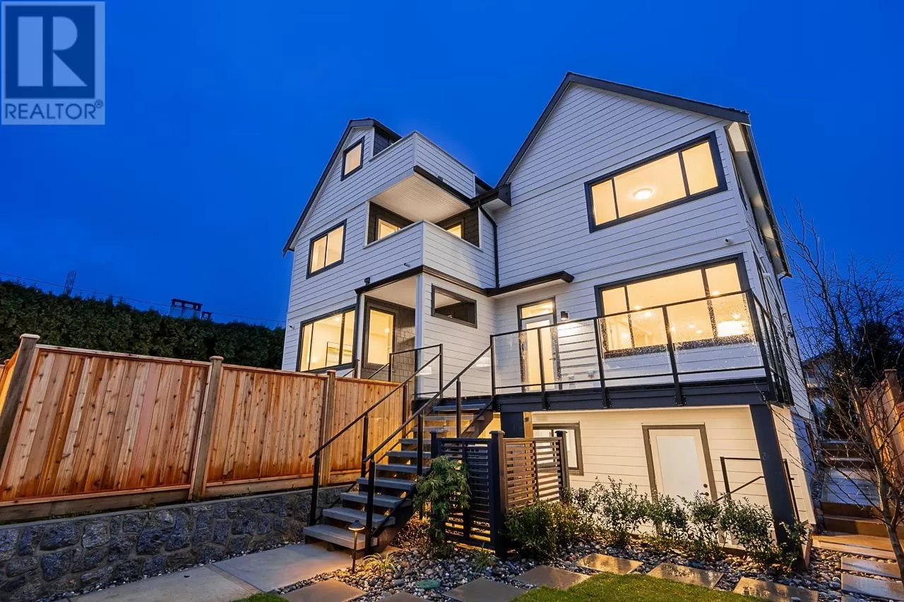 Outstanding mountain and water views from this modern, sleek half-duplex built by a long established European builder. Fabulous family neighbourhood close to parks, schools, and transit. Minutes to downtown and Hwy 1 access. Great room concept on main floor showcasing wide plank oak hardwood floors, high ceilings, and a gourmet kitchen with a pantry, eat-up island and Fisher & Paykel appliances. Upstairs has 3 bedrooms, including a beautiful primary bedroom with an ensuite, walk-in closet and large windows with spectacular views. The basement features a bright, legal 2 bdrm suite. The yard is beautifully landscaped with lighting, irrigation, feature trees and a rear deck overlooking the fenced backyard. Complete with a single garage and a paving stone parking spot with an automatic gate. (id:27476)
