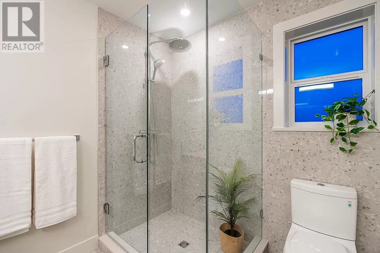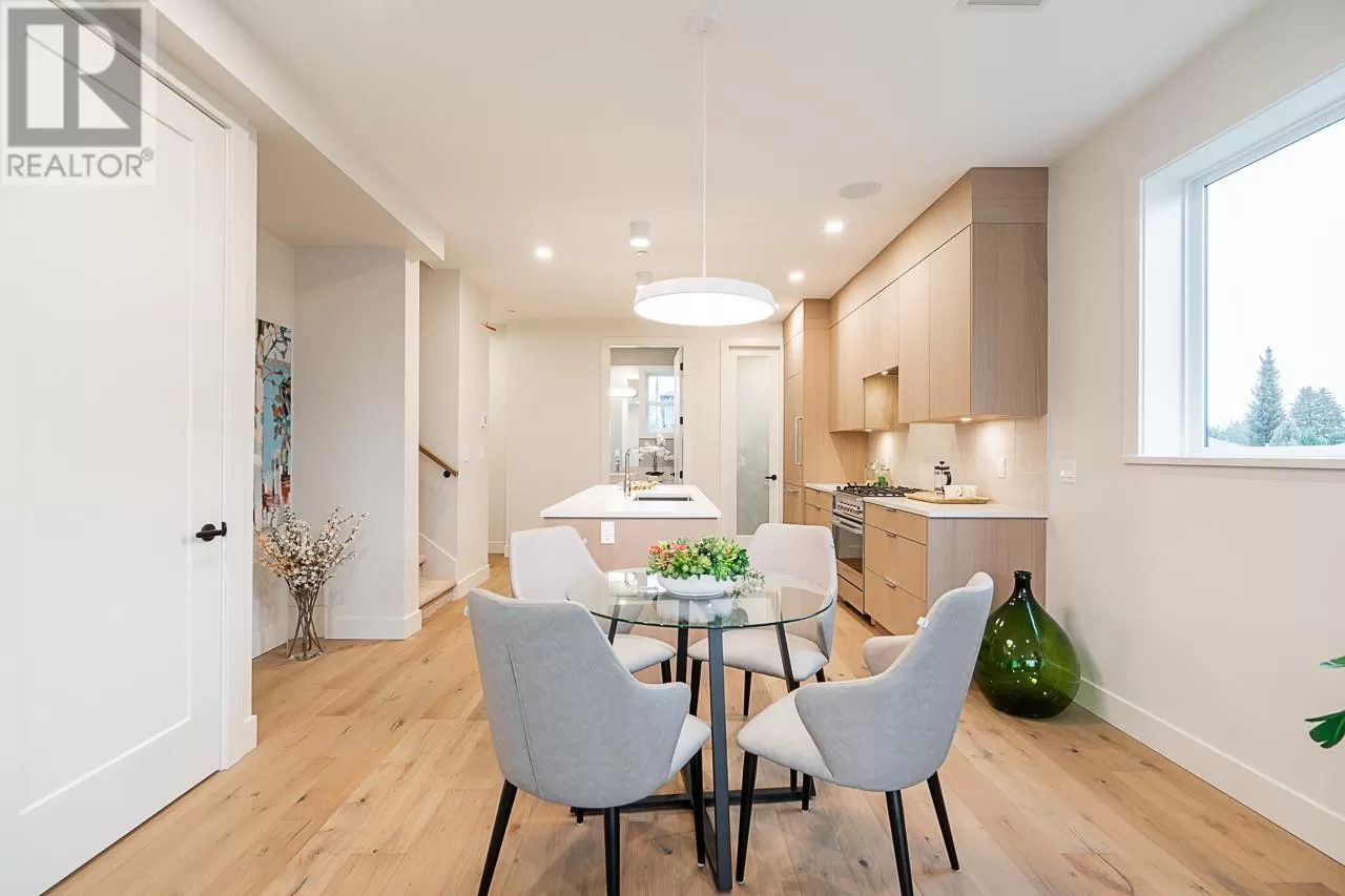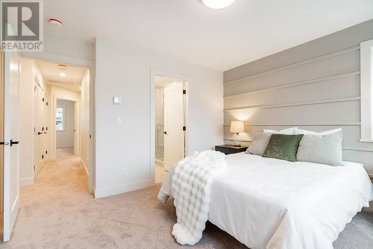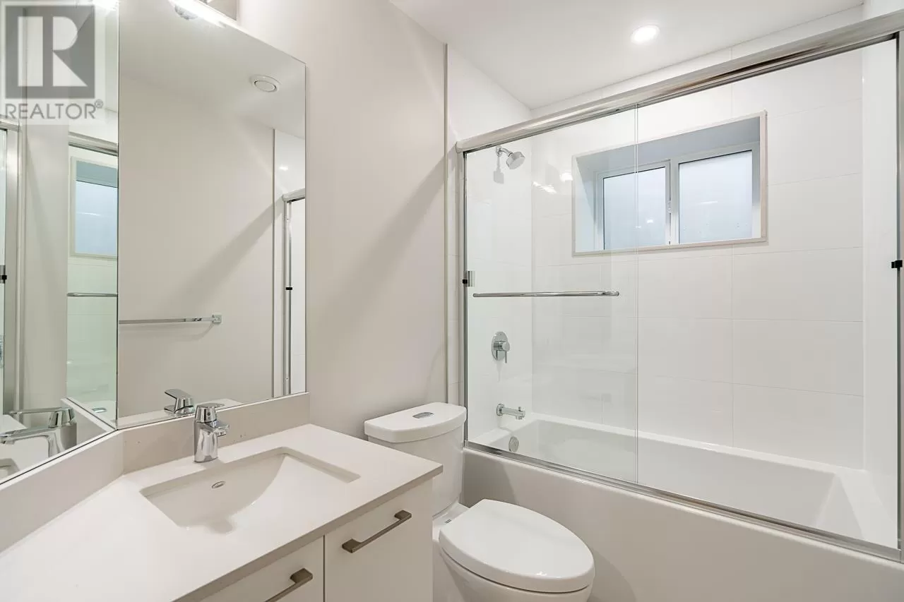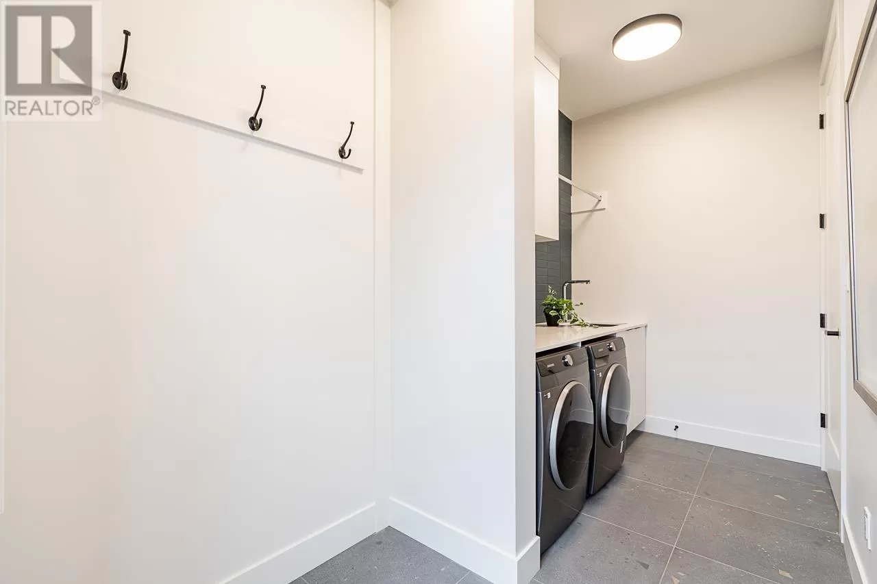 Outstanding mountain and water views from this modern, sleek half-duplex built by a long established European builder. Fabulous family neighbourhood close to parks, schools, and transit. Minutes to downtown and Hwy 1 access. Great room concept on main floor showcasing wide plank oak hardwood floors, high ceilings, and a gourmet kitchen with a pantry, eat-up island and Fisher & Paykel appliances. Upstairs has 3 bedrooms, including a beautiful primary bedroom with an ensuite, walk-in closet and large windows with spectacular views. The basement features a bright, legal 2 bdrm suite. The yard is beautifully landscaped with lighting, irrigation, feature trees and a rear deck overlooking the fenced backyard. Complete with a single garage and a paving stone parking spot with an automatic gate. (id:27476)