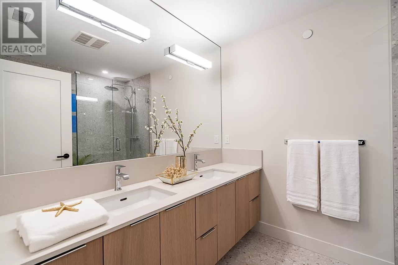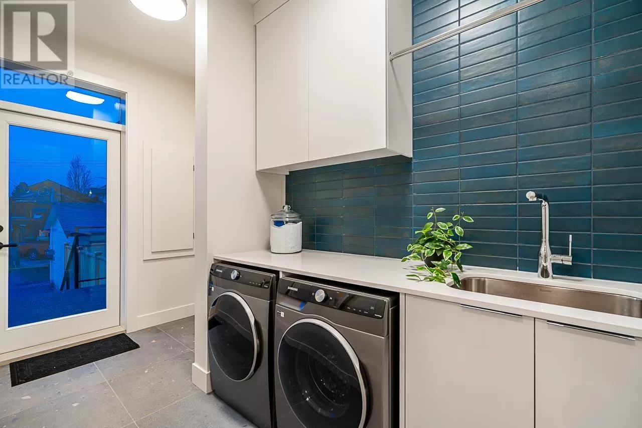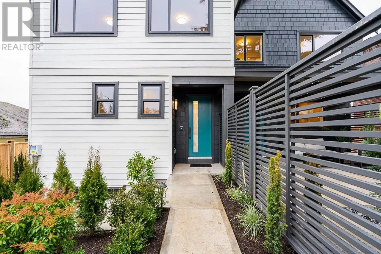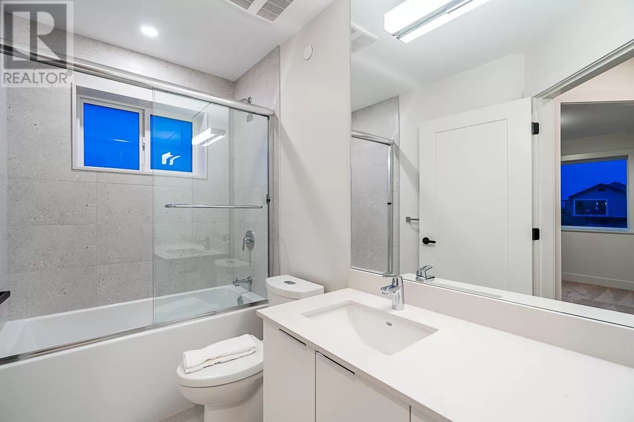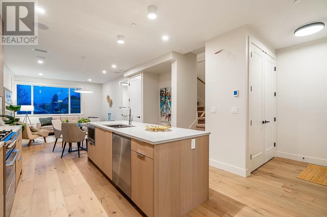 Outstanding mountain and water views from this modern, sleek half-duplex built by a long established European builder. Fabulous family neighbourhood close to parks, schools, and transit. Minutes to downtown and Hwy 1 access. Great room concept on main floor showcasing wide plank oak hardwood floors, high ceilings, and a gourmet kitchen with a pantry, eat-up island and Fisher & Paykel appliances. Upstairs has 3 bedrooms, including a beautiful primary bedroom with an ensuite, walk-in closet and large windows with spectacular views. The basement features a bright, legal 2 bdrm suite. The yard is beautifully landscaped with lighting, irrigation, feature trees and a rear deck overlooking the fenced backyard. Complete with a single garage and a paving stone parking spot with an automatic gate. (id:27476)