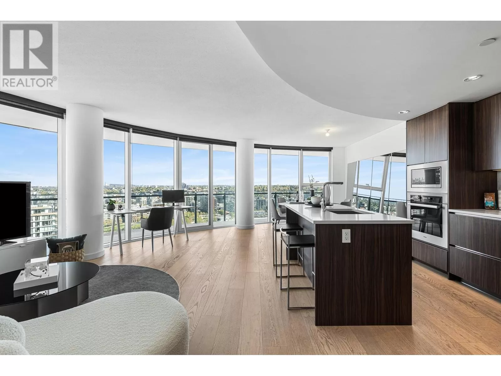 Sub-Penthouse Level at the coveted 'Arc' by Concord Pacific. Experience elevated living in one of Vancouver´s most iconic and architecturally striking buildings. This 2 bed + flex + 2 bath bright corner suite has a phenomenal layout, with floor-to-ceiling windows, fully Air Conditioned, and a 363sf wrap-around balcony showcasing Post Card Views of False Creek and City. High-end finishes include Miele appliances, sleek cabinetry, wood flooring, and quartz counters. Spacious Flex Room, ideal for a home office. Enjoy world-class amenities including a glass-bottom pool on the 20th floor, spa, gym, lounges, and sky gardens. 2 Parking Stalls and 1 locker. Steps to the Seawall, Marina, and Yaletown's World Class shopping and dining. (id:27476)