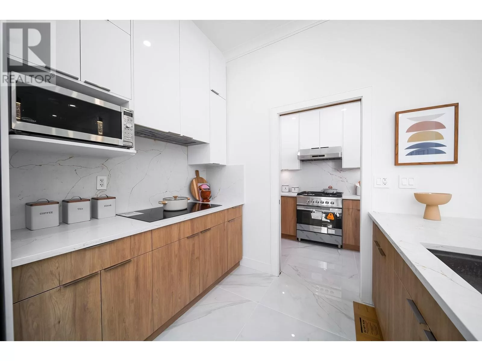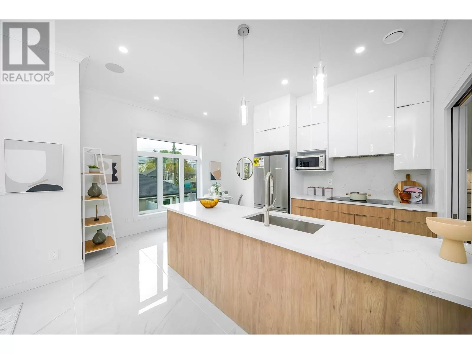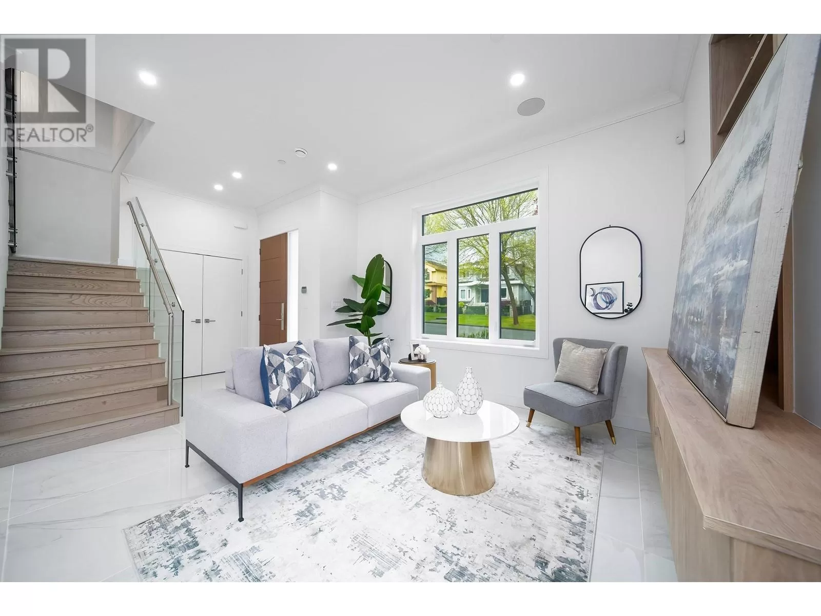 Court ordered sale of the whole property of side by side duplex. The two 1/2 duplexes are not legally strata approved yet, which could be a great benefit for some buyers. Top quality built 3 levels with a 2 bedrooms legal rental suite in each 1/2 duplex. Property is facing north, with very sunny fenced backyards, 4 parking spaces for each unit (1 in garage, 2 open spaces, 1 street parking), located in a great area, close to shopping area, restaurants, skytrain station. (id:27476)