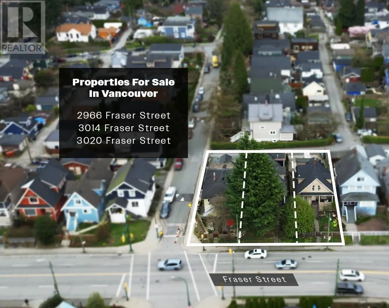 Land for sale under the Broadway Plan, City zoned for mid to high-rise potential. Good for future development, currently tenanted. Property can be sold with 2 other neighboring lots. Addresses listed 3014, 2966 Fraser Street. (id:27476)
