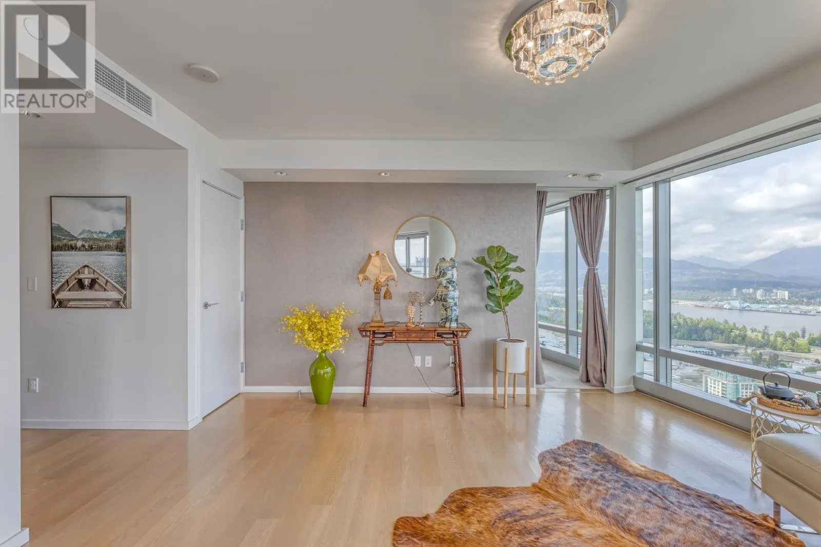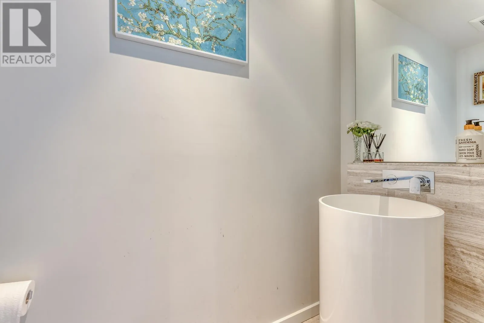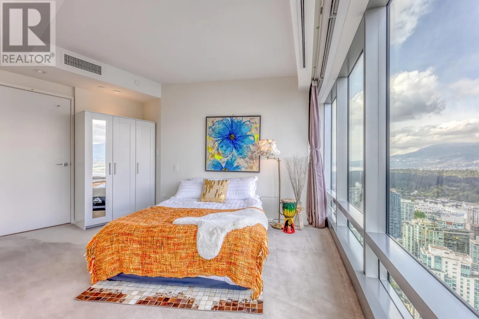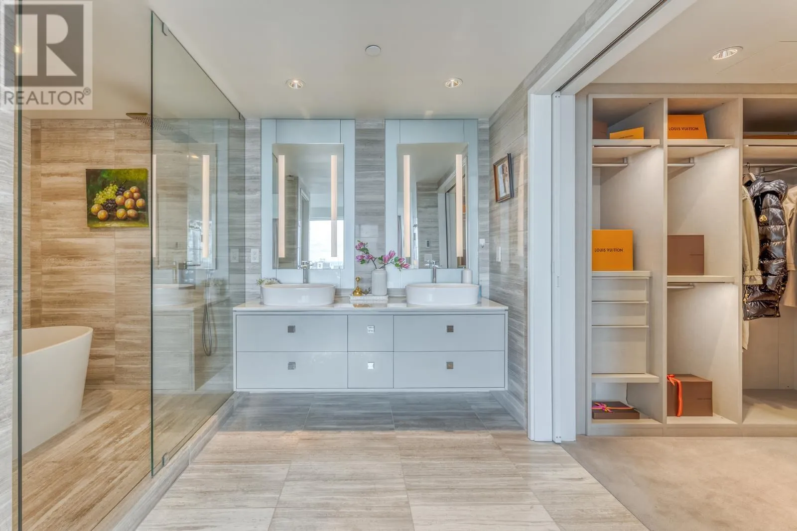 Panoramic views of Coal Harbour, the North Shore Mountains, and Stanley Park. Located at Paradox, a modern landmark - blending bold designs with high-end comfort, this spacious home offers 2 bedrooms and 2.5 bathrooms with luxurious finishes throughout. The Arclinea kitchen is outfitted with Gaggenau appliances and a Crestron Smart Home System. Both bedrooms features ensuite bathrooms adorned with luxurious marble, Gessi fixtures, Victoria + Albert volcanic limestone sinks and tub, and Lauden wall-hung toilets. Residents enjoy a full suite of well-appointed amenities, including concierge and room services, a fitness centre with Technogym Artis equipment, indoor pool, jacuzzi, Mott 32 fine dining, the stylish Karma Lounge & Mansion Club and more. (id:27476)