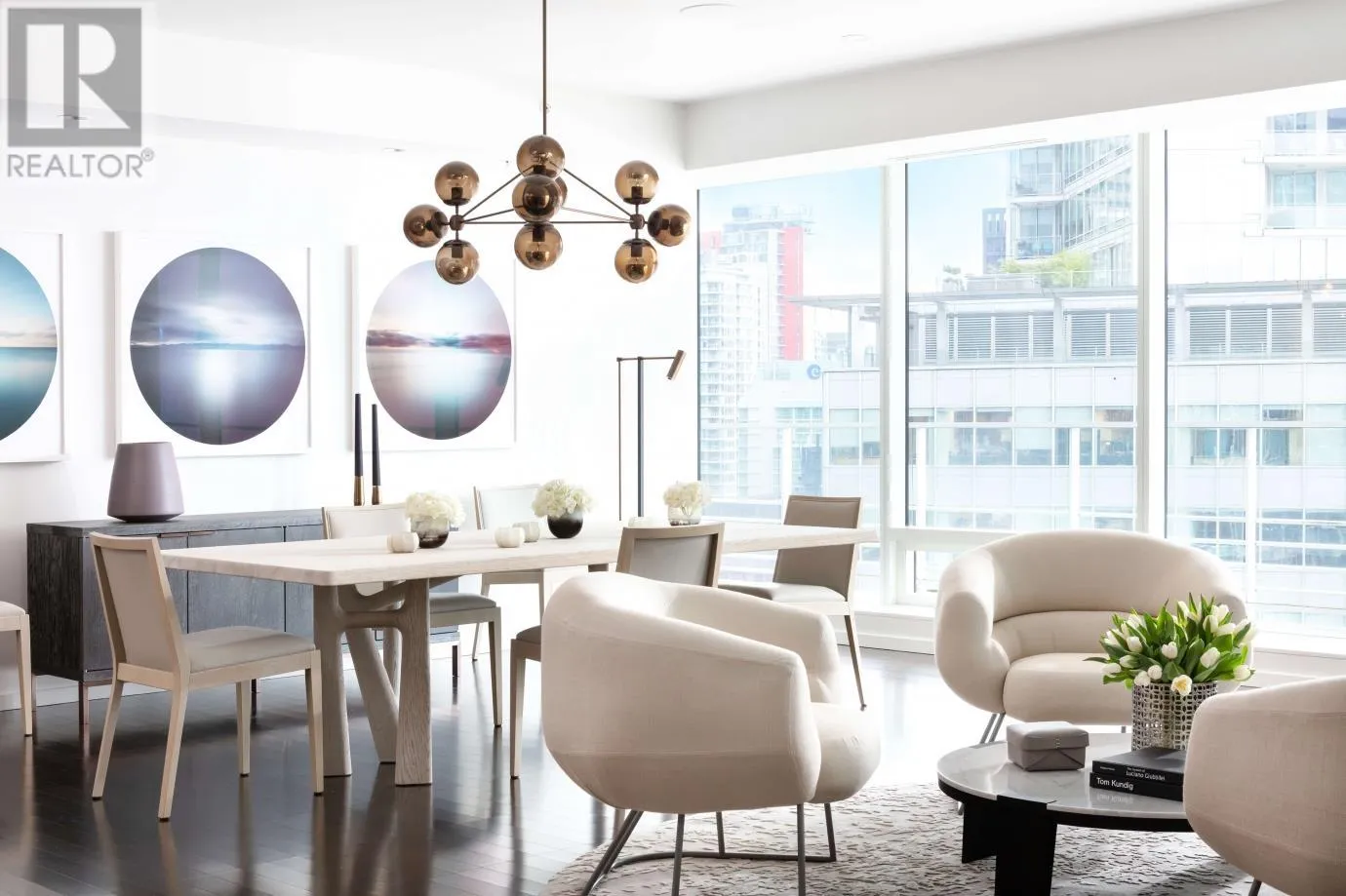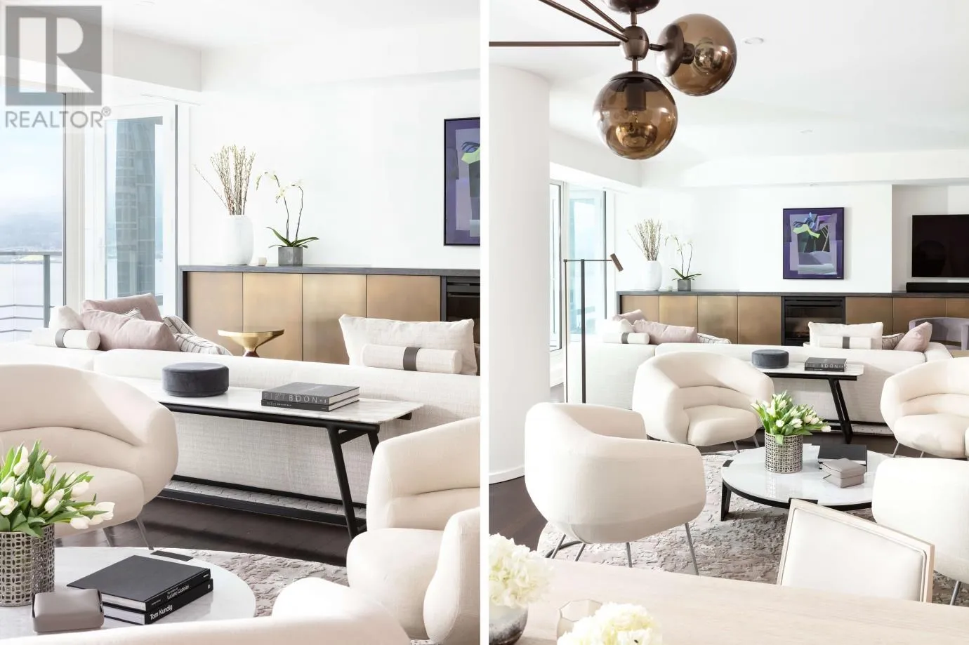 The Fairmont Pacific Rim Estates - an icon of sophistication - one of Vancouver´s most prestigious addresses. This rarely available '03´ suite offers breathtaking views stretching from the ocean and North Shore mountains to Lions Gate Bridge and Stanley Park. Meticulously designed by the acclaimed Robert Bailey Interiors, the residence showcases bespoke European-inspired detailing, incl custom millwork & high-end finishes throughout. The result is a chic, cosmopolitan space equally suited to intimate evenings of quiet reflection or stylish cocktail gatherings. This is elevated urban living at its finest - a seamless blend of luxury, design, and panoramic beauty in the heart of the city. Enjoy luxury urban living with 5-star hotel amenities, Concierge & an unbeatable Coal Harbour location (id:27476)