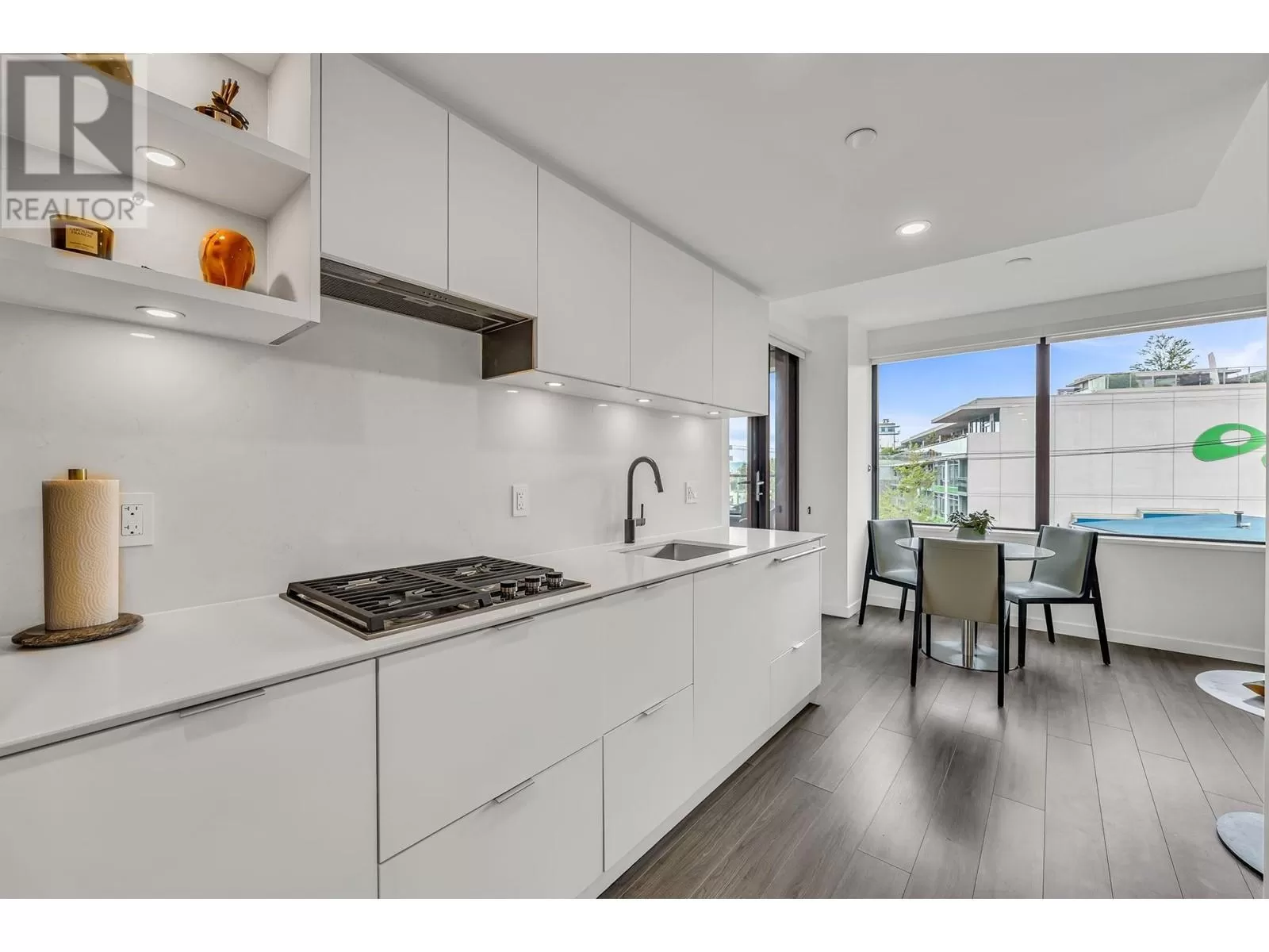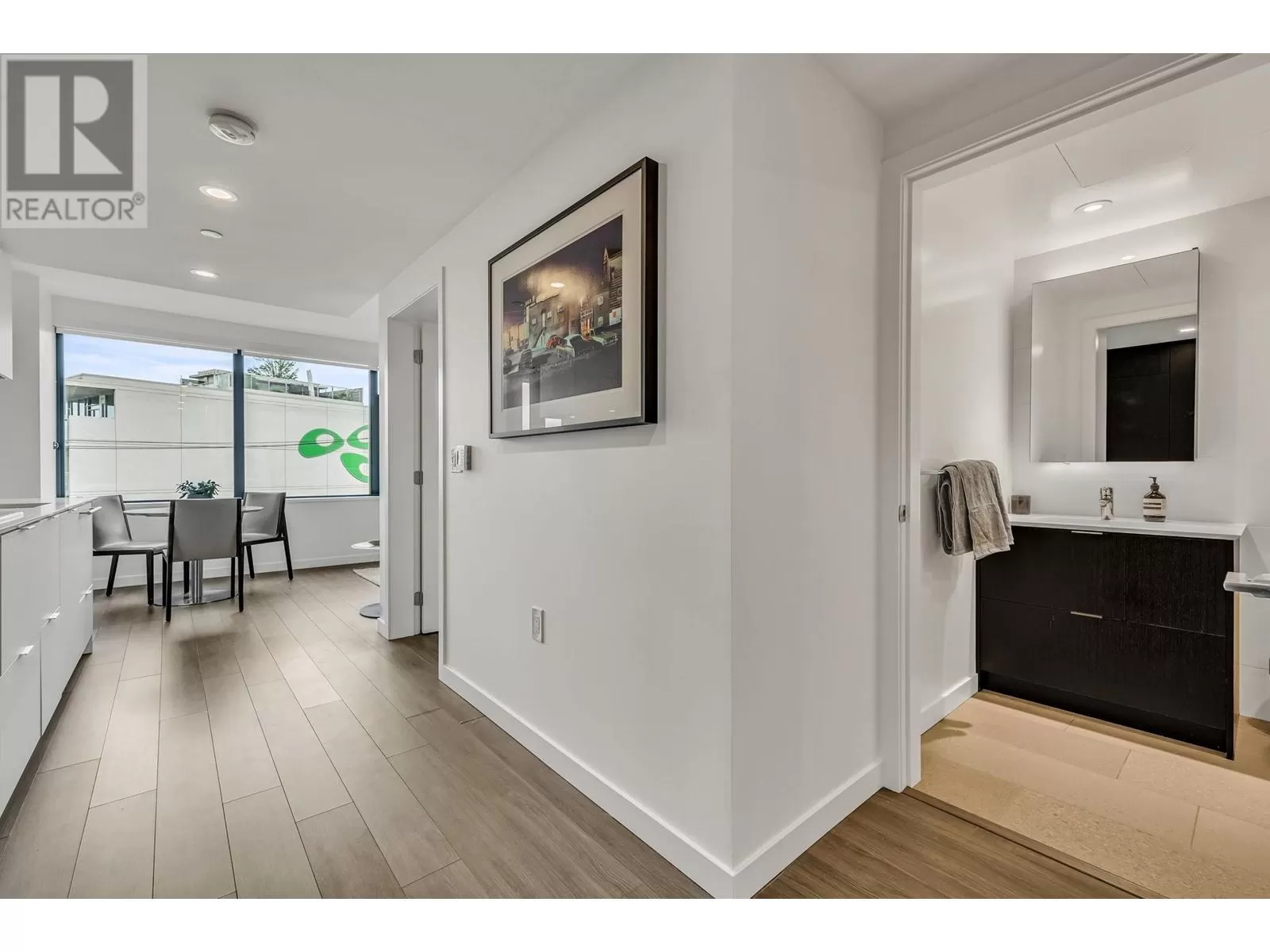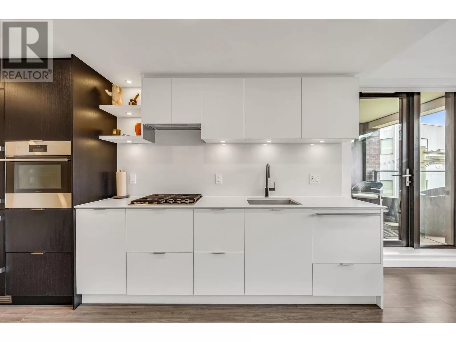 Welcome to Elenore on Fifth-a boutique luxury concrete build by Chard in Mount Pleasant´s best pocket. This corner unit offers 600+ sqft of smart design with southeast exposure, mountain views, and no side neighbours for ultimate privacy. The chef´s kitchen features a Wolf cooktop/wall oven, Blomberg fridge, and Fisher & Paykel dishwasher, set in a bold black & white palette with beveled-edge counters and deep cabinetry. Extras include an 80 square ft covered patio, heat pump, radiant bathroom floors, 1 parking, and a rare XL storage locker. Enjoy a massive fitness centre, outdoor terrace, lounge, and kids´ play area. Walk to breweries, shops, Olympic Village, and you're steps to 2 future SkyTrain stations. This unit truly stands out. (id:27476)