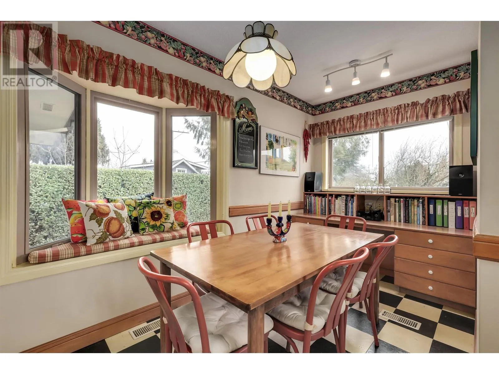 Directly across the street from Oak Meadows Park, this sprawling 1950s rancher on a flat, 7700 square ft lot with southerly exposed rear yard, sits in the heart of the Cambie Corridor. With current zoning allowing for three-storey stacked townhouses of 1.2 FSR, enjoy the benefits of further upzoning potential tied to the proposed Canada Line Station at W 33rd Avenue. Lovingly enjoyed by the same family for almost 50 years, this 5-bedroom residence with highly functional layout comes complete with an optional woodworking shop in the garage (with separate electrical panel). Just blocks to the new Oakridge Park development, in the coveted Eric Hamber school catchment, and near multiple bike and transit routes. BONUS: Redeveloped site should have some spectacular city and mountain views! (id:27476)