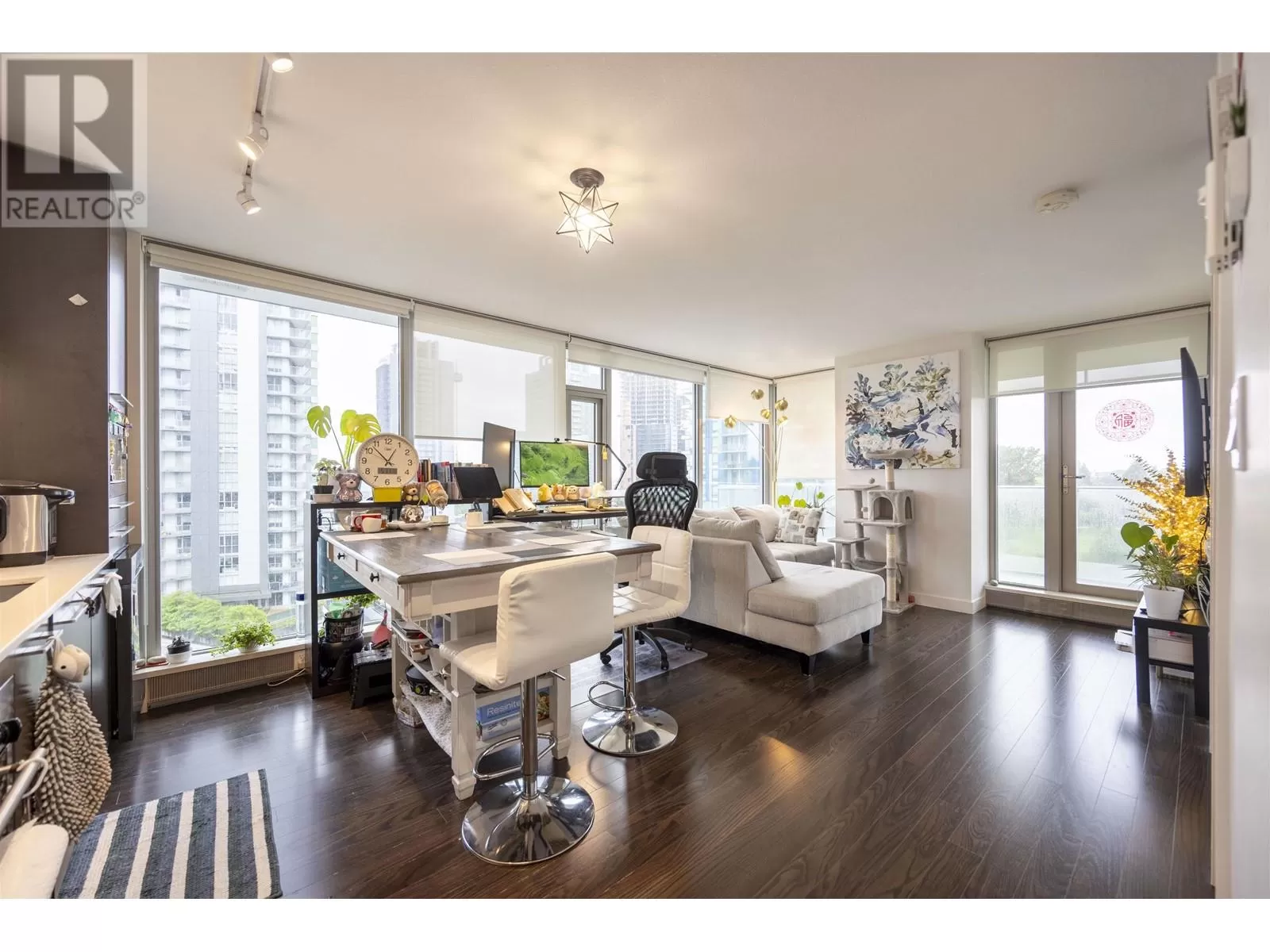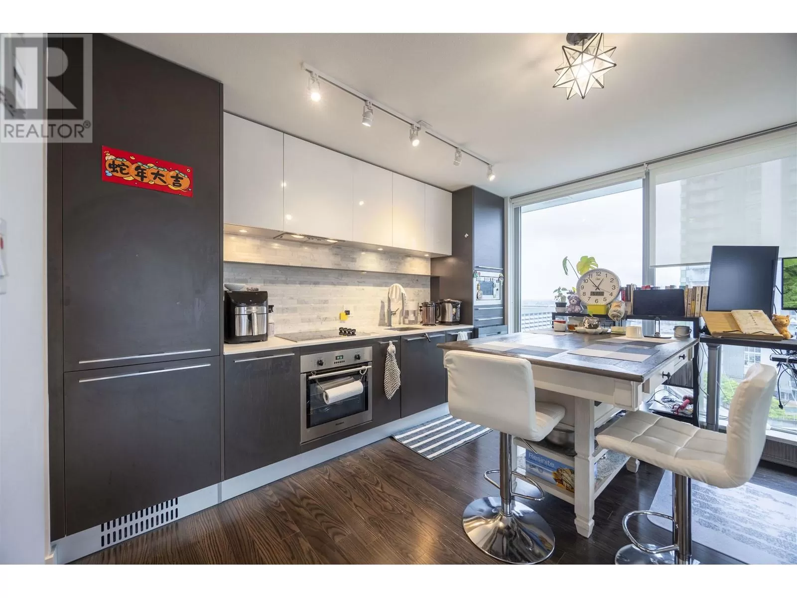 Embrace Panoramic South West views to the Fraser River & Urban Energy 24/7!Enjoy the stunning sunset from this beautifully designed residence at MC², an architectural landmark by James Cheng, built to LEED environmental standards.Stay comfortable year-round with Jaga heating/cooling systems and enjoy the kitchen including a Gourmet Blomberg appliance package with solid caesartone countertops, bathrooms featuring a soaker tub, porcelain tile flooring & marble polished countertops.3 mins walk to SkyTrain station, T&T grocery store, Winners, banks, Cineplex and restaurants.Top-rated elementary & high school catchments (Churchill). The master bedroom is rarely big in the condos.1 parking + 1 locker included. (id:27476)