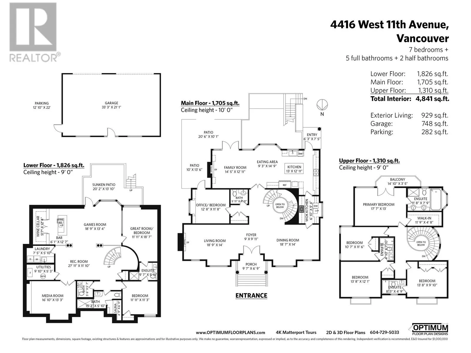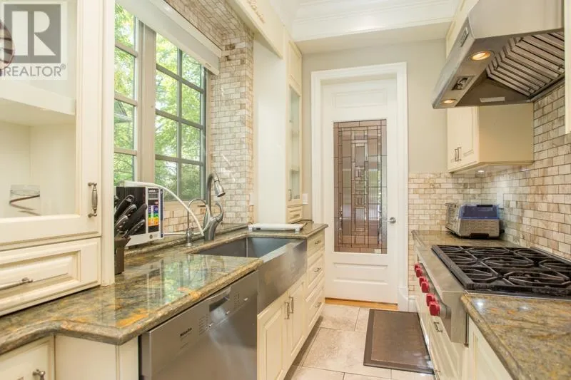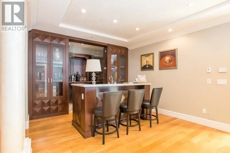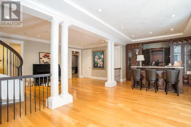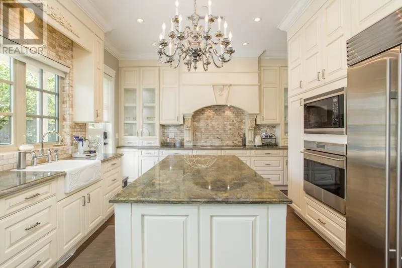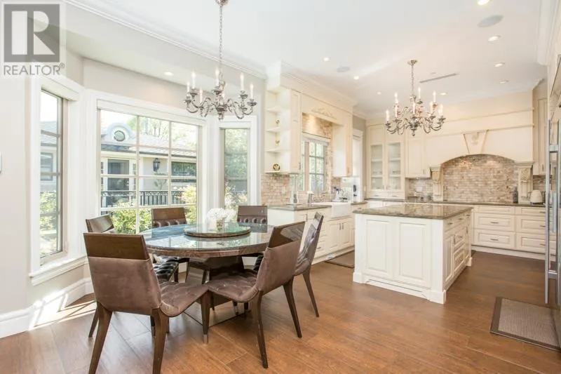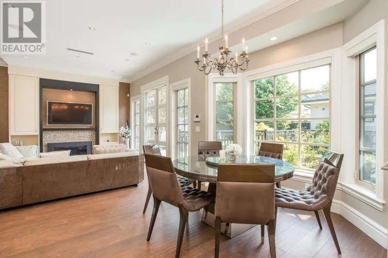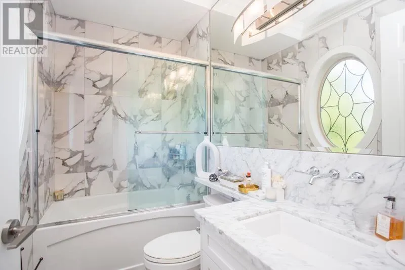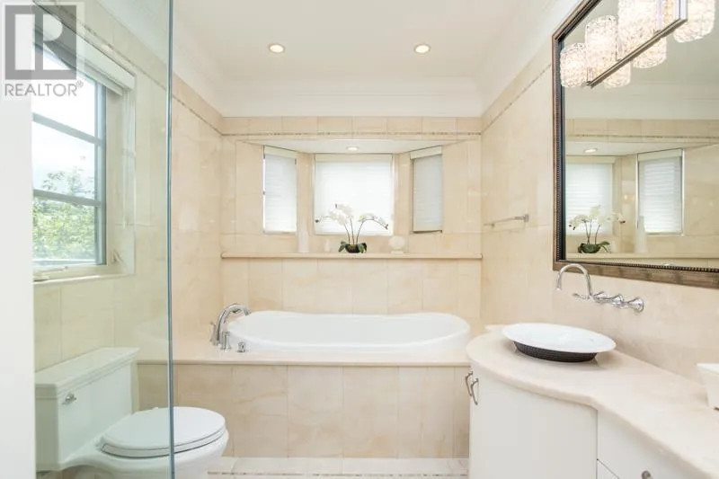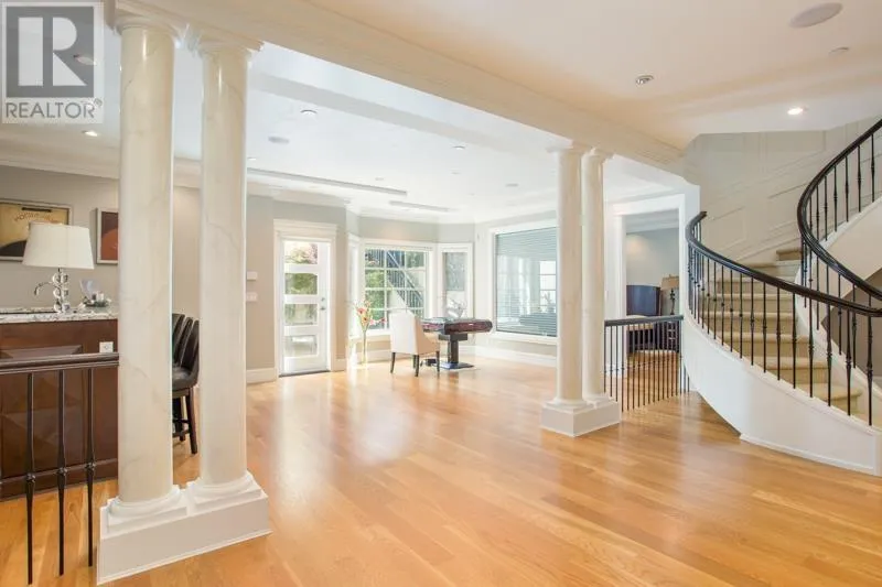 Welcome to prestigious Point Grey, Vancouver. This 4,800 square ft luxury home on a rare 8,000 square ft north-facing lot offers stunning views of the North Shore mountains and downtown. The unique transitional design features 7 bedrooms, 5 full and 2 half bathrooms, and showcases impeccable craftsmanship. A grand spiral staircase and detailed crown mouldings lend timeless elegance, while engineered hardwood and precision-laid tile elevate the main floor. The lower level includes a movie room, wine cellar, games room, and yoga space. A flower-filled garden graces the primary bedroom balcony. Enjoy a sunny, landscaped south-facing yard with a 3-car garage, open parking, and automatic gate. One of the best school catchments: Lord Byng Sec & Queen Marry Elm. (id:27476)