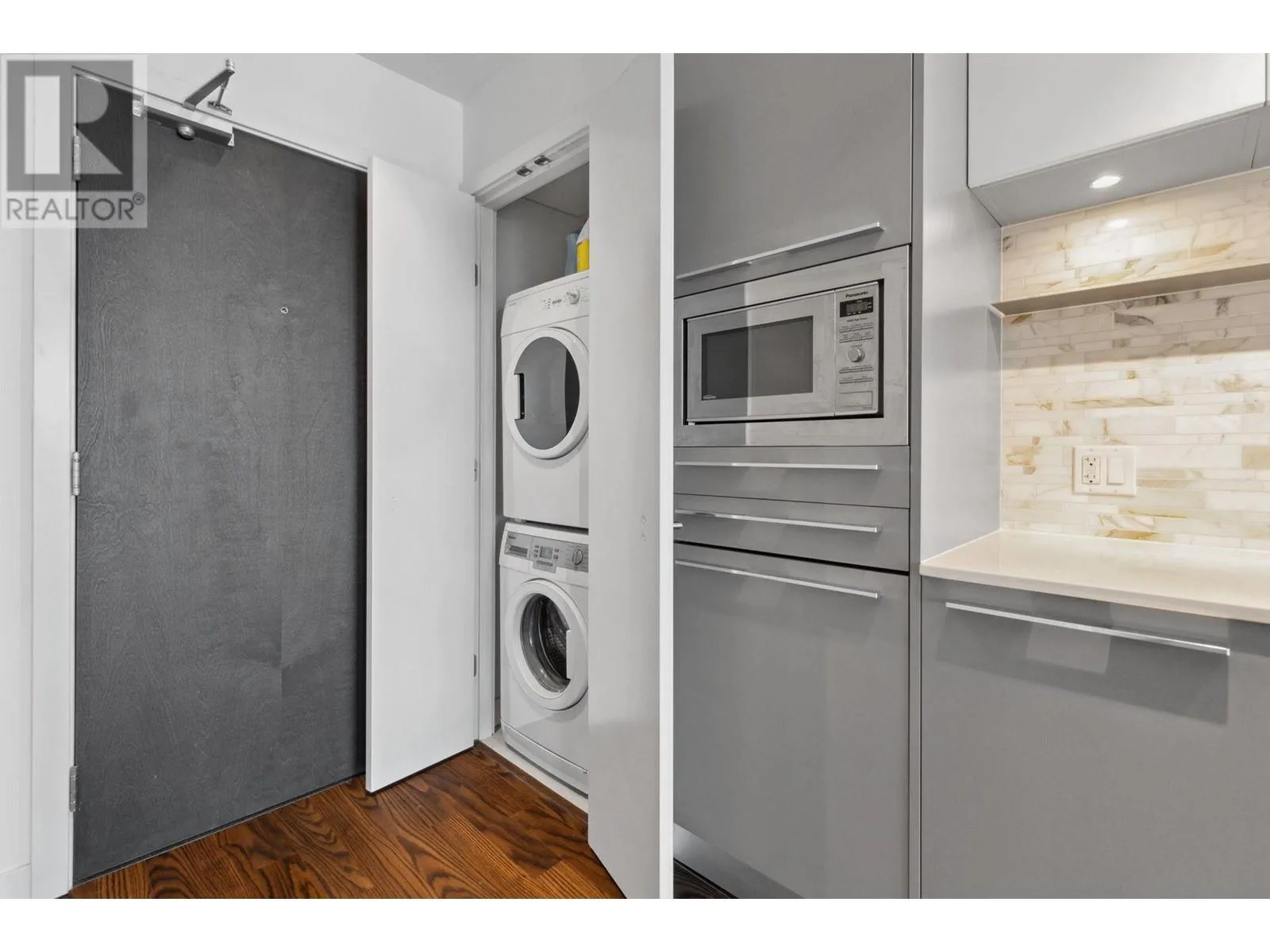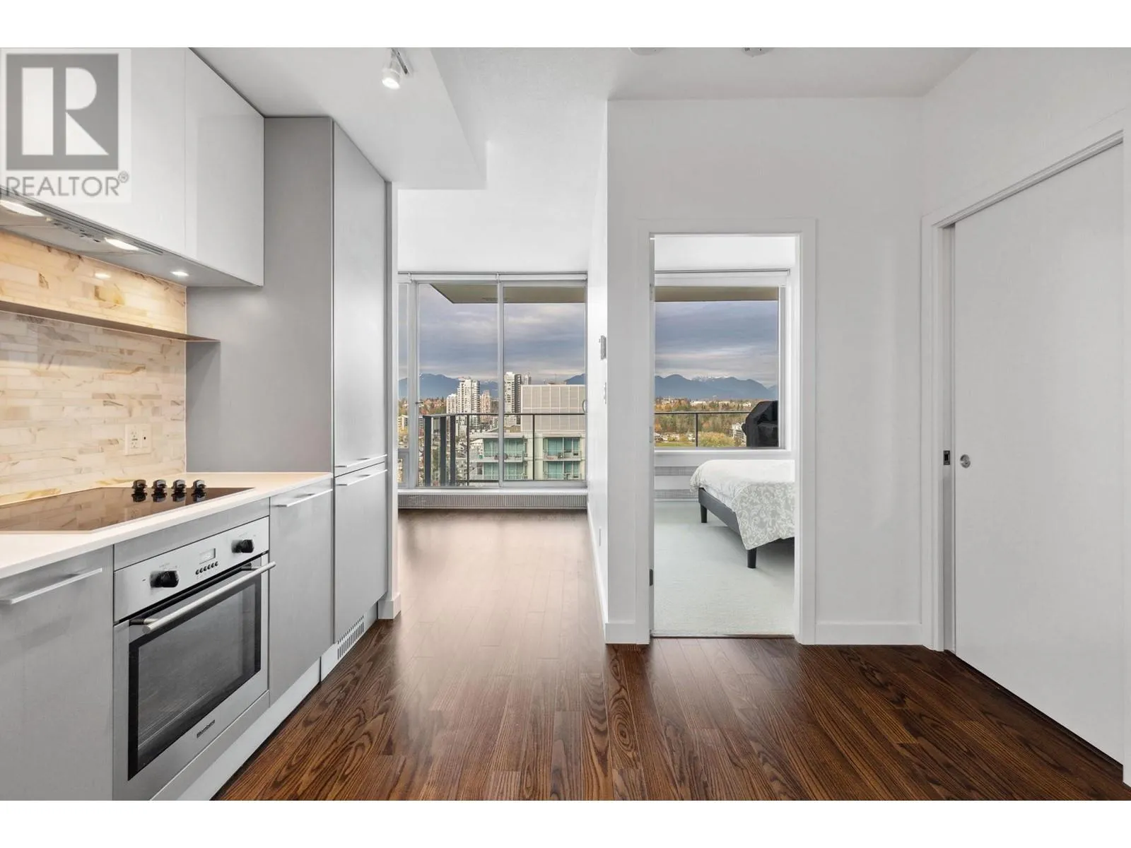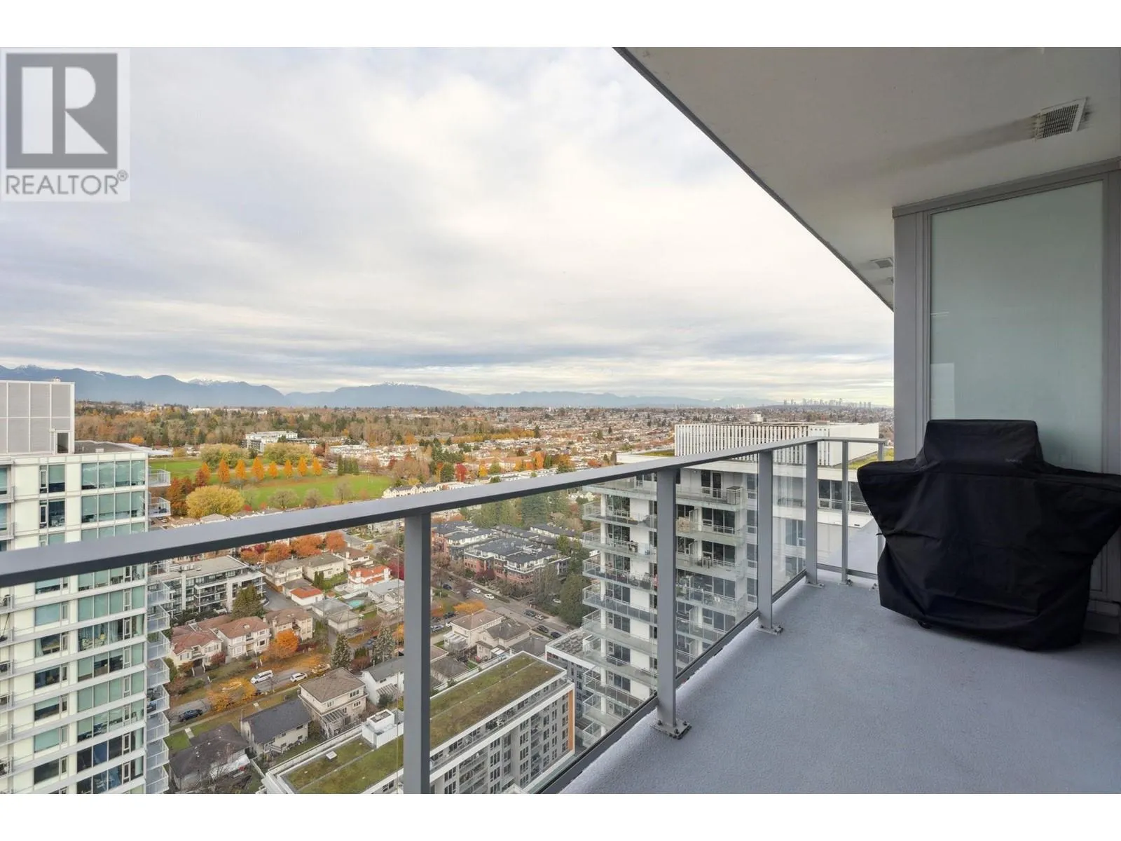NEAR SUB-PENTHOUSE 30th level. This bright and efficient 1 Bed/1 den/1 office nook offers unobscured 180 degrees North-facing mountain views that greets you every morning. 531 sqft size of well designed space 9ft ceilings, floor-to-ceiling windows and efficient open layout are perfect for relaxing. Layout includes a dedicated work-from-home space, ideal for modern living. Enjoy premium finishes with Blomberg S/S appliances, Grohe faucet, passive heating/cooling system. Concrete Highrise MC2 by Intracorp. Yes 1 parking stall and 1 storage locker. Marine Drive Skytrain Station below, T&T, banks, Cineplex, restaurants, and plentiful amenities! Skytrain to downtown in 15 mins. Catchment Churchill Secondary & JW Sexsmith schools. Contact today for a private viewing! Open house 2-4PM SAT Nov 15 (id:27476)