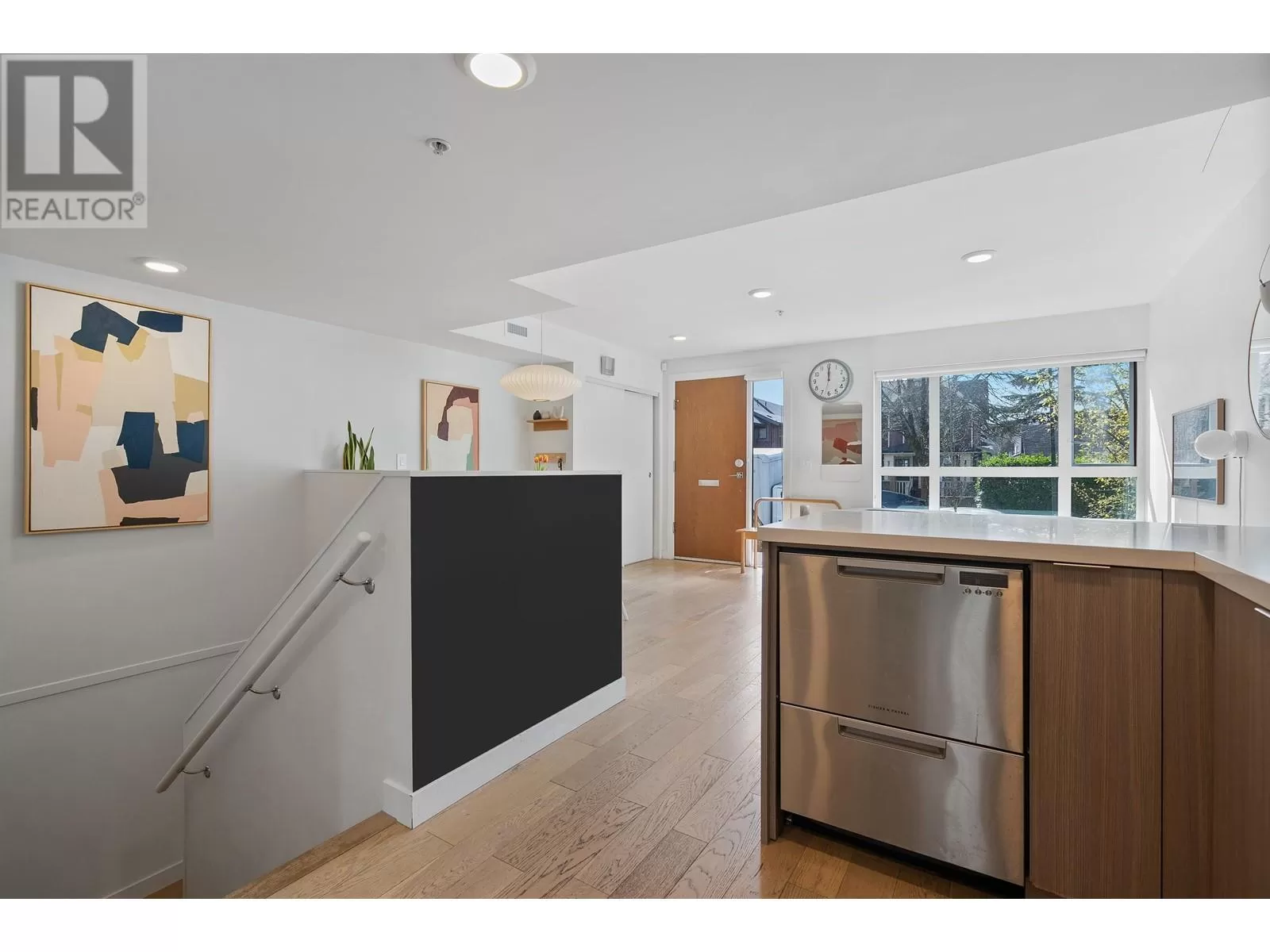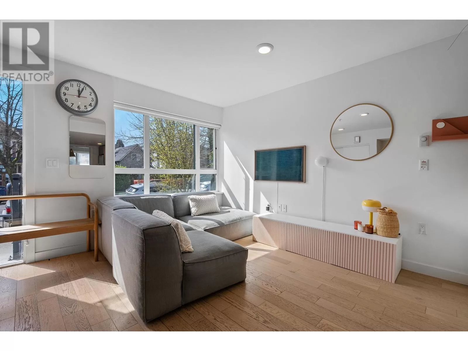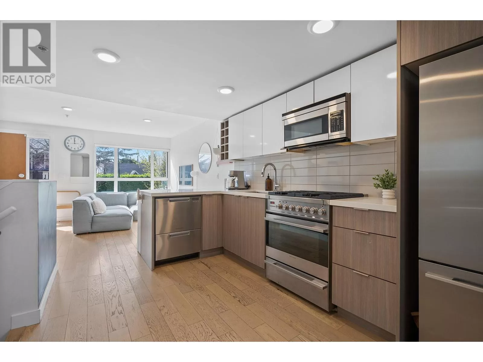 Welcome to Hayden - a boutique style townhome located in the heart of Mount Pleasant. This corner two-level, city home features sunny south-facing exposure and offers 2 bedrooms and 2 bathrooms. A spacious patio invites effortless entertaining, while the ground-level entry and open-concept layout provide a seamless flow. The chef-inspired top-of-the-line kitchen includes Fisher and Paykel appliances, gas burner cook top, granite countertops, and ample storage. With engineered hardwood flooring throughout and bedrooms thoughtfully separated, the primary suite is conveniently located downstairs. Steps from Main St, Fraser St, parks, and the city´s finest shops and restaurants. Includes parking, storage, and welcomes pets and rentals. (id:27476)