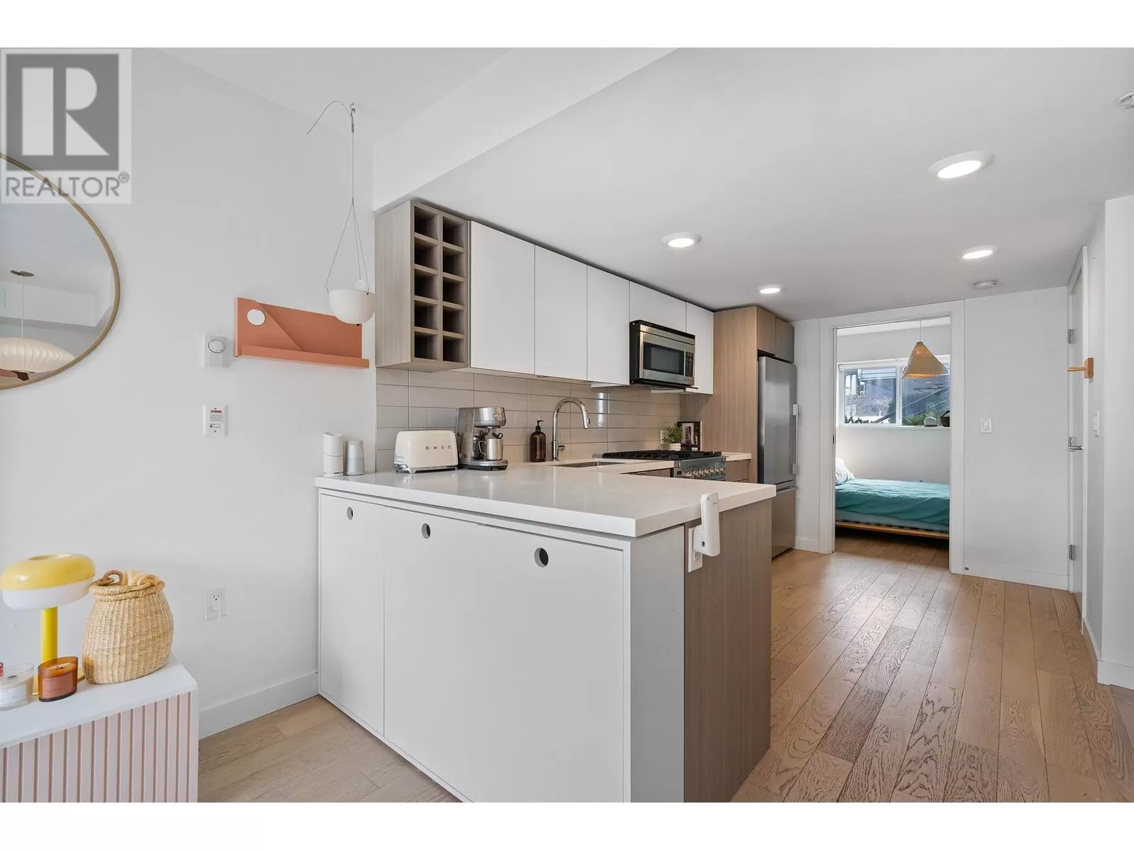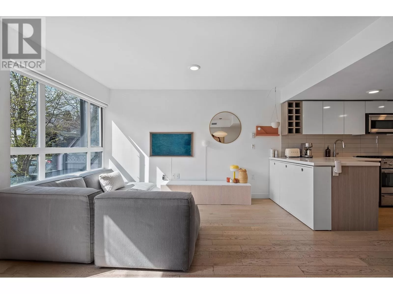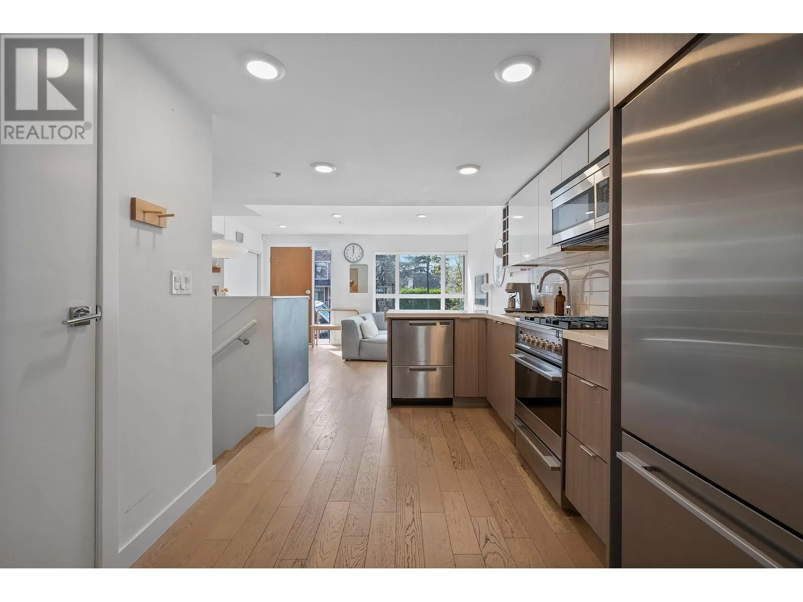 Welcome to Hayden - a boutique style townhome located in the heart of Mount Pleasant. This corner two-level, city home features sunny south-facing exposure and offers 2 bedrooms and 2 bathrooms. A spacious patio invites effortless entertaining, while the ground-level entry and open-concept layout provide a seamless flow. The chef-inspired top-of-the-line kitchen includes Fisher and Paykel appliances, gas burner cook top, granite countertops, and ample storage. With engineered hardwood flooring throughout and bedrooms thoughtfully separated, the primary suite is conveniently located downstairs. Steps from Main St, Fraser St, parks, and the city´s finest shops and restaurants. Includes parking, storage, and welcomes pets and rentals. (id:27476)