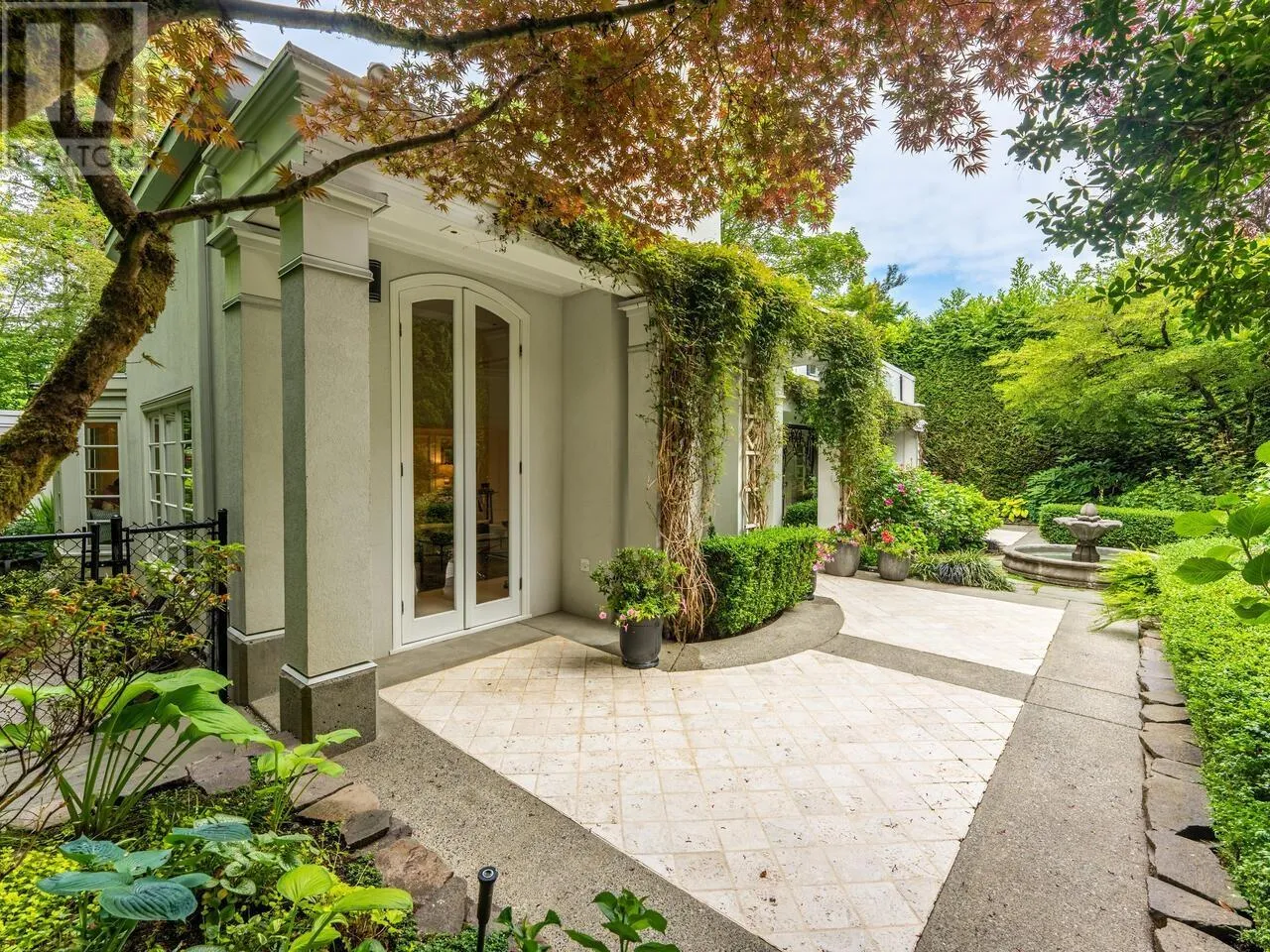 A beautiful French chateau-inspired estate on exclusive Angus Drive,offering exceptional privacy just minutes from downtown Vancouver. Set on a large private lot, this home blends European elegance and fine craftsmanship featuring intricate moldings, a dramatic 16-ft ceiling living room, and garden views from every window. The layout includes 3 bdrms,4 bathrooms,2 dining areas,and a spacious kitchen with pantry. The luxurious primary suite offers a private office, spa-like ensuite, and balcony.Enjoy indoor-outdoor living via 10-ft French doors to south-facing patios, a 50-ft pool surrounded by lush,mature English gardens.A 455 sq separate 1-bdrm guest house with a kitchen and bathroom is ideal for visitors or caregiver.Refined living in sought after Shaughnessy,close to South Granville. (id:27476)