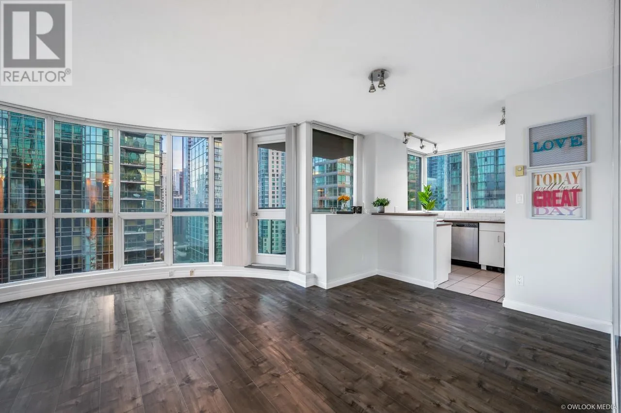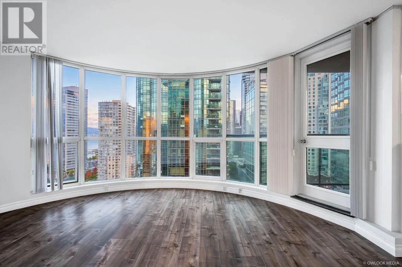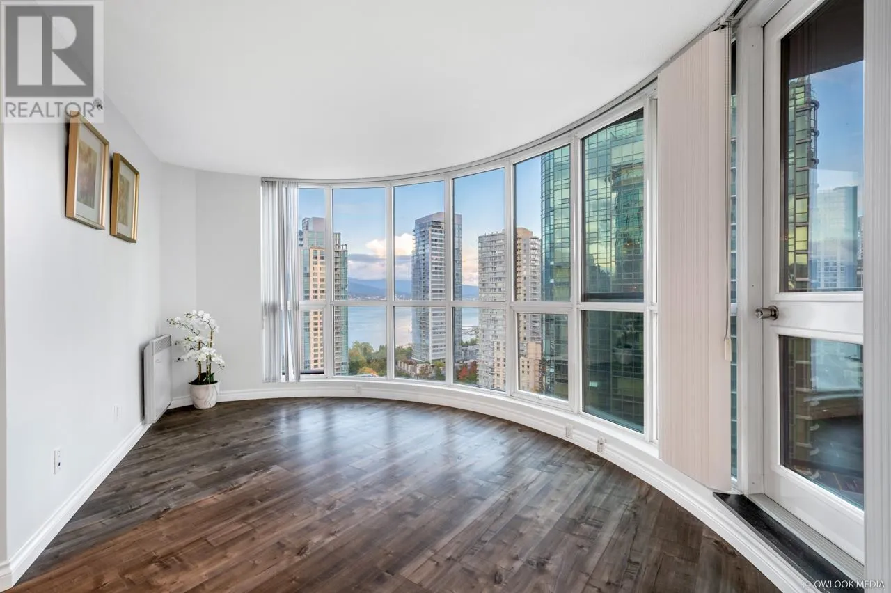 Semi Waterfront property with spectacular water, mountains & marina views. Harbourside Park is the masterpiece building designed by Arthur Erikson. One Bedroom and den, 667 SF corner unit with open balcony. Enjoy city living at its best in this private setting. Superb layout with floor to ceiling windows in LR. Spacious master bedroom with a separate area for office. Nice size balcony facing park and marina. On site management, Indoor swimming pool, rec centre, bike storage & visitor parking, just steps from seawall, community centre, marina & Stanley Park. Pets allowed, rent allowed. (id:27476)