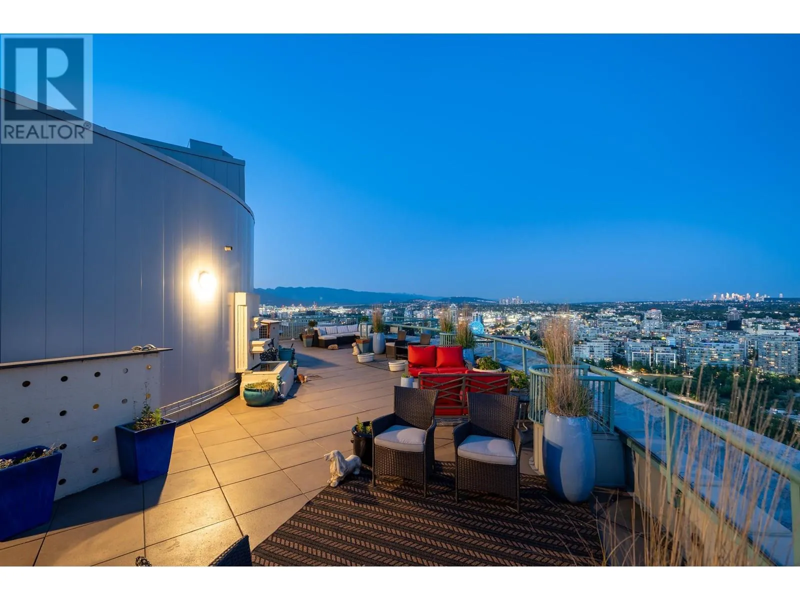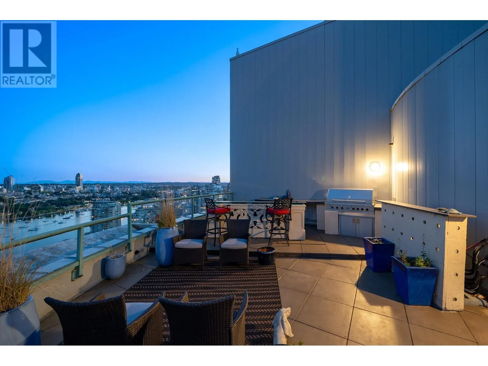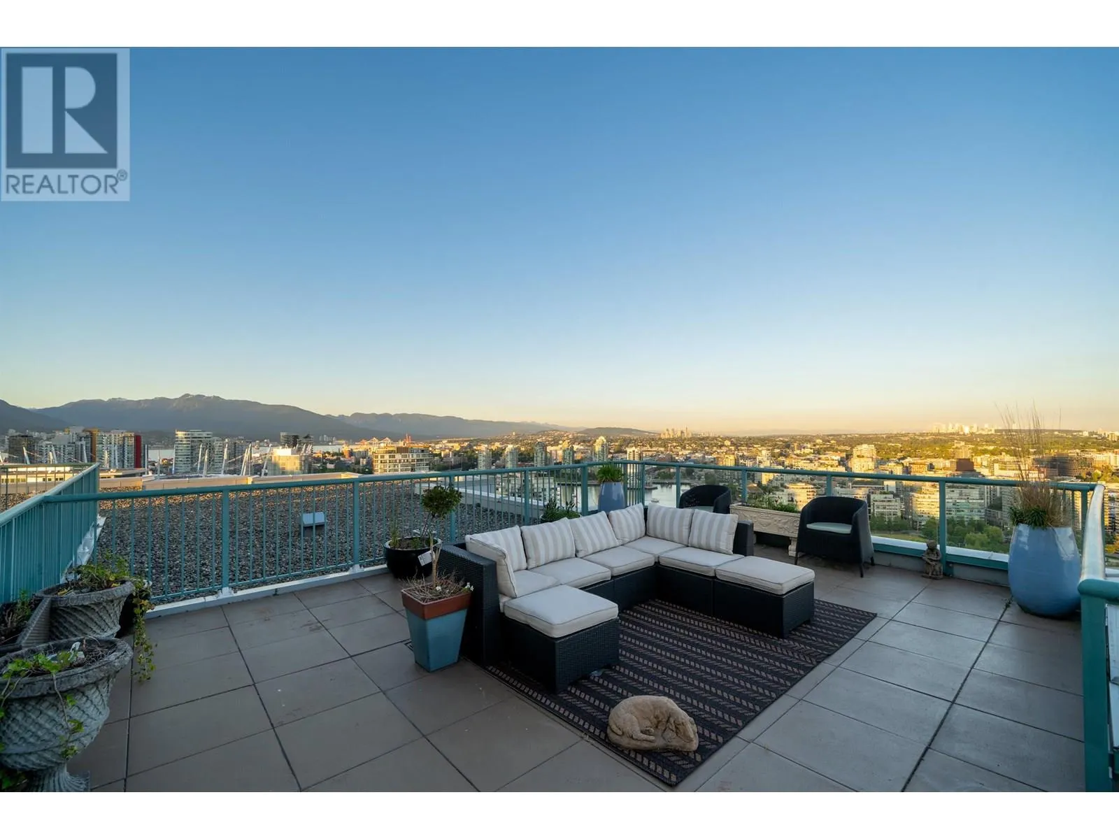 Stunning waterfront Penthouse at Quaywest with over 2093 square ft of luxury living space. Featuring floor-to-ceiling window frames and breath-taking views of False Creek, city line and north shore mountains. Enjoy the magnificent lifestyle Yaletown has to offer! The expansive 1,337 square ft private patio with panoramic views is well suited for hosting intimate events and entertaining guests. Thoughtfully designed with elegant finishes, the home comes with A/C, 2 parking stalls, and ample storage. A 3rd bedroom can be added with light reno. Full-service amenities-concierge, indoor pool, gym, sauna, and more. Steps to the Seawall and world-class dining, this penthouse is a redefinition of luxury living in Vancouver. Open House, this Saturday Oct 25th, 2-4pm. (id:27476)