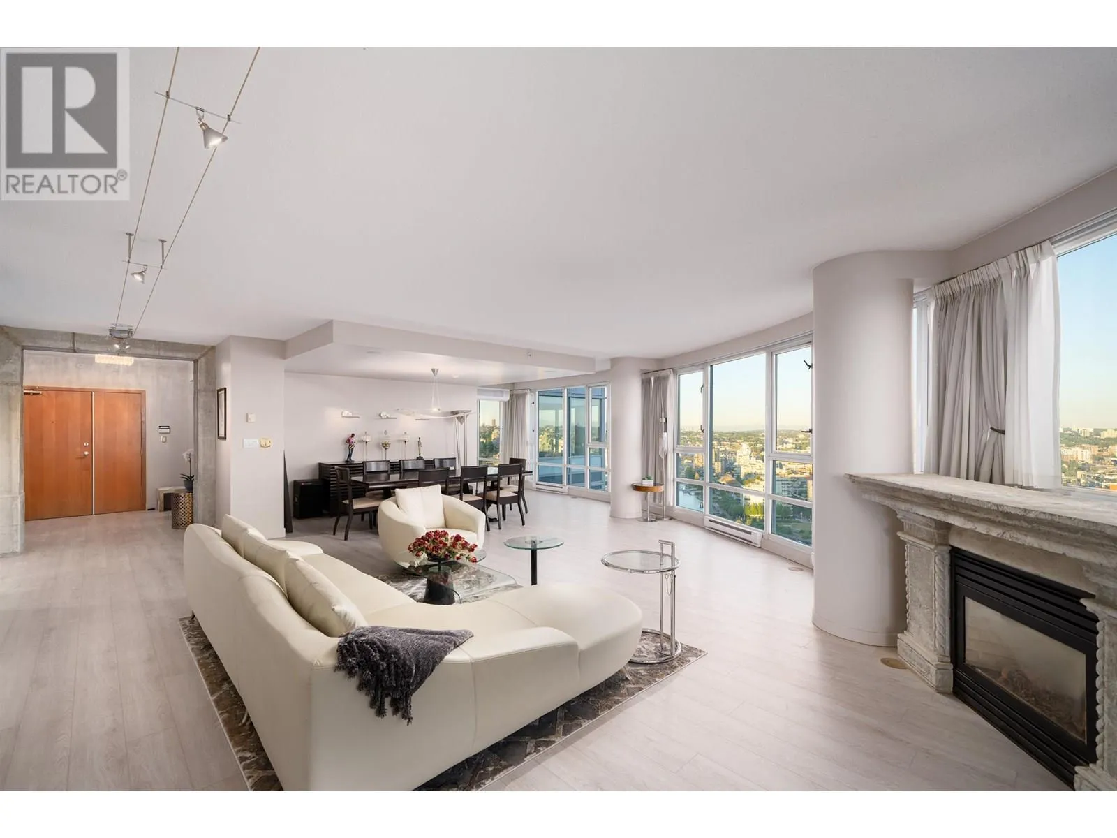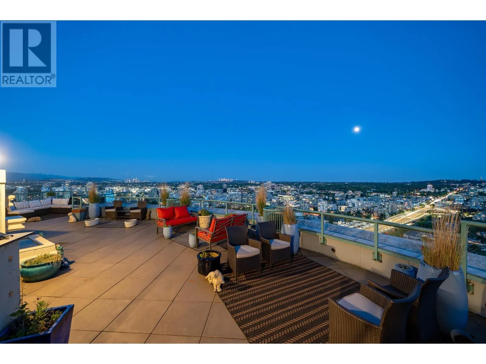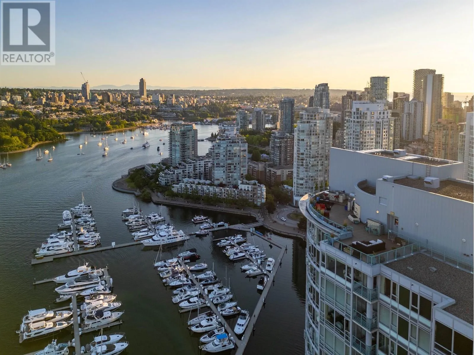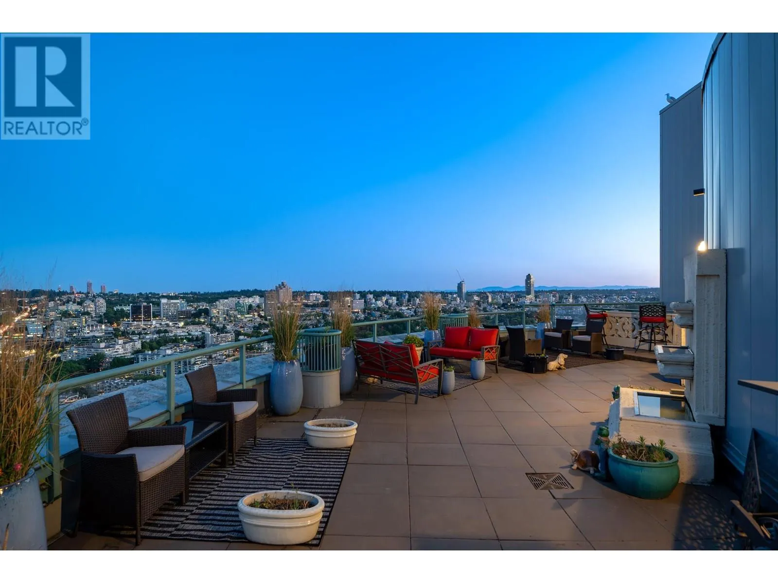 Stunning waterfront Penthouse at Quaywest with over 2093 square ft of luxury living space. Featuring floor-to-ceiling window frames and breath-taking views of False Creek, city line and north shore mountains. Enjoy the magnificent lifestyle Yaletown has to offer! The expansive 1,337 square ft private patio with panoramic views is well suited for hosting intimate events and entertaining guests. Thoughtfully designed with elegant finishes, the home comes with A/C, 2 parking stalls, and ample storage. A 3rd bedroom can be added with light reno. Full-service amenities-concierge, indoor pool, gym, sauna, and more. Steps to the Seawall and world-class dining, this penthouse is a redefinition of luxury living in Vancouver. Open House, this Saturday Oct 25th, 2-4pm. (id:27476)