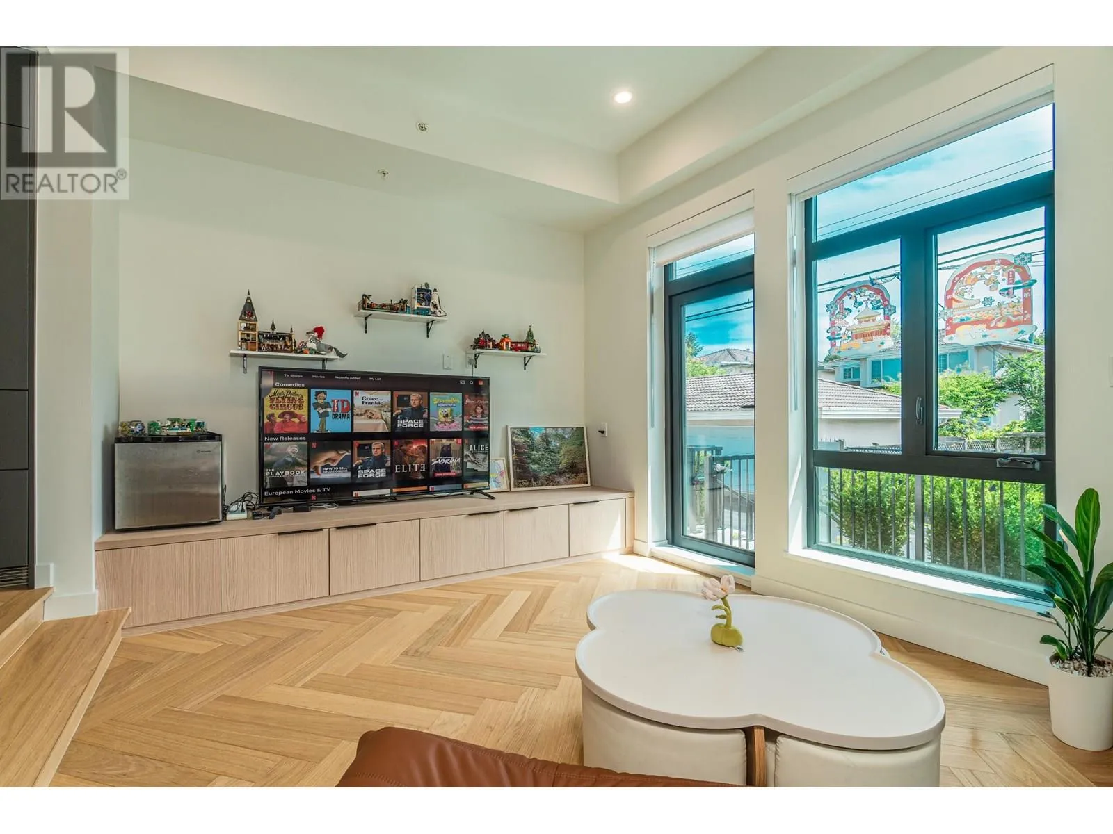 Built by Coromandel Properties. Efficient & modern Japanese esthetic throughout home. Sophisticated exteriors with white brick veneer, matte black window mullions & a bold yellow door. Open concept main flr with 9´ ceilings featuring A/C, chevron pattern engineered Oak H/W flrs, powder room for guests & lots of custom millwork incl. custom entry bench with shoe storage & double-entry closet. Kitchen with Miele appl. pkg, matte grey Quartz counters & backsplash, matte black Kohler faucet & Oak veneer cabinets. Private master suite with beautiful 5pc ensuite & large balcony. Second level with 2 large bedrooms & laundry. Jamieson & Churchill school catchment Close to everything! Parks, Oakridge mall, Langara Golf, UBC, etc. (id:27476)