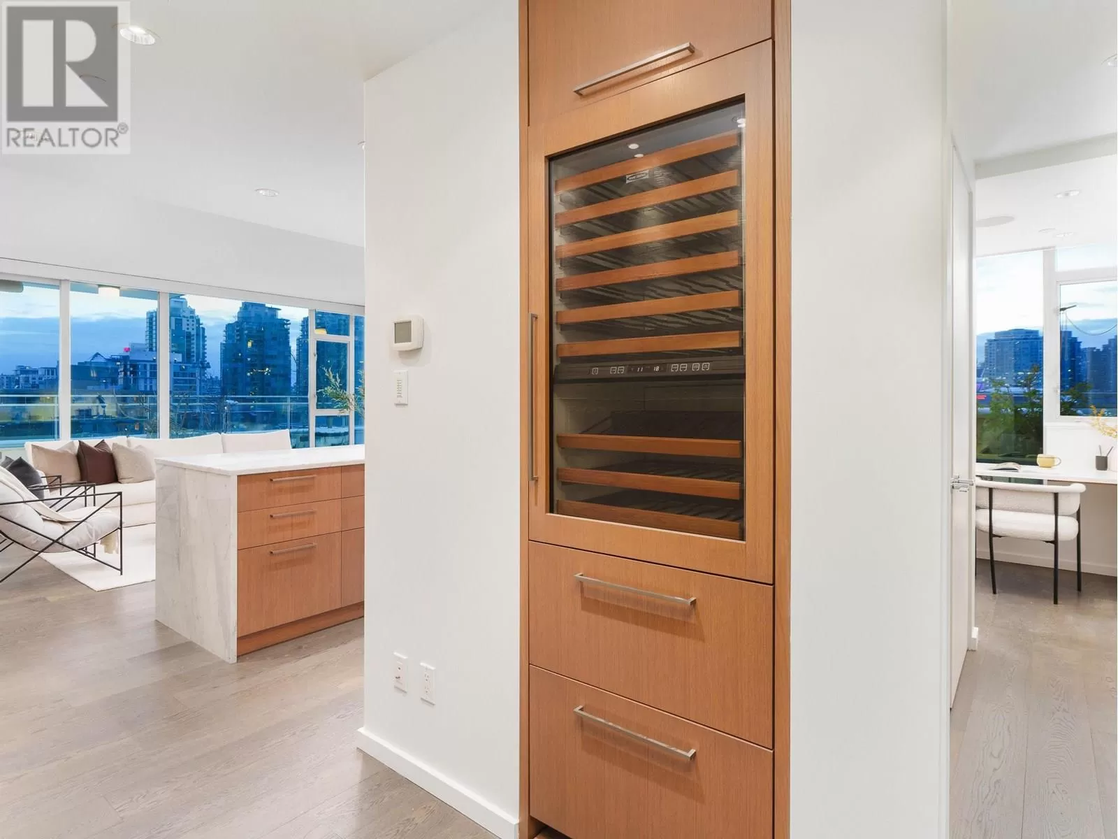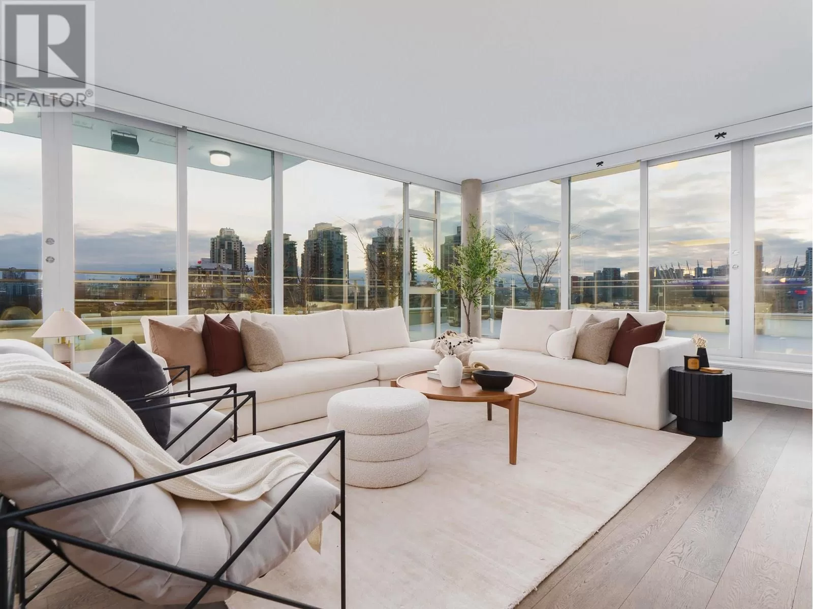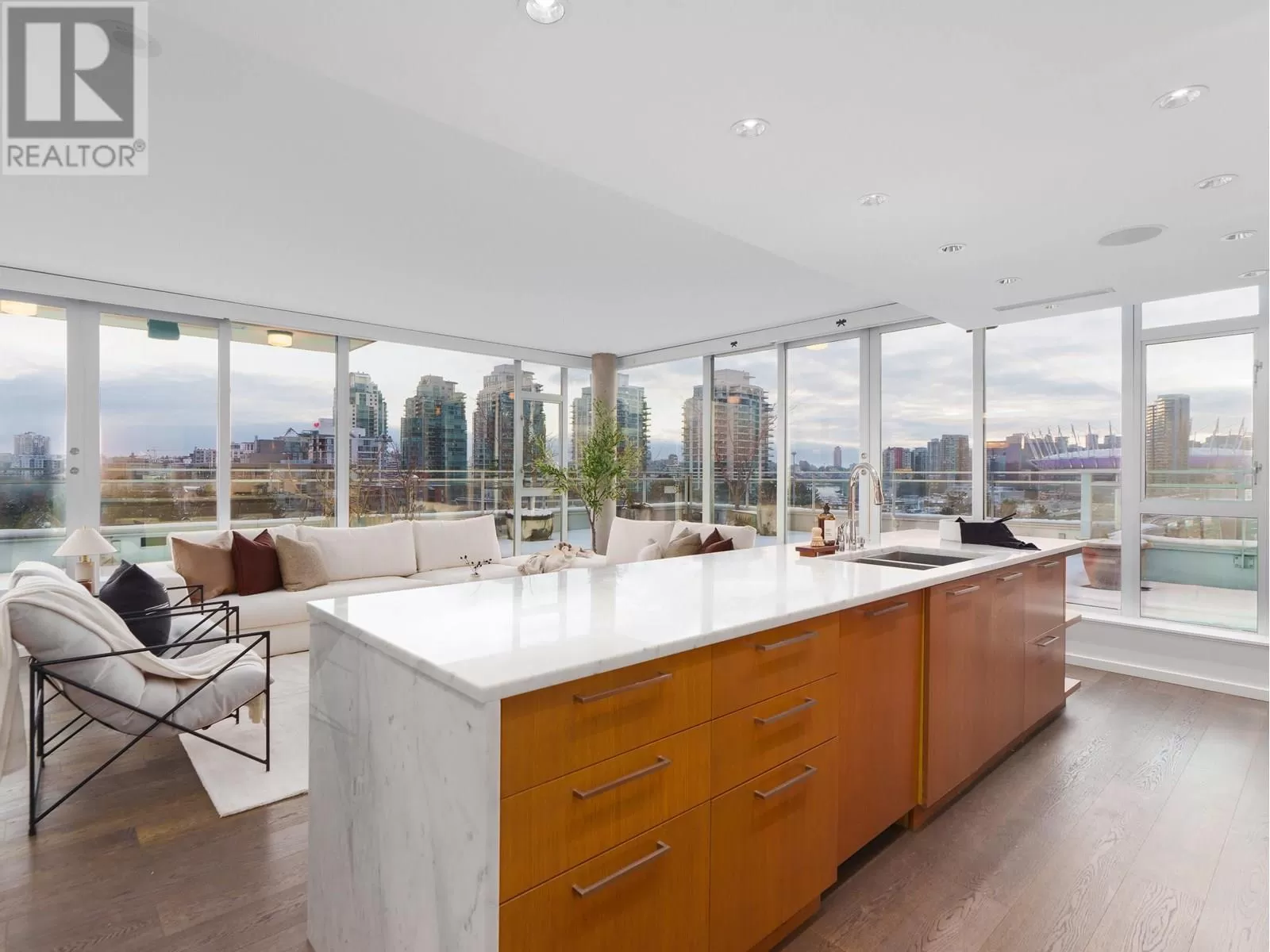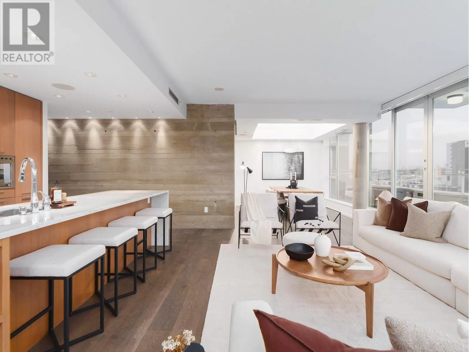 This is THE premier corner penthouse and was custom-designed for its original owner, offering an expansive three-level layout with 2,359 sqft of air-conditioned indoor living complemented by 1,551 sqft of private outdoor space. Step into the elegant marble foyer, where a floating concrete staircase ascends two stories to the stunning rooftop terrace. The main level boasts a spacious design, featuring a sunlit living and dining area, a gourmet chef's kitchen with integrated Wolf and Sub-Zero appliances, and a dedicated home office space. Upstairs, you'll find the luxurious private quarters, leading to the expansive rooftop oasis complete with a Jacuzzi and panoramic views. Additional feat: Control4 automation, concierge, two side/side parking stalls, a private two-car garage, & 346 sqft storage room (id:27476)