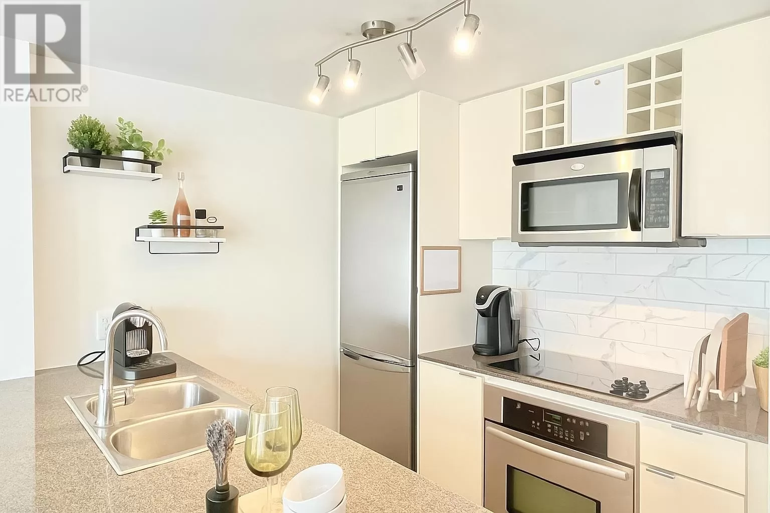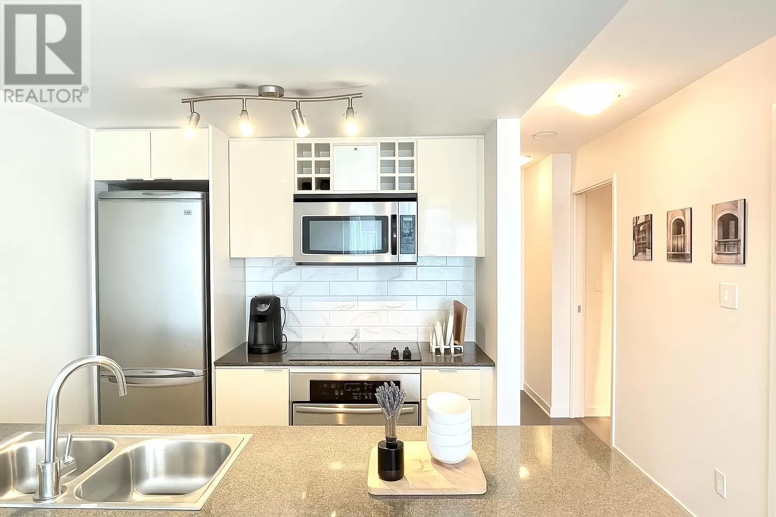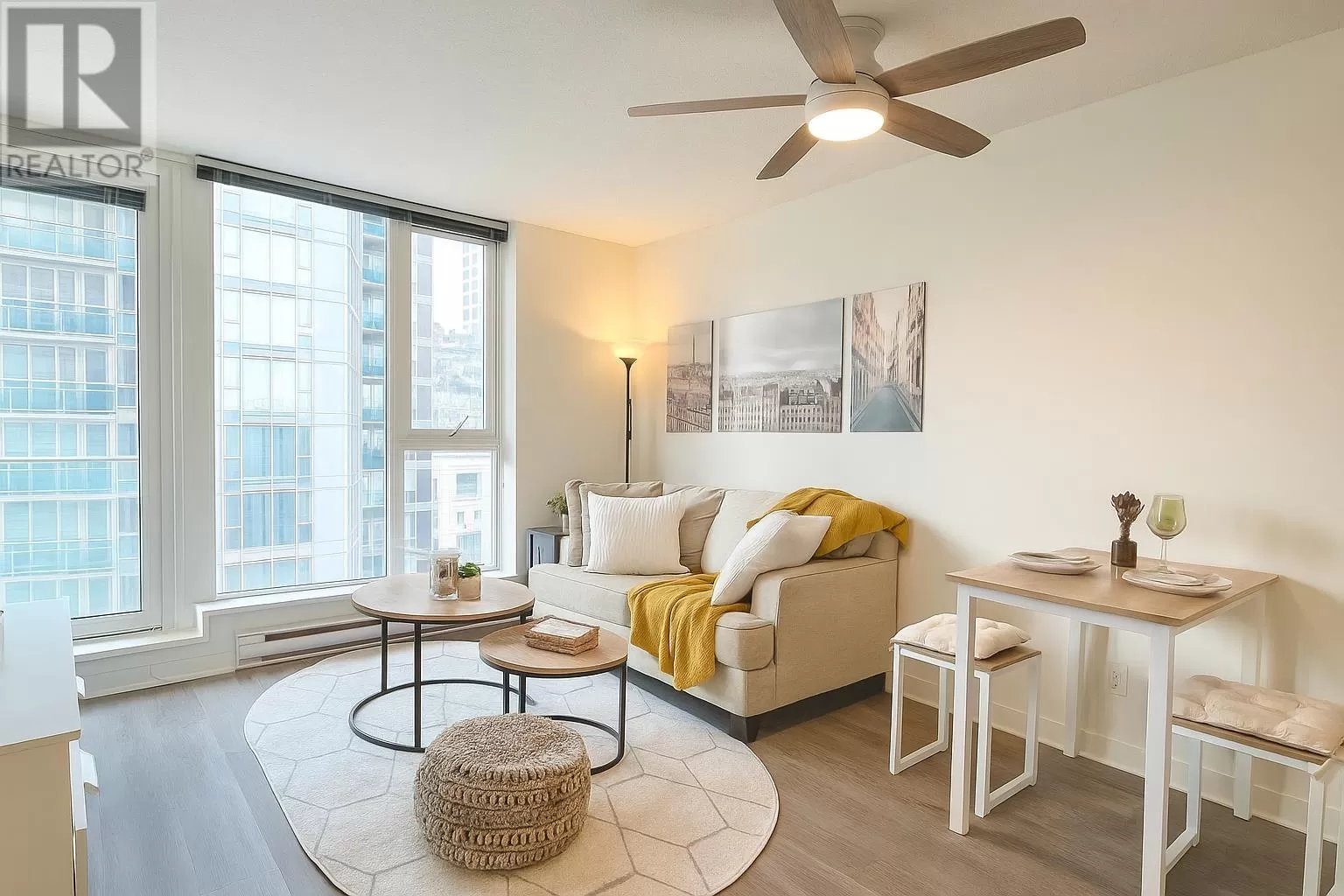 TURNKEY UNIT with furniture included! Experience DT living at it's finest in this stunning 1 Bed + Den unit at TV Tower 2 by Concord Pacific. Located on iconic Robson St, this bright and spacious home features floor-to-ceiling windows, a sleek open-concept kitchen, and beautiful city views. NEW vinyl flooring (2022) and new back splash (2022). Enjoy top-notch amenities including 24/7 concierge, gym, sauna, and hot tub. Unbeatable location steps to BC Place, Vancouver Public Library, shops, cafes and transit. 1 parking included. Ideal for investors or city dwellers! *APPT ONLY/NO OH* (id:27476)