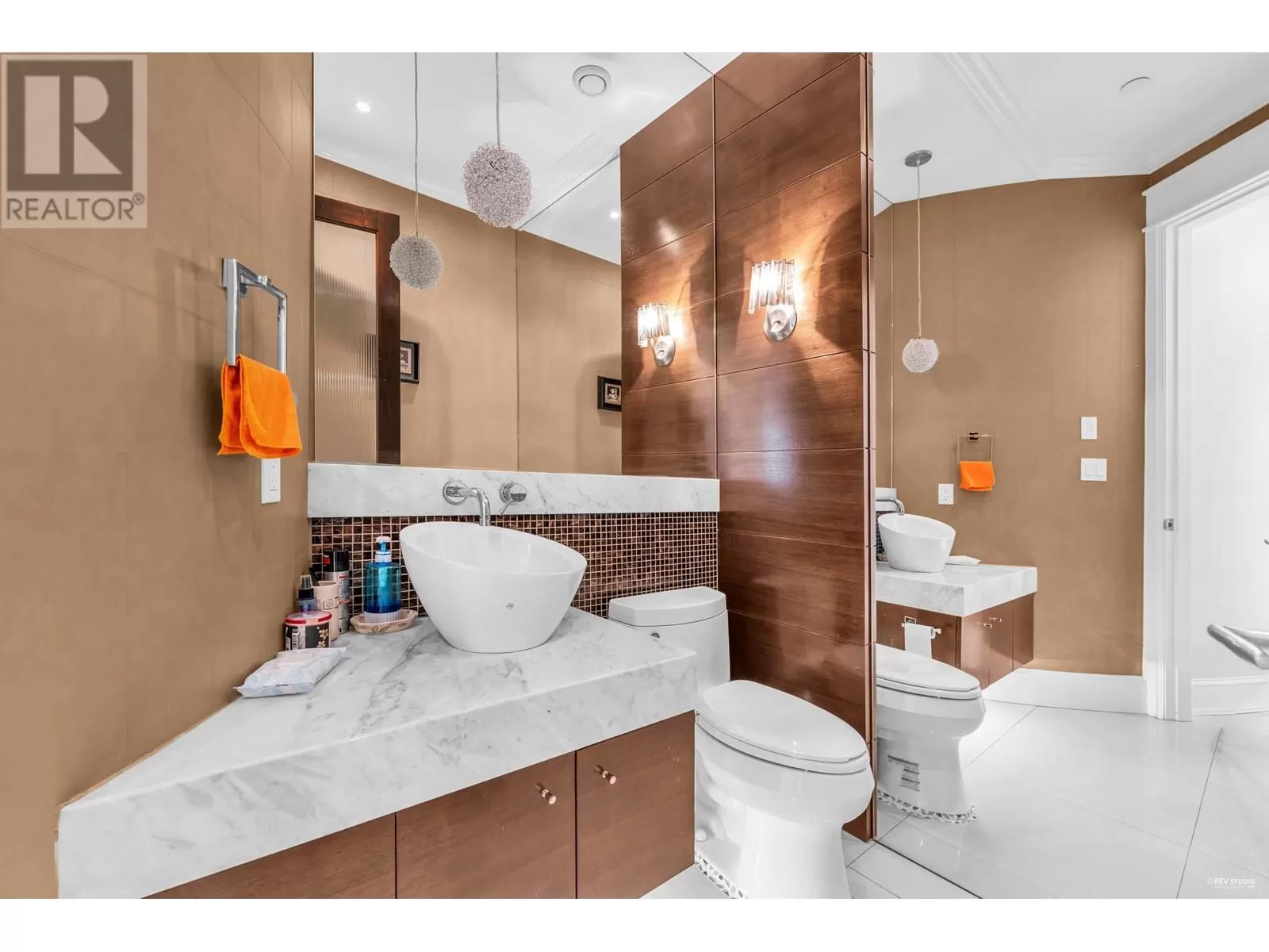 Undeniably one of Vancouver´s most stunning homes, designed by the acclaimed Victor Eric Design Group. A 2008 Georgie Award finalist and featured in Spectacular Homes of Western Canada. The centerpiece is a spectacular 3-storey water feature. Open-concept layout with rich, elegant finishes throughout. Gourmet kitchen boasts top-tier appliances and an integrated Sub-Zero fridge. Includes 6 bedrooms, custom aquarium, rear Japanese pond, rec room, sauna, steam room, and an incredible theatre lounge. A/C, HRV, hardwood, exotic marble floors, and more. Impeccable craftsmanship and quality in every detail. Dr. Annie B. Jamieson Elementary & Sir Winston Churchill Secondary. (id:27476)