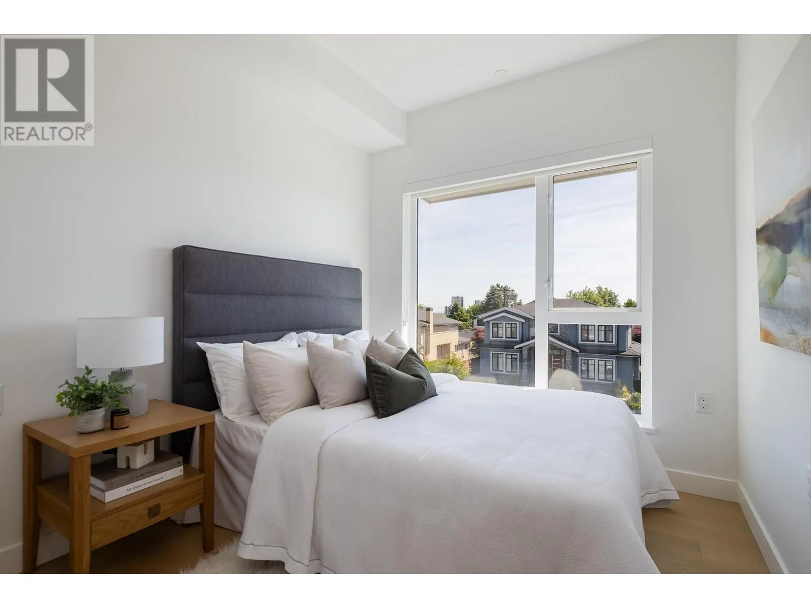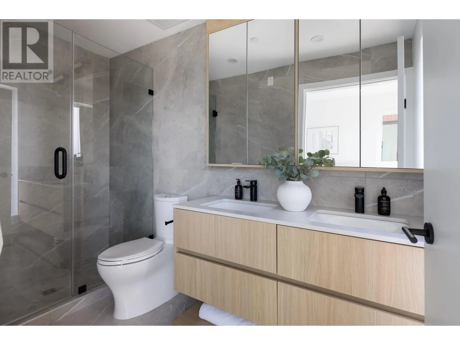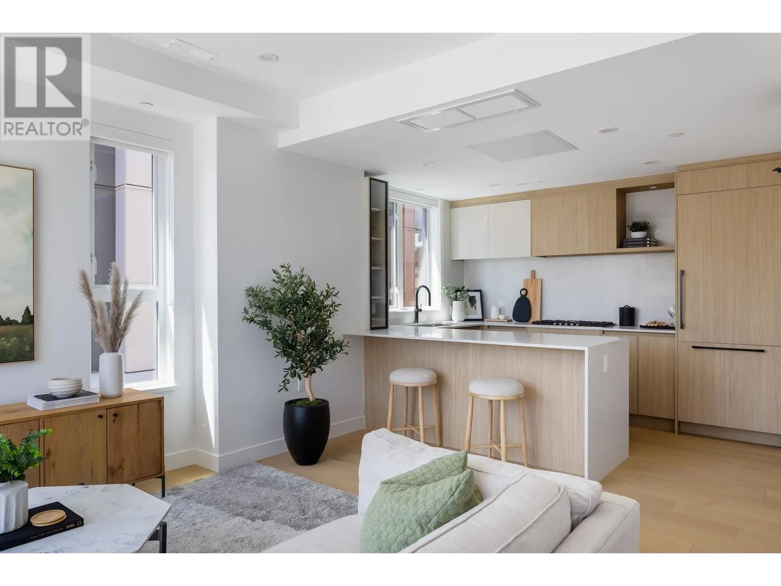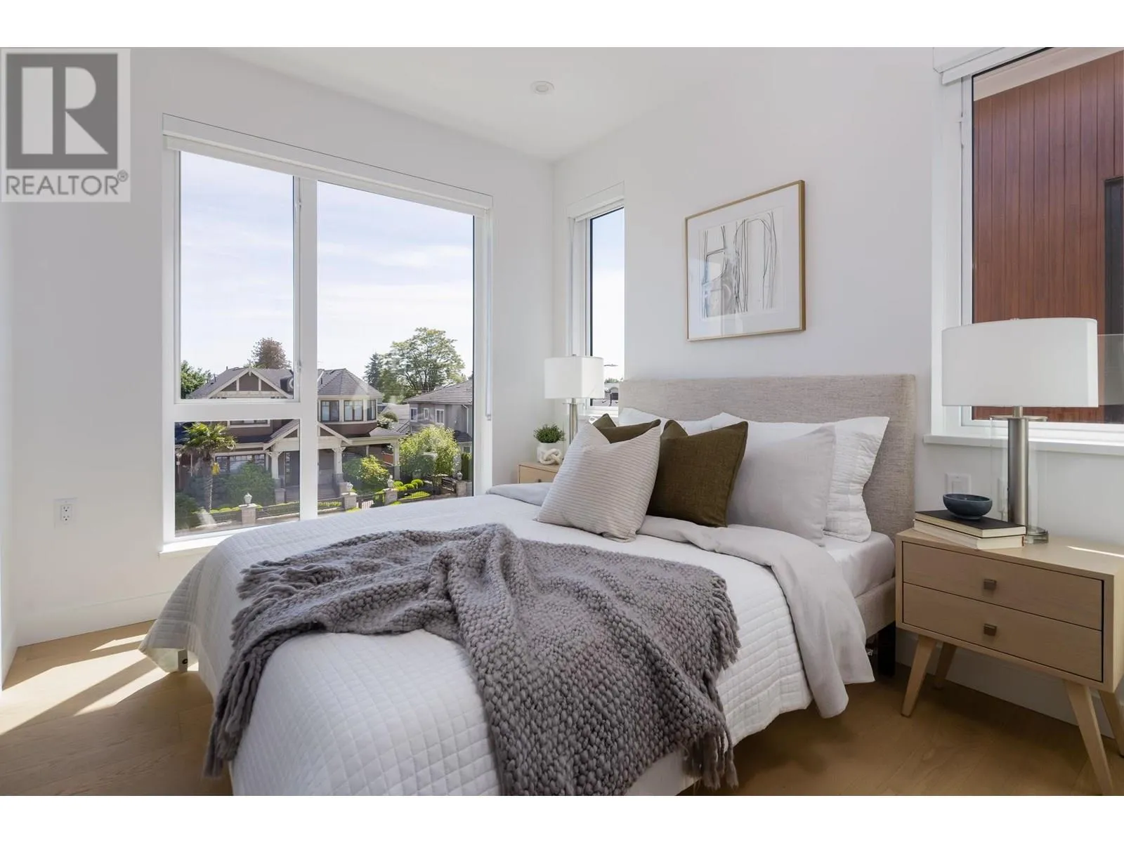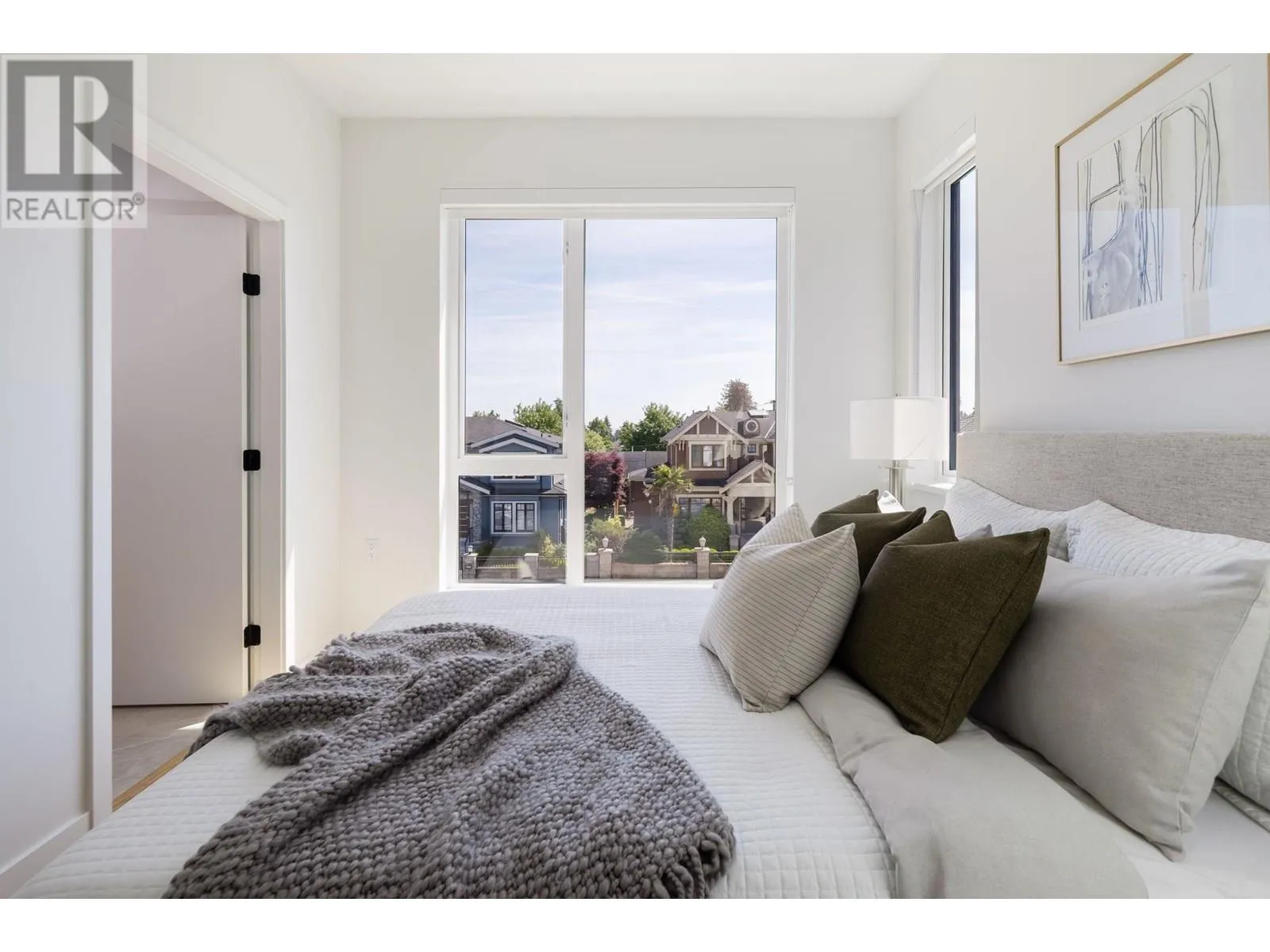Be W 49th by Modella Developments is a collection of 17 newly built move-in ready 2 and 3-bedroom homes located in Vancouver's prestigious West Side. Tucked into a community of single-family residences, Be W 49th offers the security of neighbourhood living with the accessibility of city amenities and rapid transit, just beyond your doorstep! This corner 2-level townhome features 3 beds and 2.5 baths across spacious 24'5" wide interiors with 9' ceilings and engineered oak floors throughout. Culinary kitchens include full size Gaggenau appliances and plenty of open and closed kitchen storage. Entertain and enjoy expansive views on the large rooftop terrace. Includes 1 EV ready parking and storage locker. Limited time $100,000 buyer incentive! Open House Saturday Nov 15, 2-4PM. (id:27476)