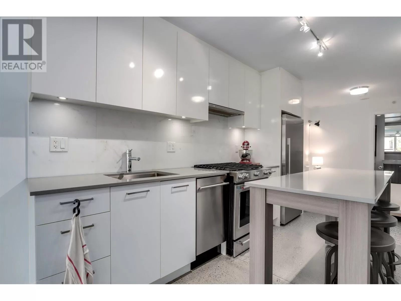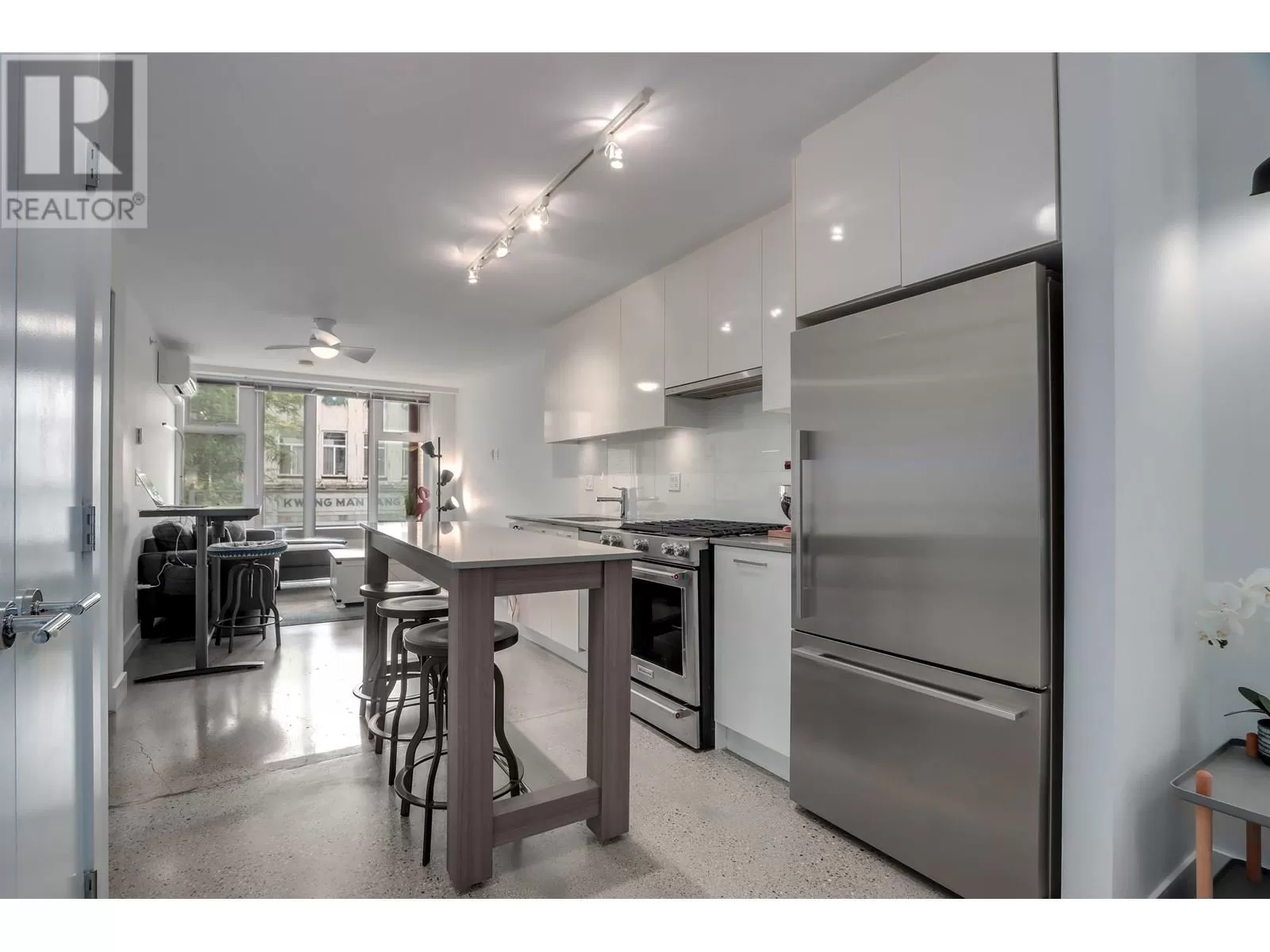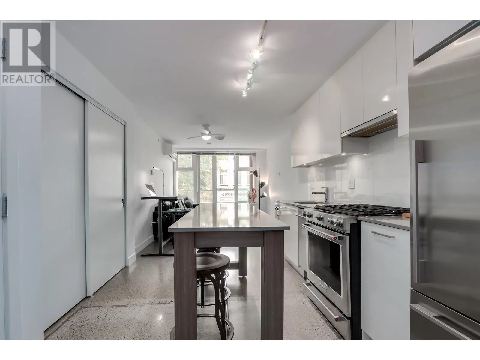 Welcome to FRAMEWORK by by Porte. Central location in a historical neighbourhood of Downtown Vancouver. Concrete solid building with split Air-Conditioner installed. Cotemporary finishes incl concrete floors, large closets with built-in organizers. Gourmet fully equipped kitchen features full-size stainless-steel appliances (Fisher&Paykel fridge, Kitchen Aid gas stove & Blomberg dishwasher), stone countertops & a spacious pantry. Storage locker (P3) and Bike storage (2F) included. OPEN HOUSE 2-4 PM SAT JUNE 21 (id:27476)