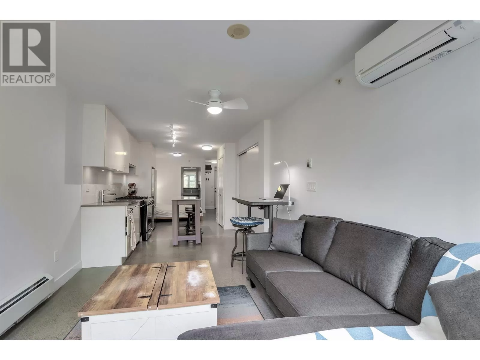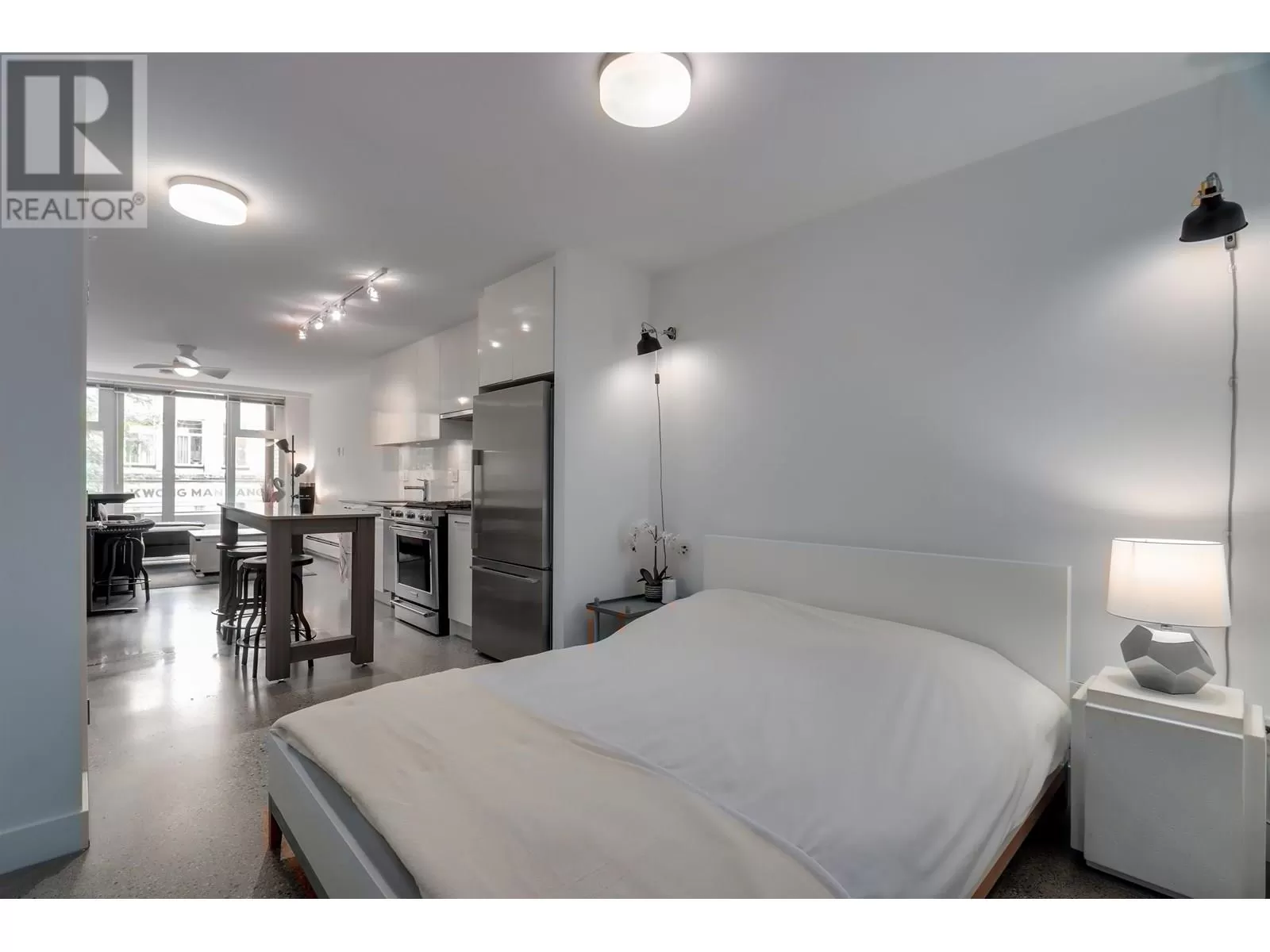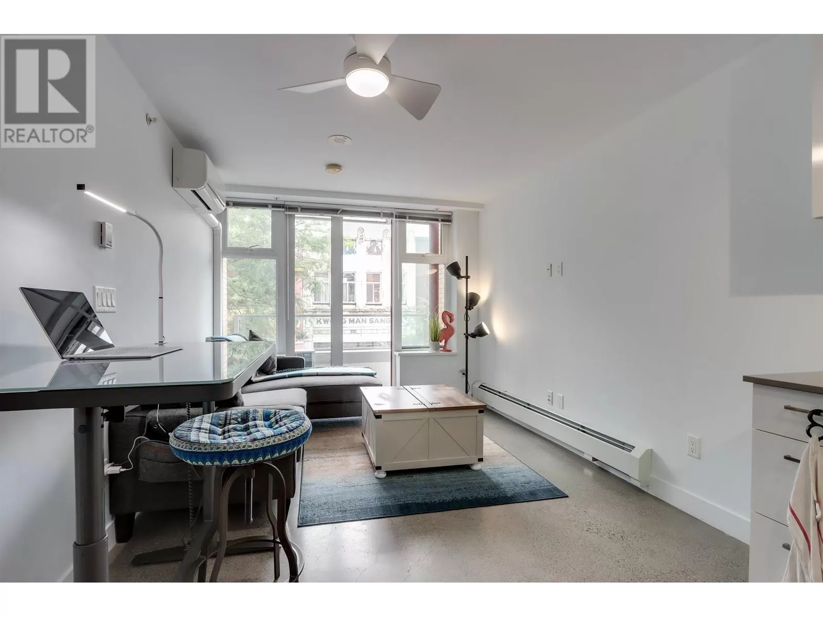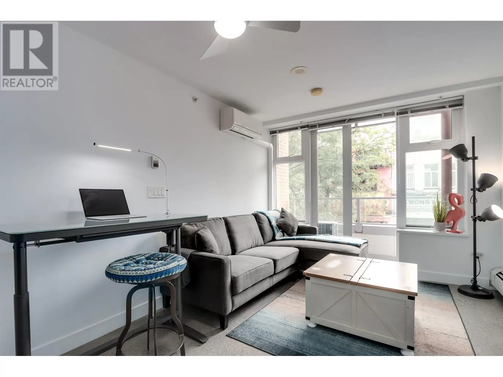Welcome to FRAMEWORK by by Porte. Central location in a historical neighbourhood of Downtown Vancouver. Concrete solid building with split Air-Conditioner installed. Cotemporary finishes incl concrete floors, large closets with built-in organizers. Gourmet fully equipped kitchen features full-size stainless-steel appliances (Fisher&Paykel fridge, Kitchen Aid gas stove & Blomberg dishwasher), stone countertops & a spacious pantry. Storage locker (P3) and Bike storage (2F) included. OPEN HOUSE 2-4 PM SAT JUNE 21 (id:27476)