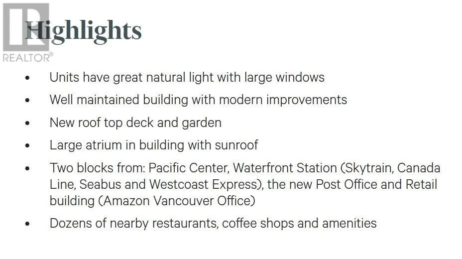 CONFERENCE PLAZA - 244 sq.ft. office space in central Downtown core location, steps from Gastown! Offices have upgraded vinyl plank flooring and great natural light with large windows + Hunter Douglas blinds. Well maintained building with newer roof top deck and garden. Two blocks from: Pacific Center, Waterfront Station (Skytrain, Canada Line, Seabus and Westcoast Express), the new Post Office and Retail building (Amazon Vancouver Office), plus nearby dozens of fantastic restaurants, coffee shops and amenities. Neighbouring units 246, 247 and 254 also for sale, totaling 1,964 SF. Can be interconnected and combined with units 246 and 247. Vacant. Court Ordered Sale. (id:27476)