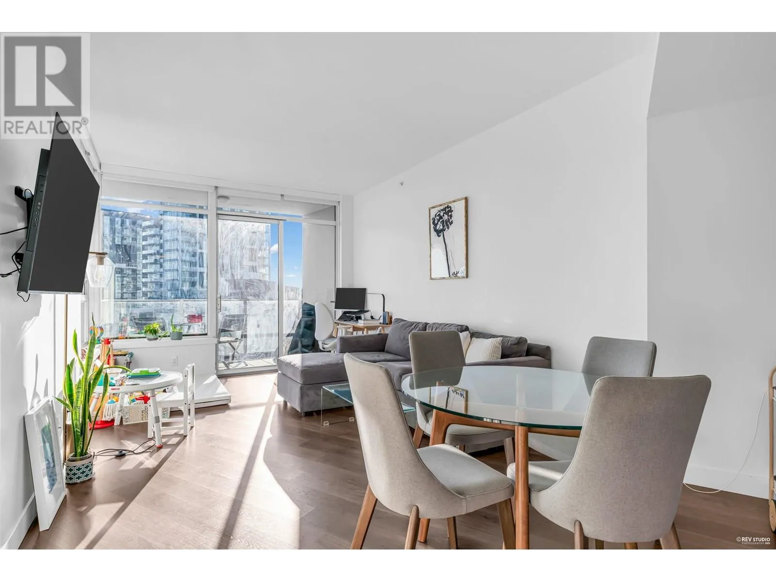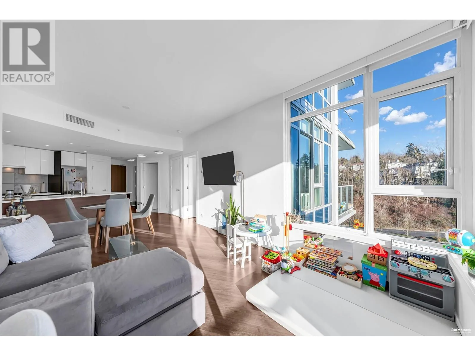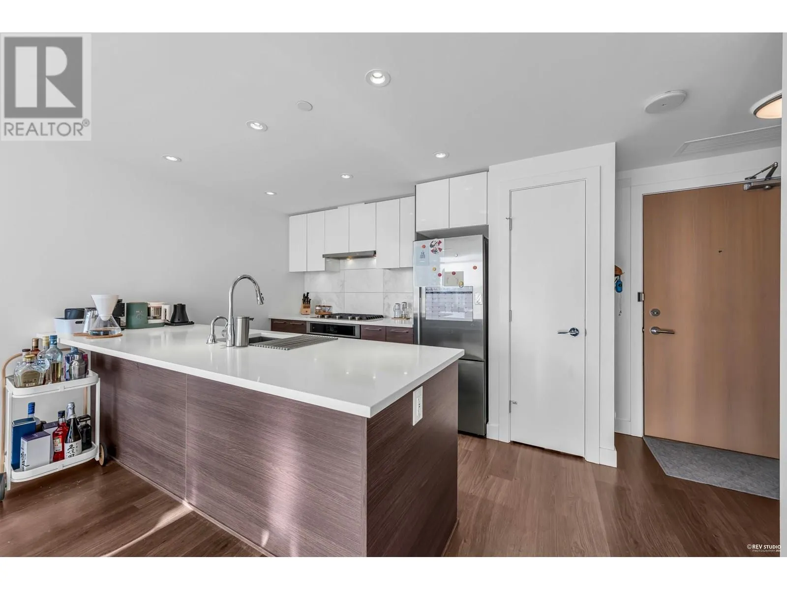 Welcome to Wesgroup's One Town Center in the River District, Vancouver's final waterfront community. This stunning contemporary 1-bedroom plus den home boasts 660 sq. ft. of open living space. The concrete building features 9 ft. ceilings and a gourmet European chef's kitchen with stainless steel Jenn-Air gas appliances, including a stove-top, oven, and bridge. Quartz countertops are found throughout the home. The spa-inspired ensuite, air conditioning, and Nu-Heat bathroom floors add extra comfort. Enjoy resort-style living with access to CLUB CENTRAL, a 14,000 sq. ft. amenity center, a resident lounge with a kitchen, two guest suites, and nearby dining and shopping options. Schedule your private showing today! (id:27476)