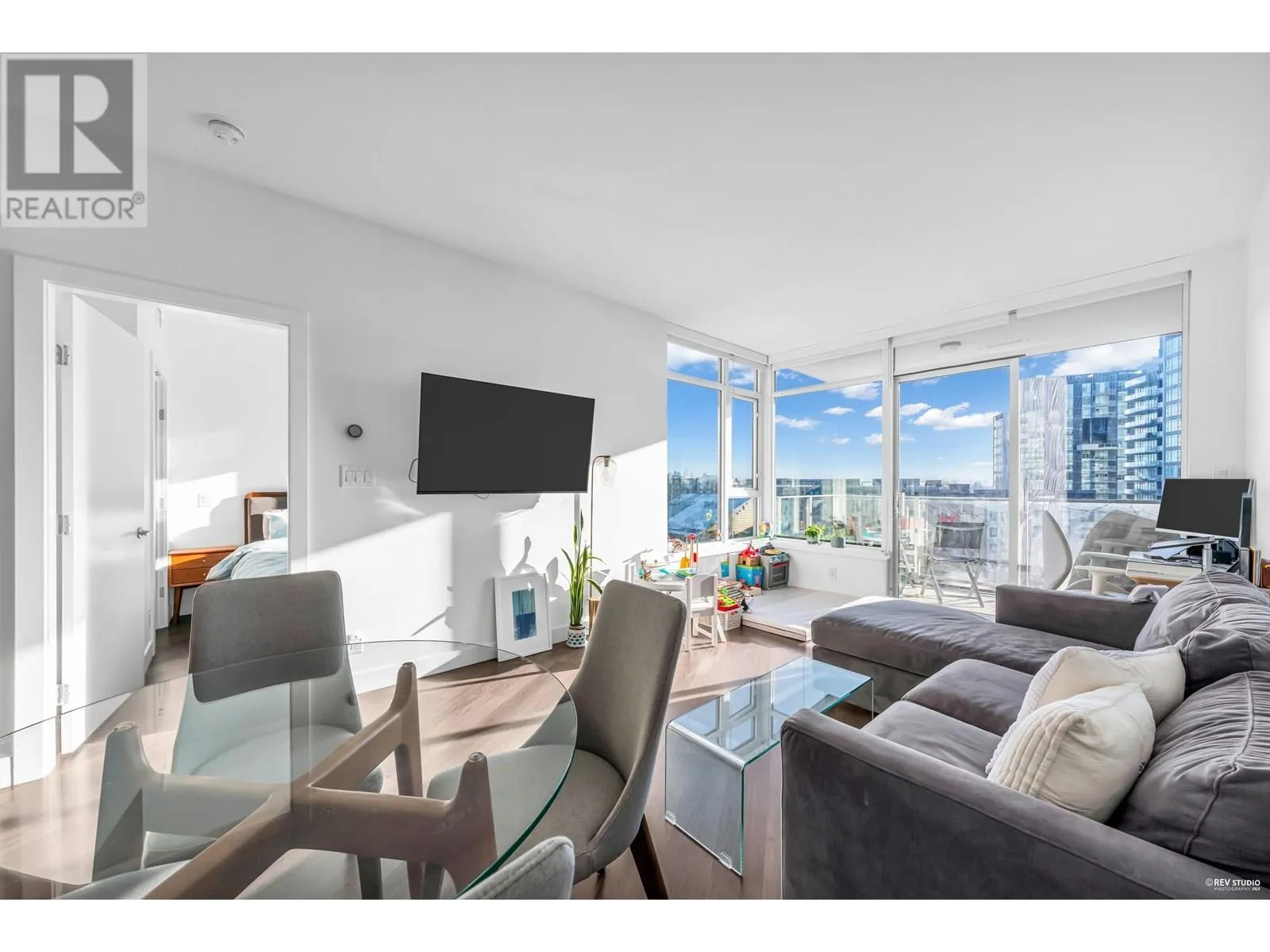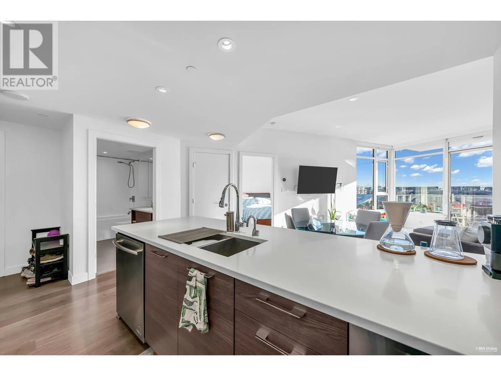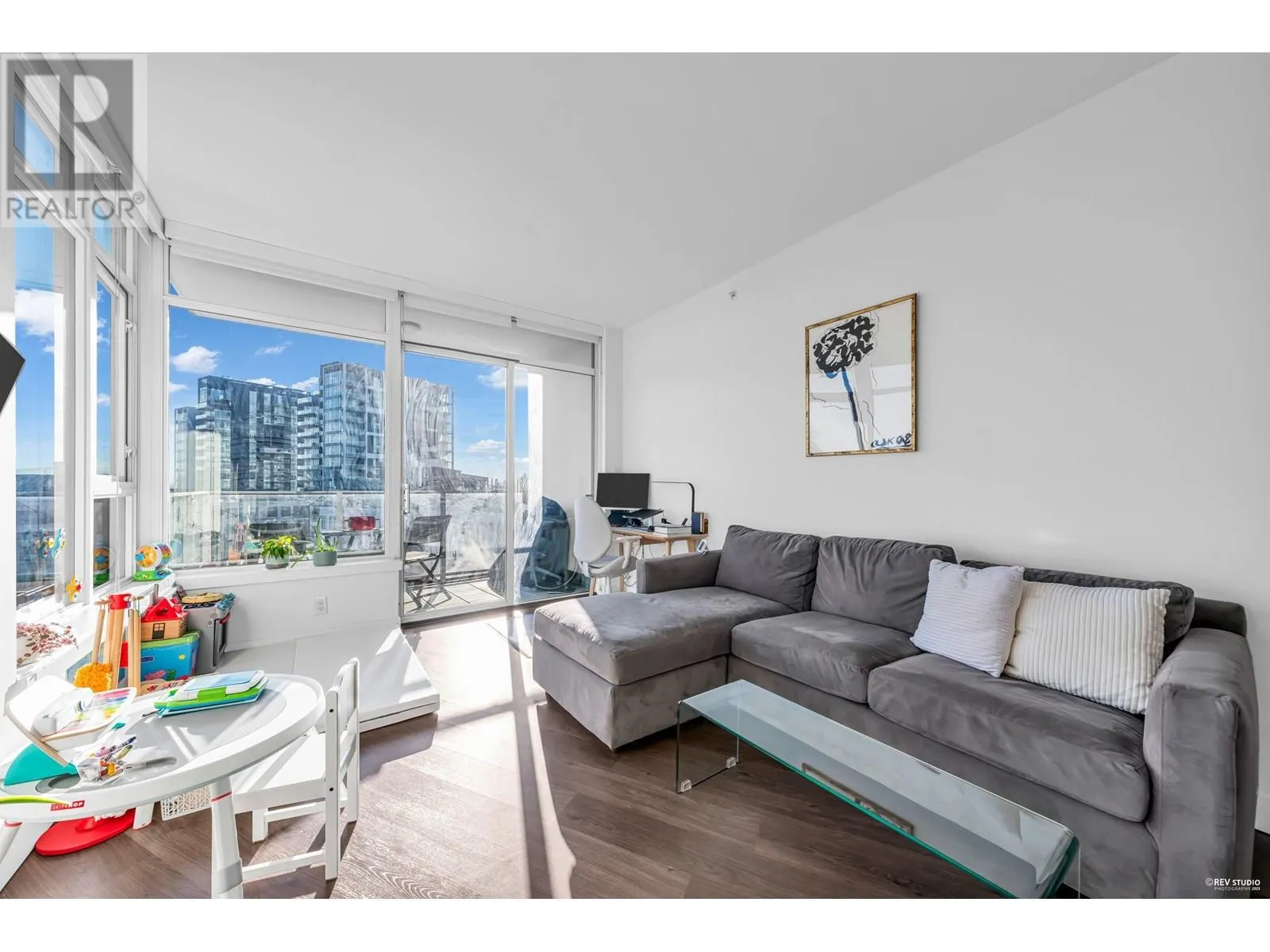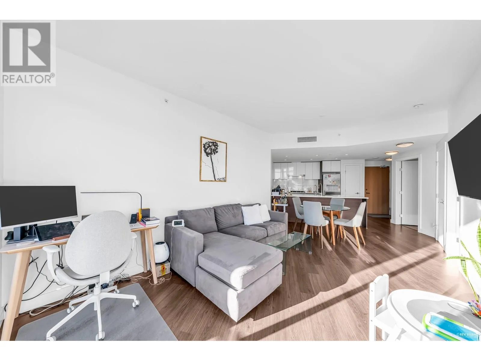 Welcome to Wesgroup's One Town Center in the River District, Vancouver's final waterfront community. This stunning contemporary 1-bedroom plus den home boasts 660 sq. ft. of open living space. The concrete building features 9 ft. ceilings and a gourmet European chef's kitchen with stainless steel Jenn-Air gas appliances, including a stove-top, oven, and bridge. Quartz countertops are found throughout the home. The spa-inspired ensuite, air conditioning, and Nu-Heat bathroom floors add extra comfort. Enjoy resort-style living with access to CLUB CENTRAL, a 14,000 sq. ft. amenity center, a resident lounge with a kitchen, two guest suites, and nearby dining and shopping options. Schedule your private showing today! (id:27476)