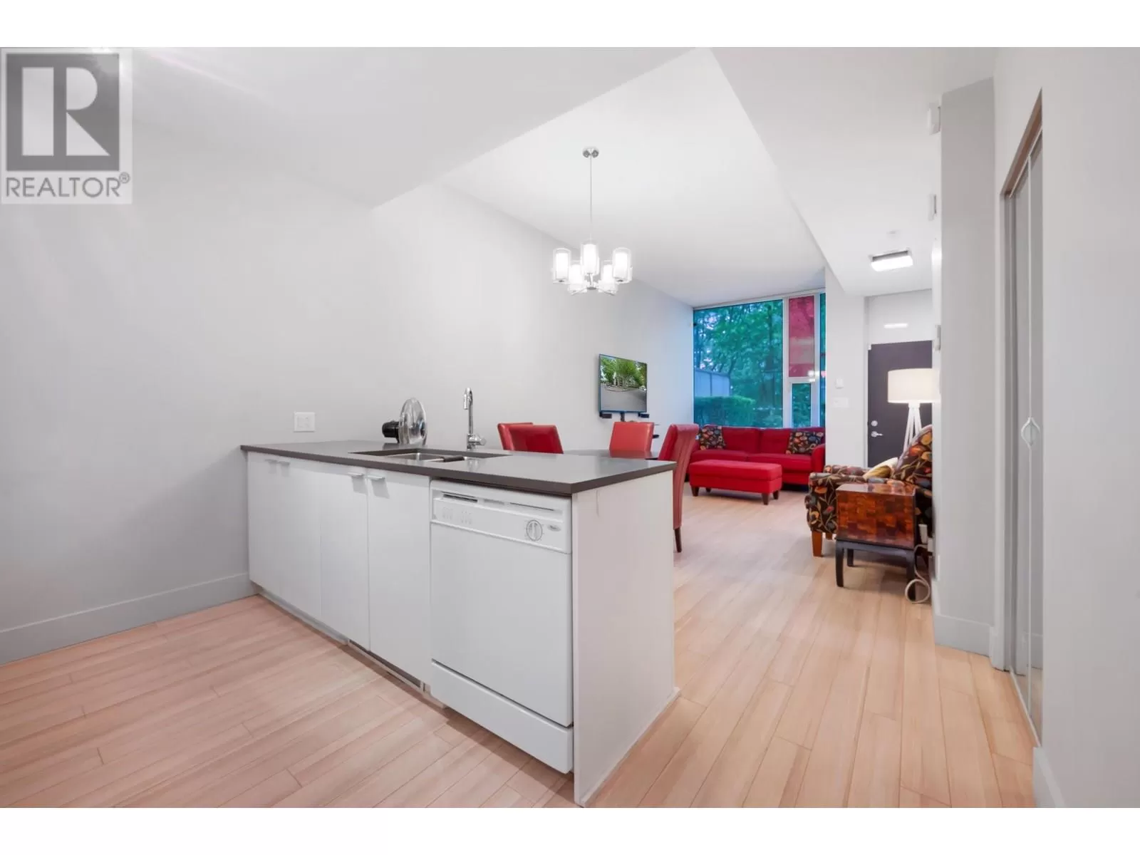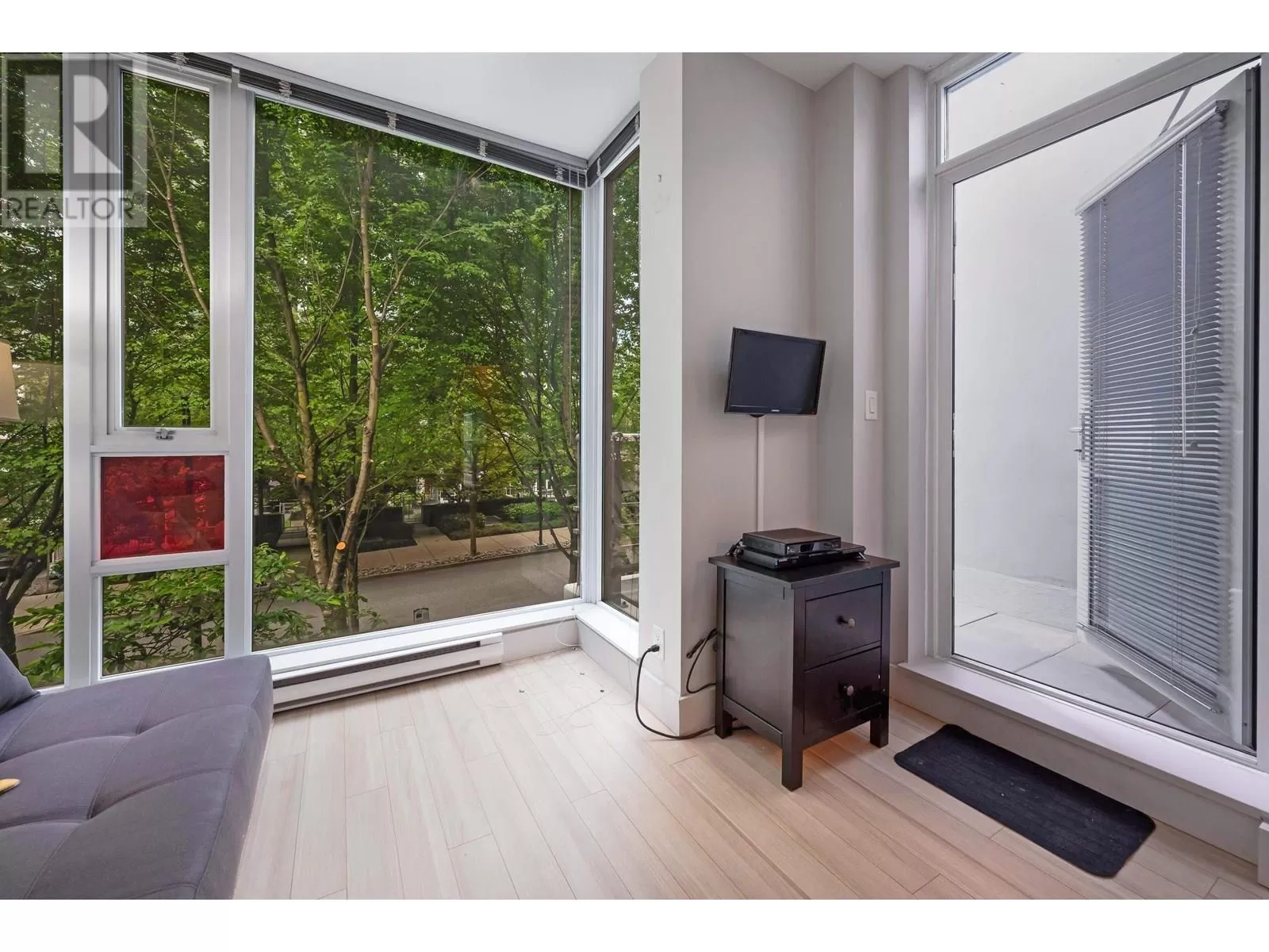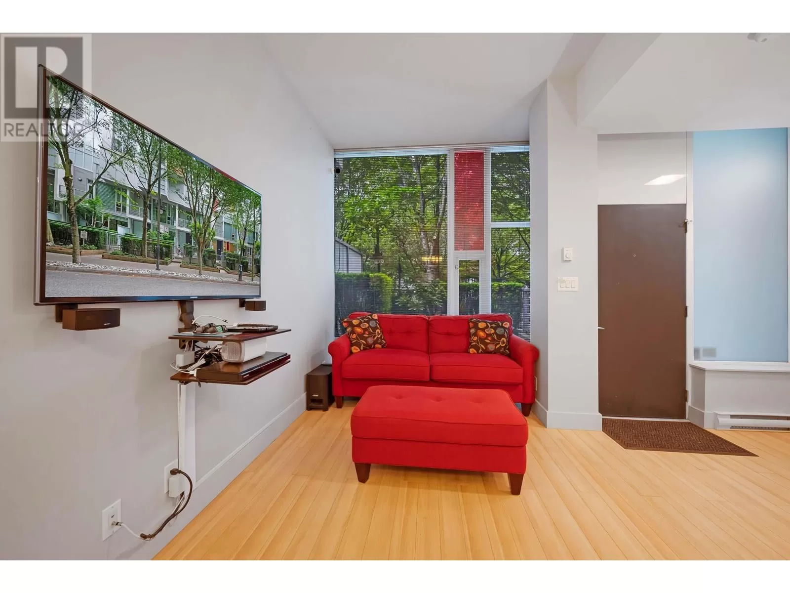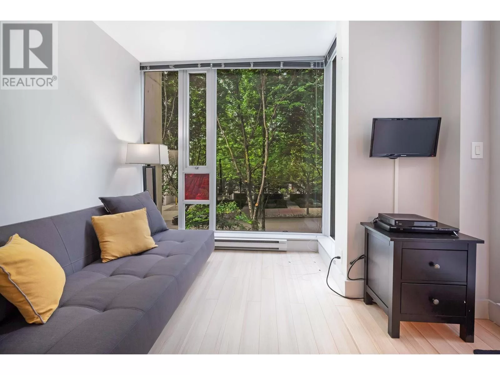 Welcome to this bright and contemporary townhome in the sought-after Spectrum community. This spacious home offers 2 well-appointed bedrooms, a versatile den ideal for a home office or nursery, and 2 bathrooms, including a main floor powder room and a sleek 3-piece upstairs. The open-concept living and dining area flows into a modern kitchen, perfect for everyday living and entertaining. Step out to your private rooftop patio, ideal for relaxing or hosting. Solid concrete construction ensures long-term durability and quiet comfort. Enjoy premium amenities including an indoor pool, fitness centre, hot tub, sauna, and concierge, all just steps from SkyTrain, shopping, dining, and the energy of downtown Vancouver. (id:27476)