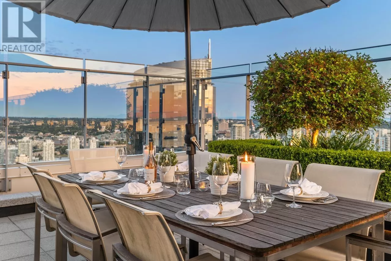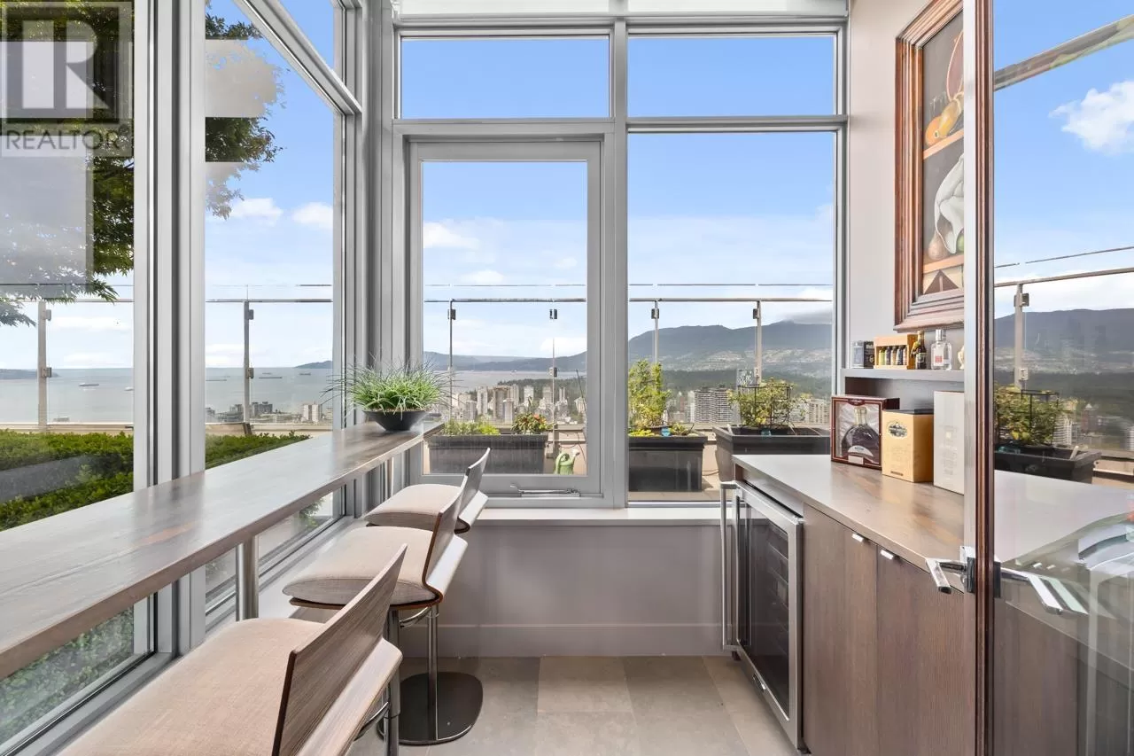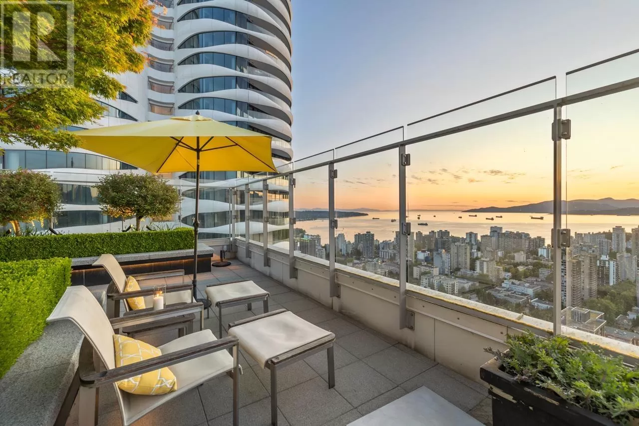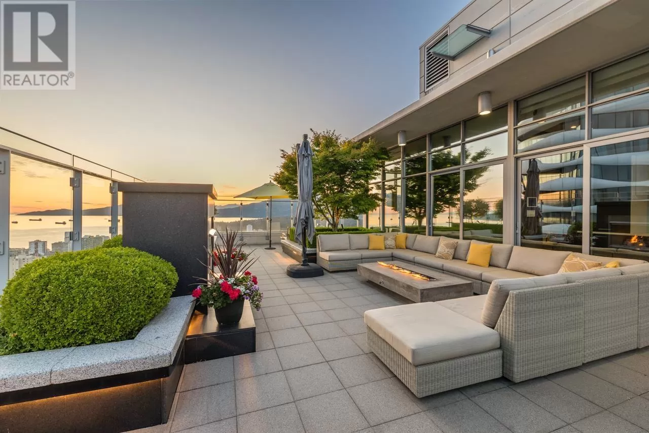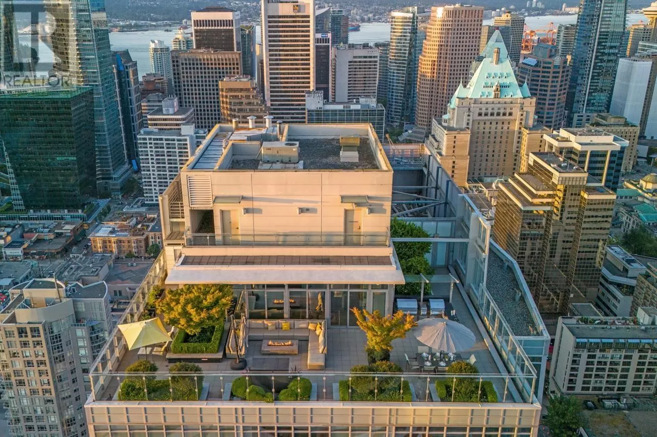 A truly one-of-a-kind urban sanctuary perched atop Vancouver's West End. The Patina Penthouse boasts breathtaking views of English Bay, Stanley Park, North Shore Mountains, and Mt. Baker. This 3-bedroom, 5-bathroom residence features a private 2,100+SF rooftop patio-an outdoor oasis with full kitchen, double BBQs, and fireplace...perfect for entertaining and enjoying sunsets & fireworks. Highlights include a 1,700-bottle wine cellar, scotch tasting room, hidden screen with projector in the primary suite, and La Scala sound system. Built by Concert Properties, this 3,136 SF home offers smart blackout blinds, fresh-air windows, and 4 EV-ready parking stalls. Enjoy full-time concierge service, gym access, and unbeatable proximity to Alberni Street´s luxury shopping and Michelin-grade dining. (id:27476)