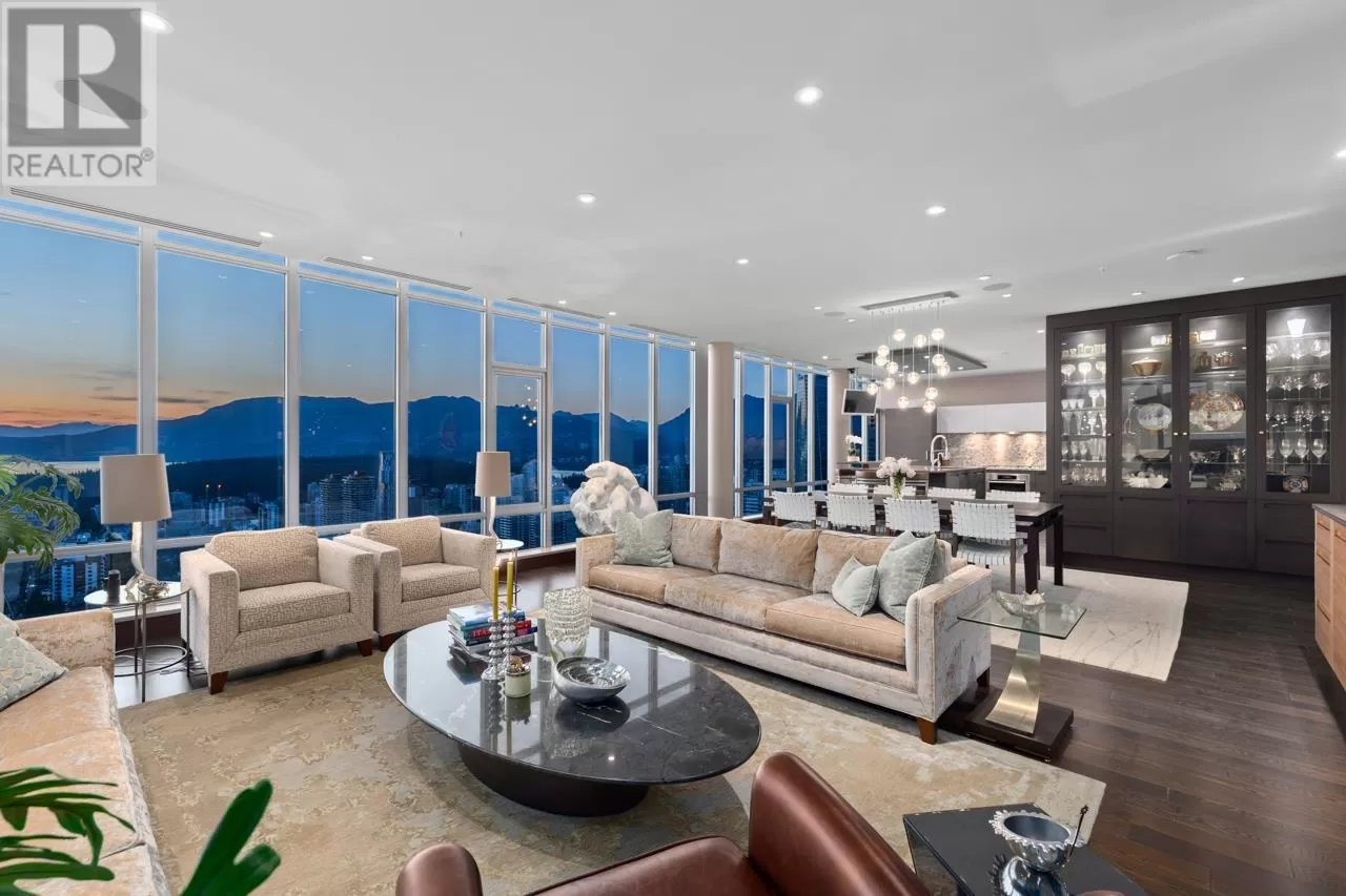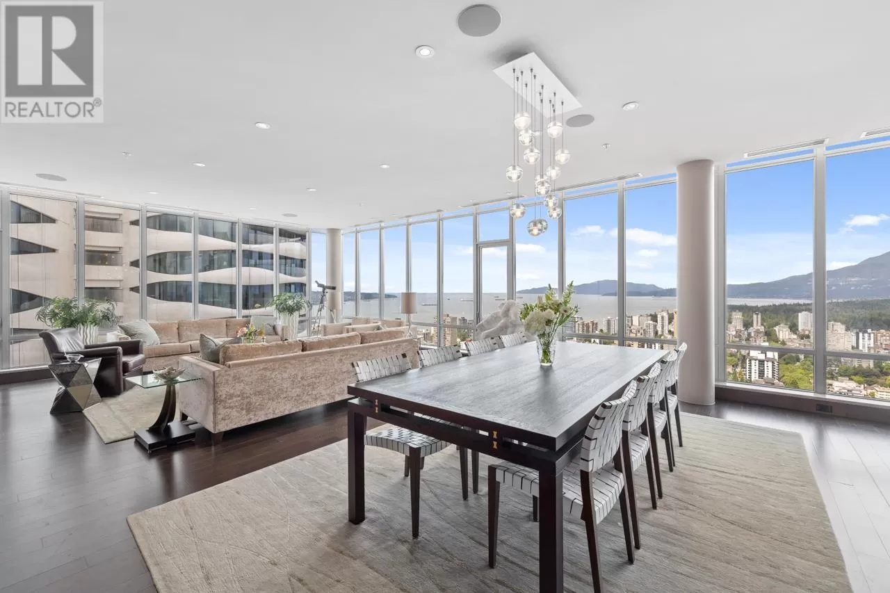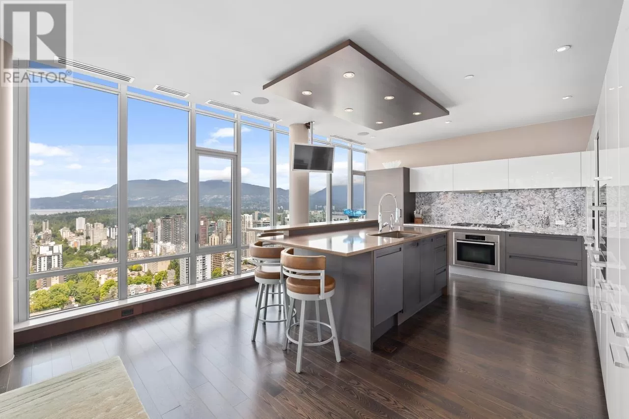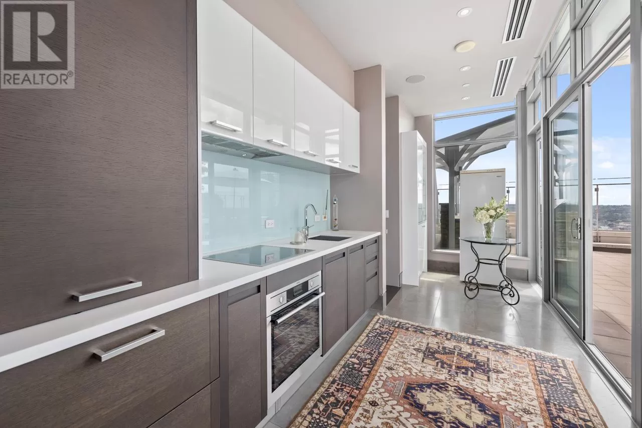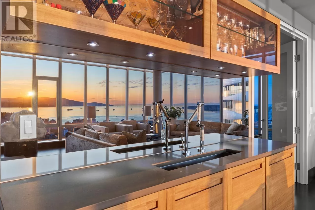A truly one-of-a-kind urban sanctuary perched atop Vancouver's West End. The Patina Penthouse boasts breathtaking views of English Bay, Stanley Park, North Shore Mountains, and Mt. Baker. This 3-bedroom, 5-bathroom residence features a private 2,100+SF rooftop patio-an outdoor oasis with full kitchen, double BBQs, and fireplace...perfect for entertaining and enjoying sunsets & fireworks. Highlights include a 1,700-bottle wine cellar, scotch tasting room, hidden screen with projector in the primary suite, and La Scala sound system. Built by Concert Properties, this 3,136 SF home offers smart blackout blinds, fresh-air windows, and 4 EV-ready parking stalls. Enjoy full-time concierge service, gym access, and unbeatable proximity to Alberni Street´s luxury shopping and Michelin-grade dining. (id:27476)