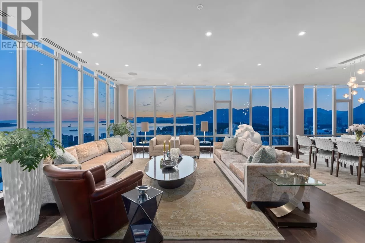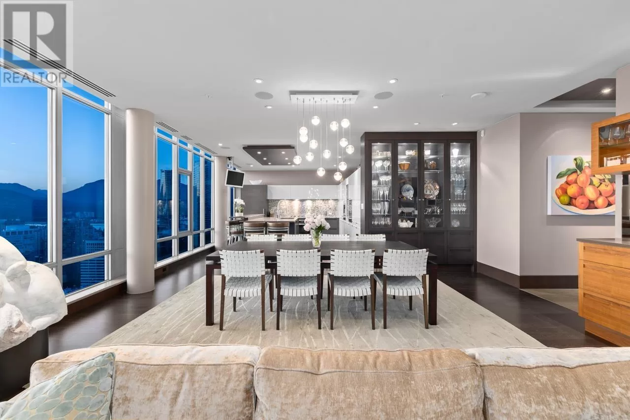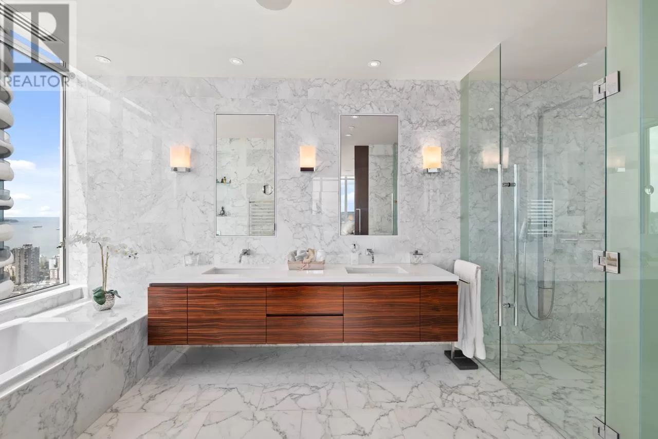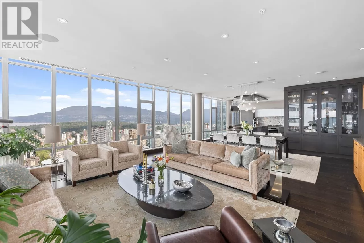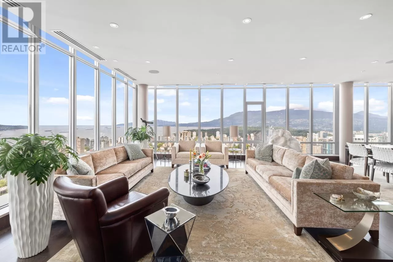 A truly one-of-a-kind urban sanctuary perched atop Vancouver's West End. The Patina Penthouse boasts breathtaking views of English Bay, Stanley Park, North Shore Mountains, and Mt. Baker. This 3-bedroom, 5-bathroom residence features a private 2,100+SF rooftop patio-an outdoor oasis with full kitchen, double BBQs, and fireplace...perfect for entertaining and enjoying sunsets & fireworks. Highlights include a 1,700-bottle wine cellar, scotch tasting room, hidden screen with projector in the primary suite, and La Scala sound system. Built by Concert Properties, this 3,136 SF home offers smart blackout blinds, fresh-air windows, and 4 EV-ready parking stalls. Enjoy full-time concierge service, gym access, and unbeatable proximity to Alberni Street´s luxury shopping and Michelin-grade dining. (id:27476)