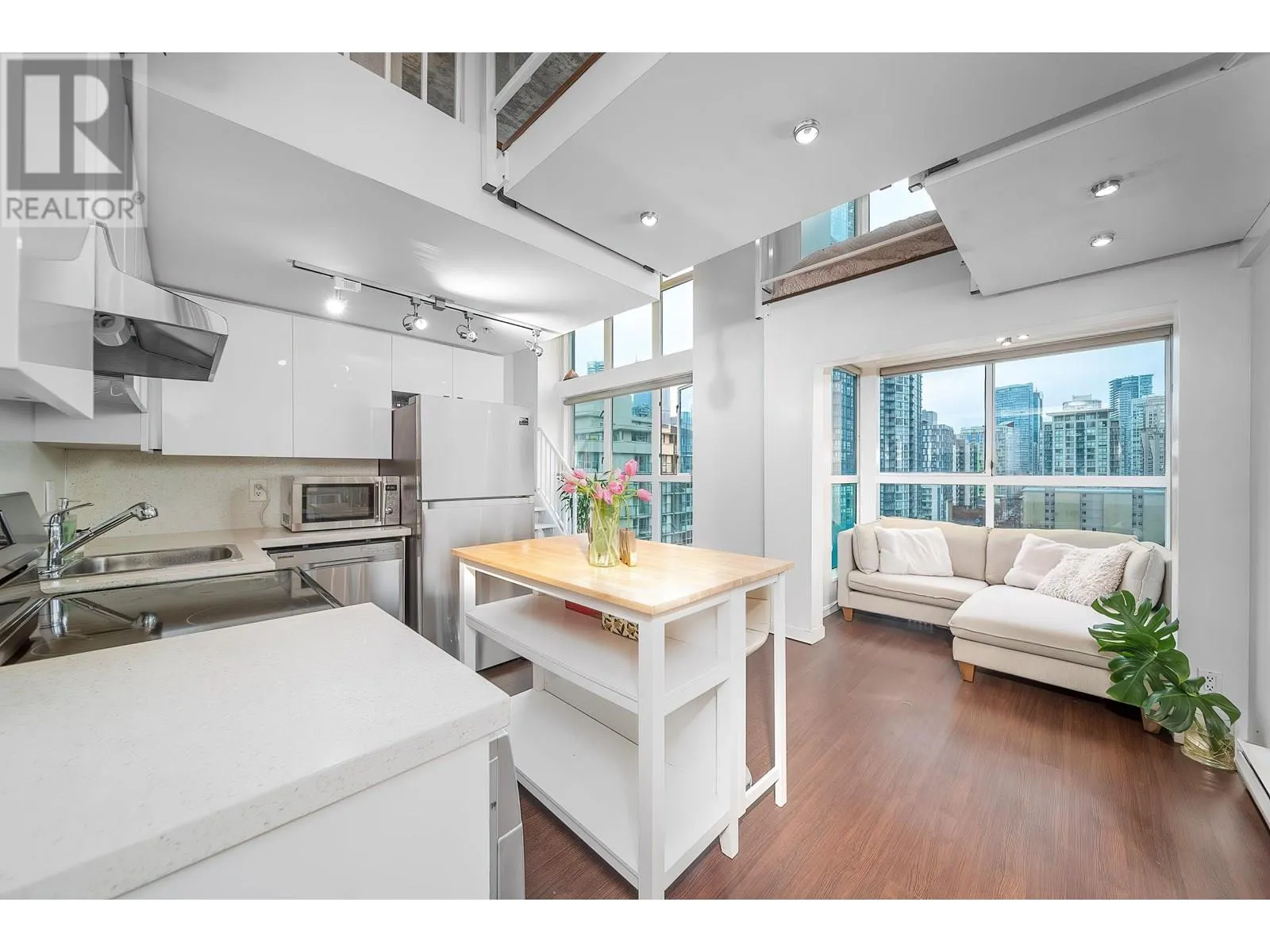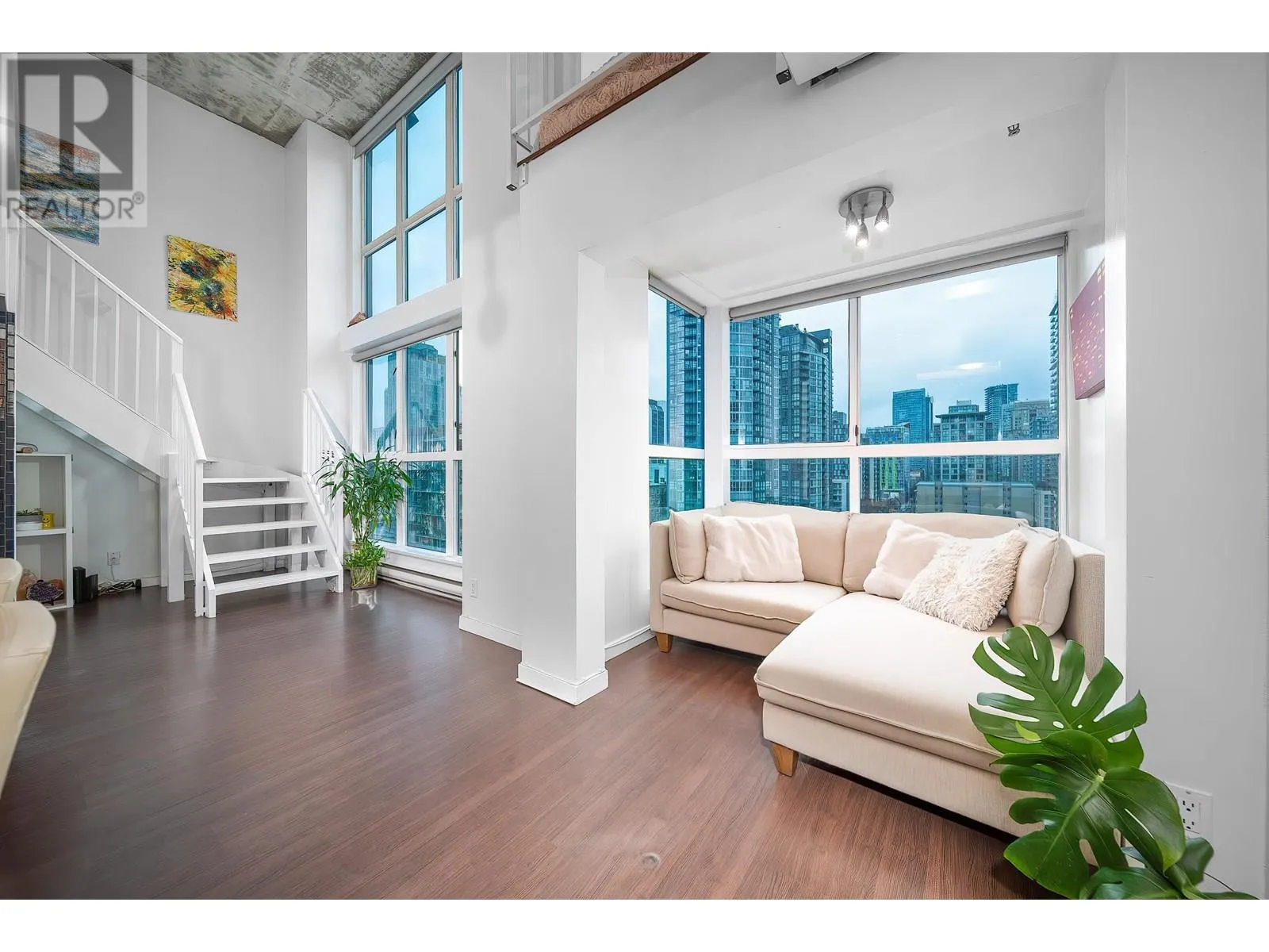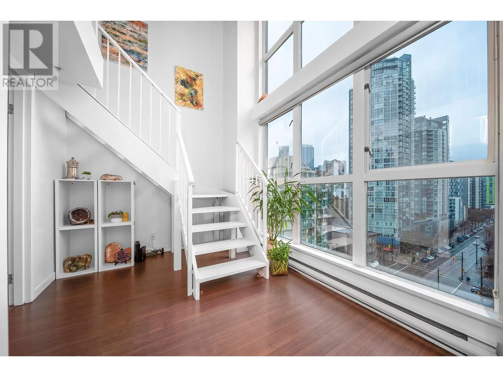 This stunning loft offers an impressive 16 foot ceiling and expansive floor-to-ceiling windows, providing breathtaking view of downtown Vancouver, this home enjoys abundant natural light , panoramic city views, and exceptional privacy. This rare loft layout offers a distinct separation between the private space on the upper level and the entertaining areas on the lower level, ensuring exceptional privacy, Ideally located just steps from the vibrant yaletown district and Downtown Vancouver. Ideally situated in a highly walkable neighborhood, this property placed you just steps from renowned restaurants, upscale retail shops and cafes, lively entertainment venues, serene parks and picturesque beaches. With the Skytrain conveniently nearby, commuting and city access are effortless. (id:27476)
