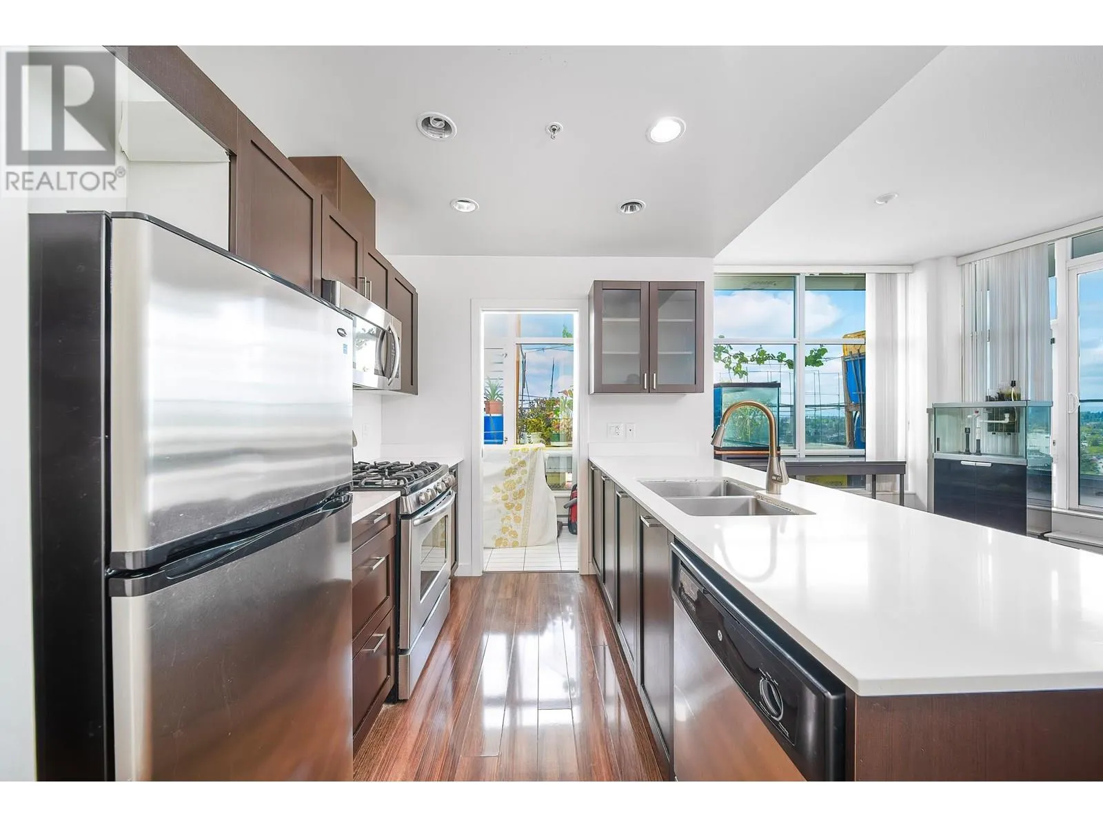 Central Location with Stunning Views! Just a 5-minute walk to T&T Supermarket, and close to Shoppers Drug Mart, banks, restaurants, shops, and bus stations - everything you need is right at your doorstep! This well-maintained 2-bedroom, 2-bathroom home offers over 900 square ft of comfortable living space with a bright open kitchen layout. Enjoy the spectacular city and mountain views from your oversized L-shaped balcony - perfect for soaking in the sun or watching English Bay fireworks nights from the comfort of home. Spacious bedrooms and bathrooms, and plenty of natural light throughout make this a true gem in the city. (id:27476)
