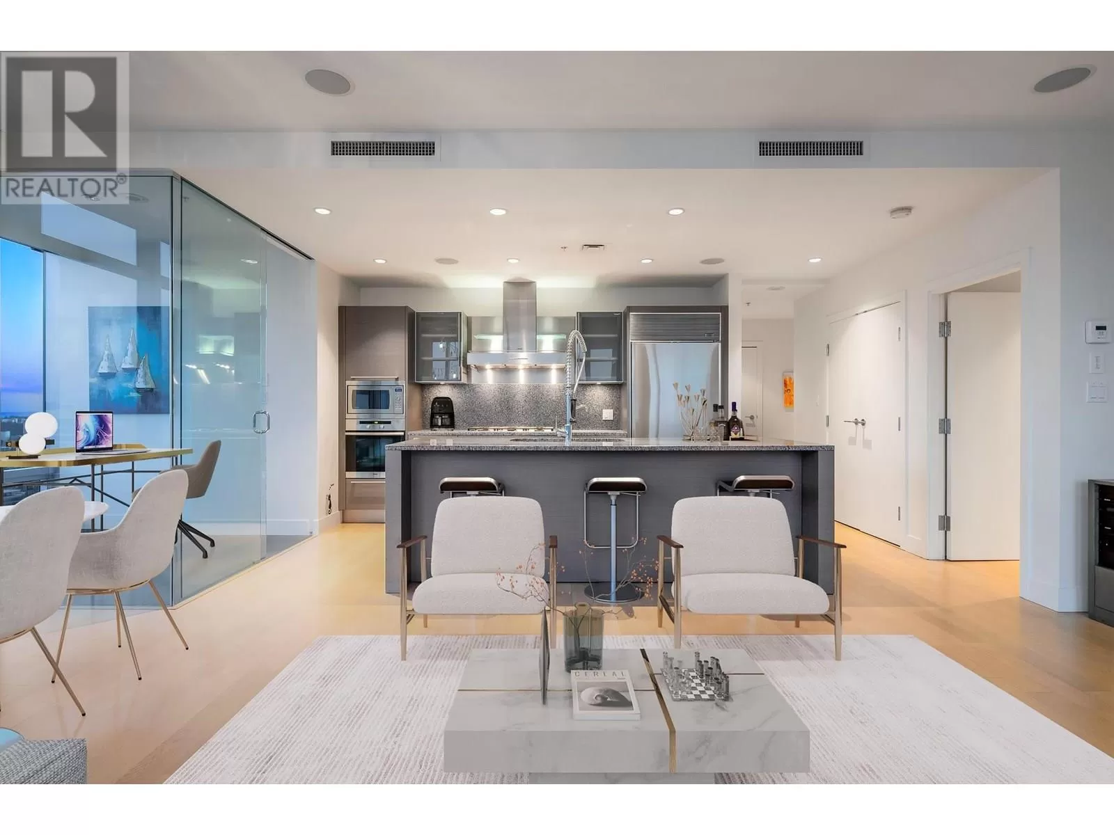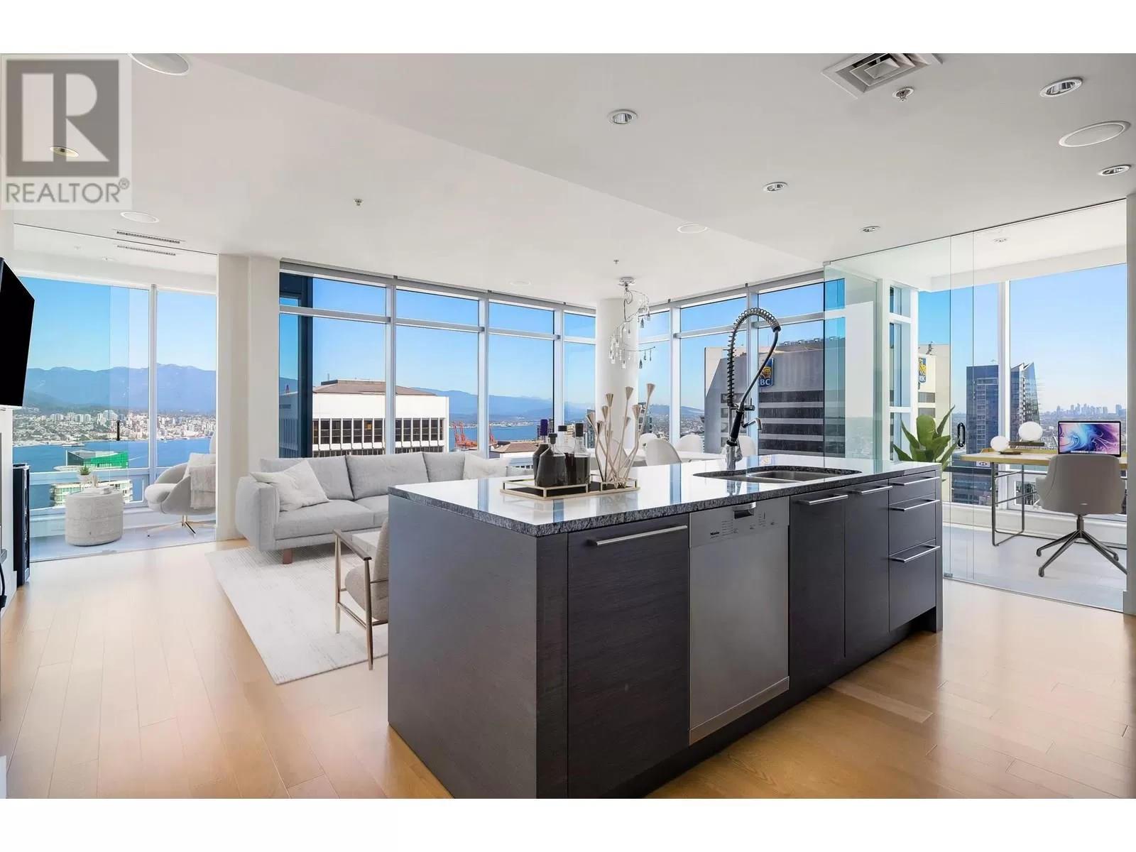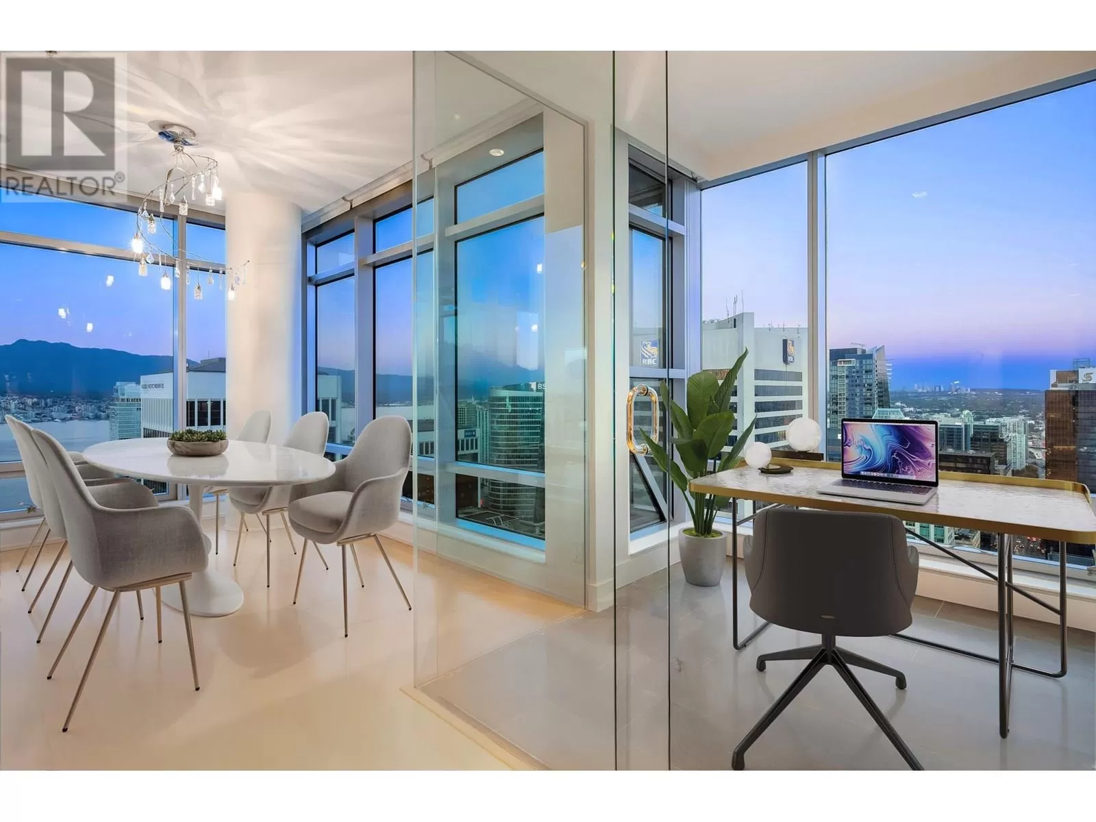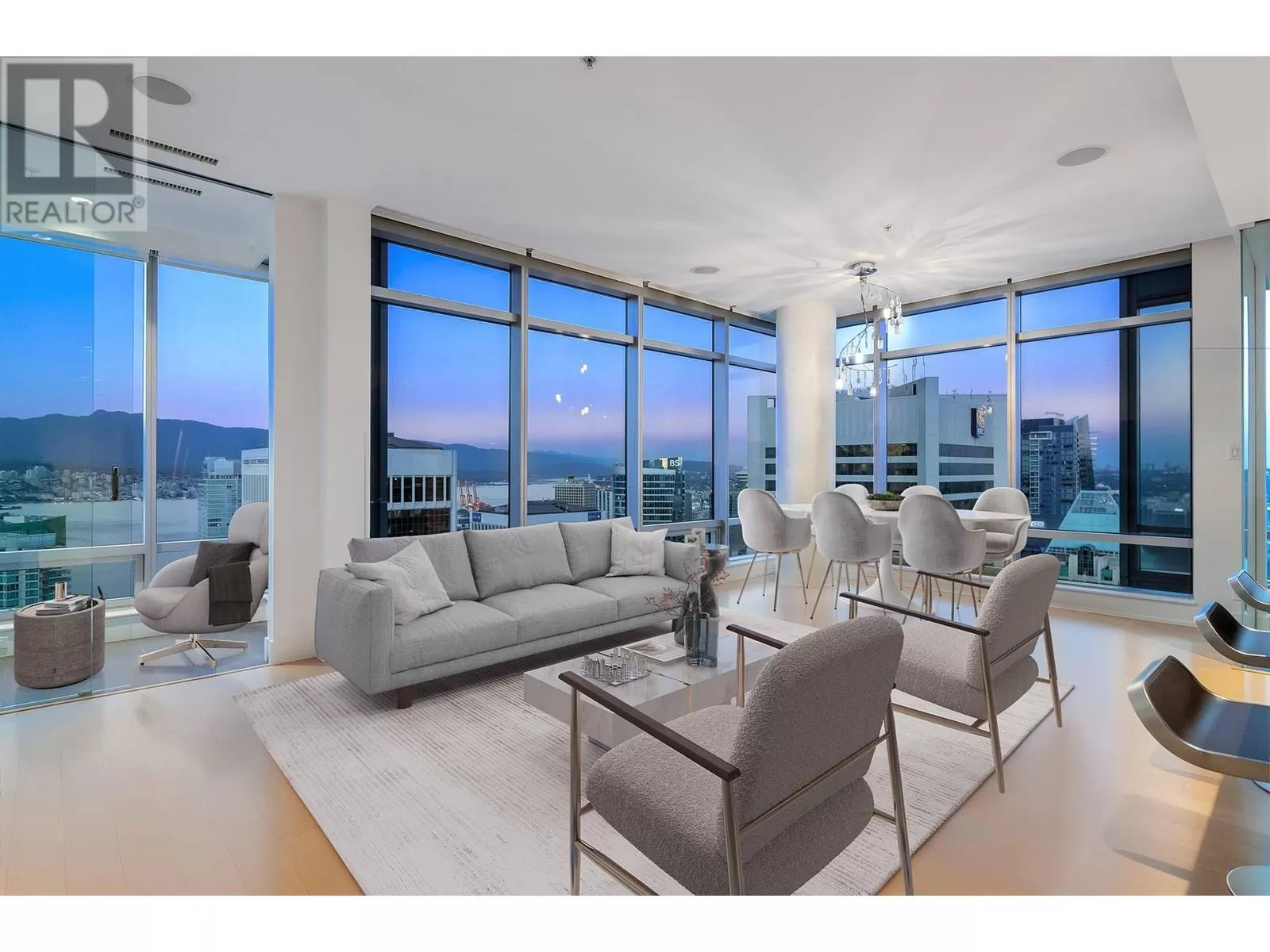 The ultimate world-class, 5-star luxury hotel living at prestigious Park Hyatt, on the highest floor at 1111 Alberni! Central A/C. Stunning views of Coal Harbour, ocean, north shore mountains & the vibrant city. 9' ceiling, open &functional space, incl. a den/in-suite storage & 2 solariums. A chef's kitchen equipped with built-in 6-burner Miele stove, Sub-Zero fridge & Miele d/w, oven. Luxurious features incl auto shades & built-in speakers throughout & blackout shades in both bdrms, floors. Spectacular ocean view from the primary bdrm & city, mountain view from the 2nd bdrm. Meticulously maintained, ready to move in. Amenities: pool, hot tub, gym. 24/7 concierge. 1 oversized parking close to elevator+a private storage room is right behind! Open House: Sat, Jul 5: 1:30-3:30; Sun, Jul 6: 2-4 (id:27476)