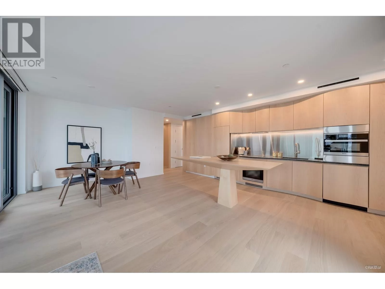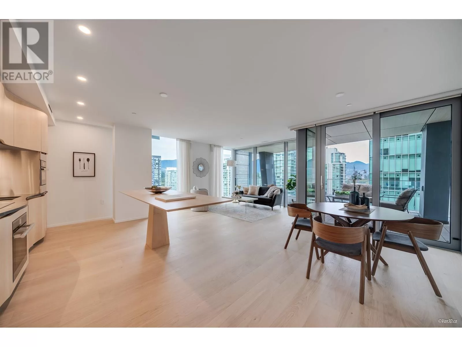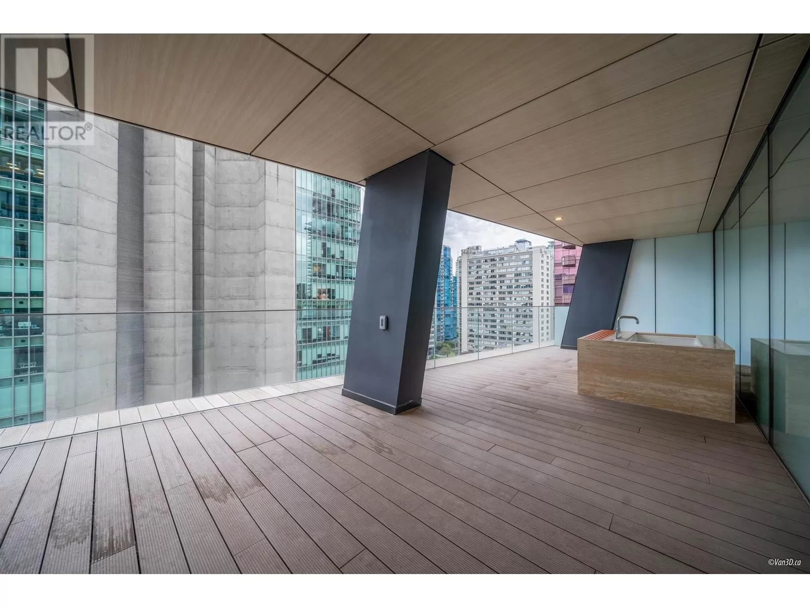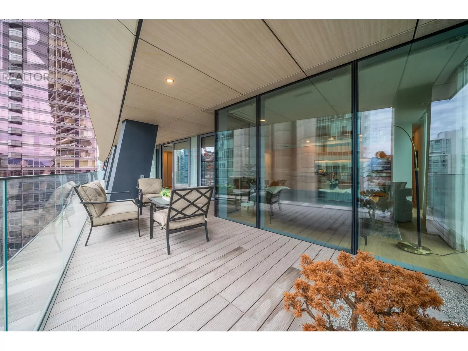 Alberni by Westbank, designed by the renowned Japanese architect Kengo Kuma, is set to become one of the most prestigious residential landmarks in Downtown Vancouver. This 43-story tower features two dramatic oversi that create deep wood-furnished balconies, complete with Zen gardens and private Japanese soaking tubs. The interiors showcase a custom maple wood feature wall running the full length of the kitchen, complemented by a Miele appliance package. Bathrooms are finished with European limestone walls, and the unit features triple-glazed windows with motorized coverings. Offering breathtaking northeast views of Coal Harbour's ocean and mountains, this residence boasts 219 square feet of private outdoor space. Residents enjoy world-class amenities, including a 3,000-square-foot fitness (id:27476)