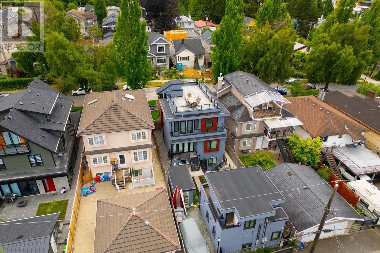 This modern home in Renfrew Heights offers an elegant blend of design and functionality. Three bedrooms, a theatre room in the main home with high-end finishes throughout. A sophisticated open-concept kitchen, 4 full luxurious bathrooms, and designer details make this home truly special. The second-floor master suite boasts bright mountain vistas and tranquility, complemented by two additional bedrooms ideal for family. A third-floor ROOFTOP DECK beckons for mountain gazing or starlit gatherings, soak in breathtaking views of snow-capped mountains-perfect for unwinding at sunrise or sunset. Additionally, a 2-bedroom legal suite and 1-bedroom, 1 bath laneway provide exceptional income potential. Open parking, A/C, radiant heated floors & remaining 2-5-10 warranty, this house has it all! (id:27476)