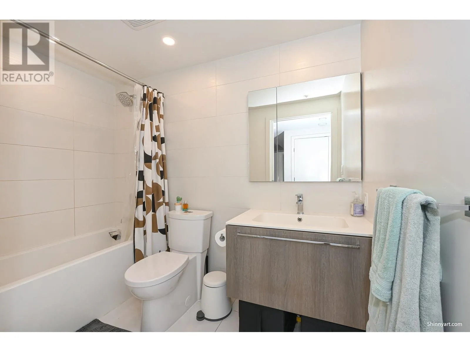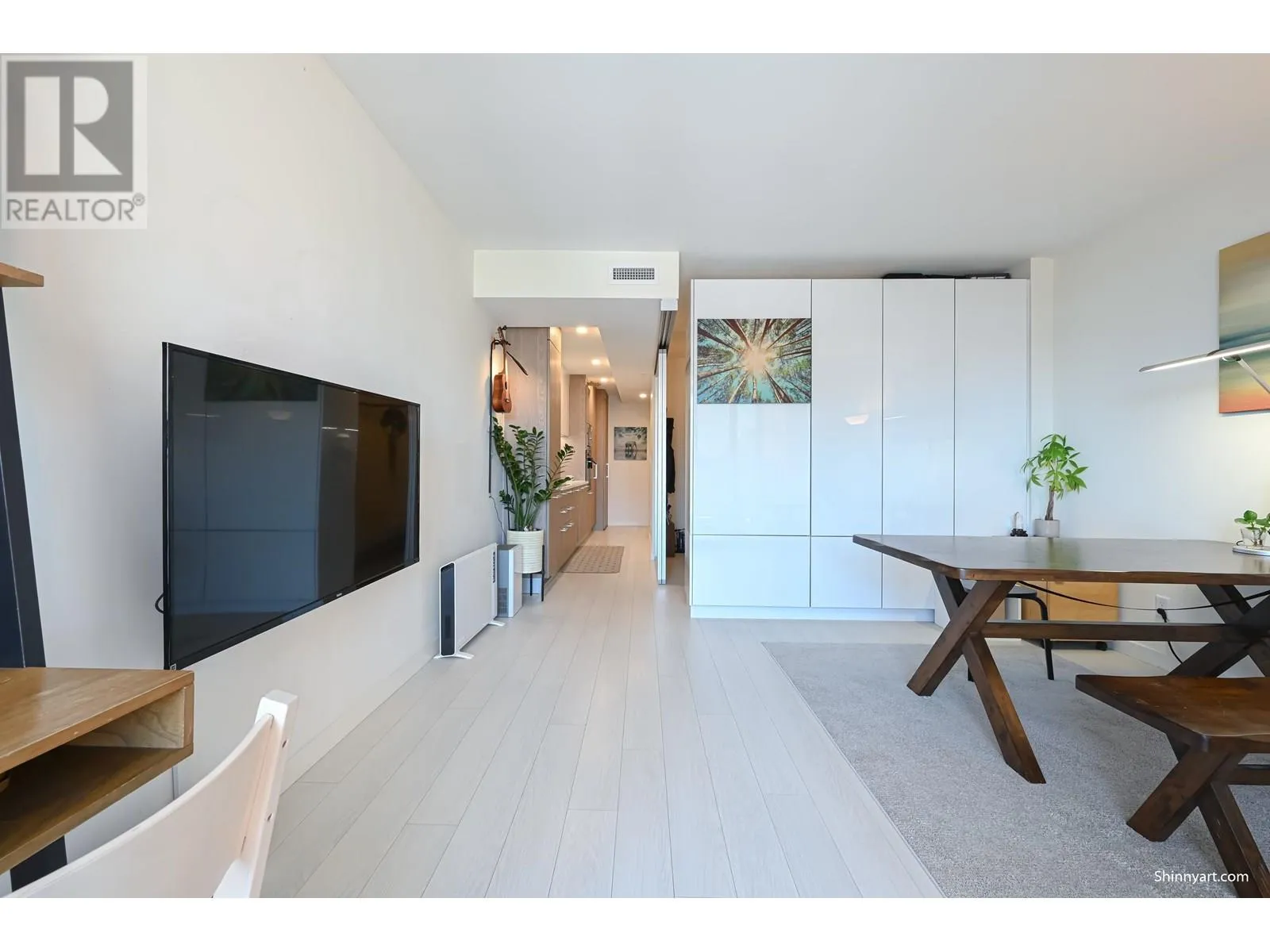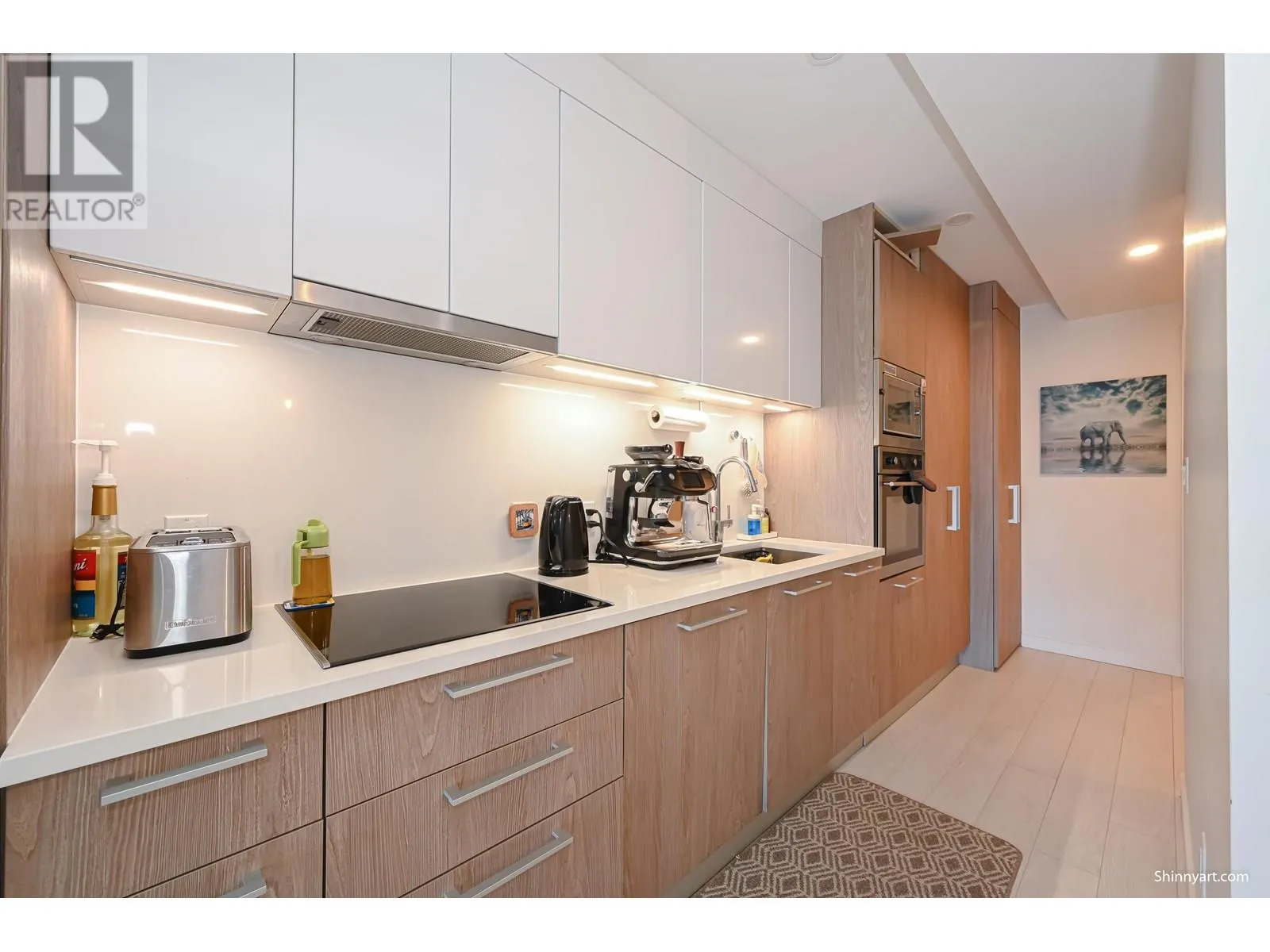 Welcome to The Independent, A South East facing, 1 Bed and Flex unit, features with efficient, open concept floor plan, flex room up-graded with closet rack with clothes hanger and shelf, 4 pieces bath room, big storage closet, contemporary style gourmet kitchen with stainless steel appliances, in-suite laundry, in-suite HVAC, floor to ceiling windows, large South East exposed balcony. The Independent complex amenities include fitness center, party room, outdoor BBQ, guest suite, workshop, children's play area, dog wash/run. Central location within the city, steps from Main St shops, restaurants, grocery stores, transit routes and upcoming Sky Train Station. 1 EV parking stall # 8 P2, 1 bike storage locker # 12 (Bike room 107) on B/F. (id:27476)