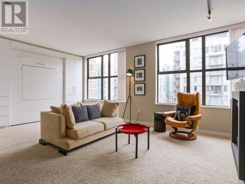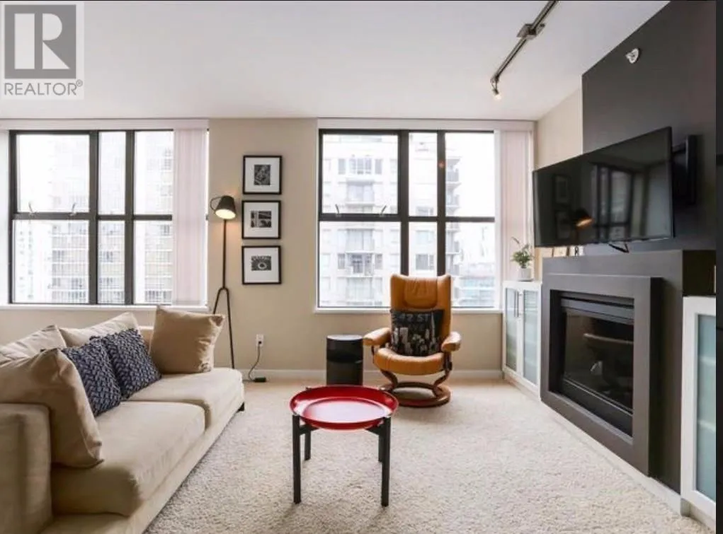 Welcome to Nova by Bosa, a concrete high-rise in the heart of Yaletown! This bright and efficient 1 bed + storage/Flex space with built in shelving home offers sweeping city and peekaboo water views from the 16th floor. The open-concept layout features bright windows, a spacious kitchen with gas range, granite counters, and a movable island perfect for entertaining. Enjoy a generous bedroom with a murphy bed with a built-in closet, in-suite laundry, and a cozy fireplace. Building amenities include an exclusive use of Eurospa w/steam room, whirlpool, fully equipped training gym, yoga studio.2 parking and 1 storage included. Steps to the seawall, Canada Line, shops, cafes, and all that downtown living has to offer. Pet and rental friendly - ideal for first-time buyers or investors. (id:27476)