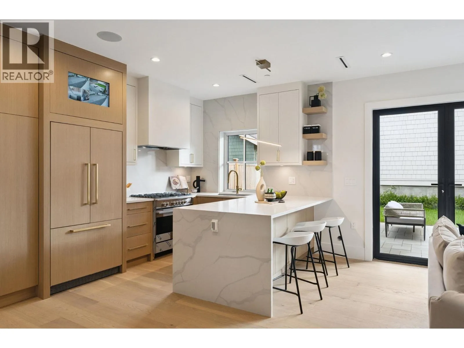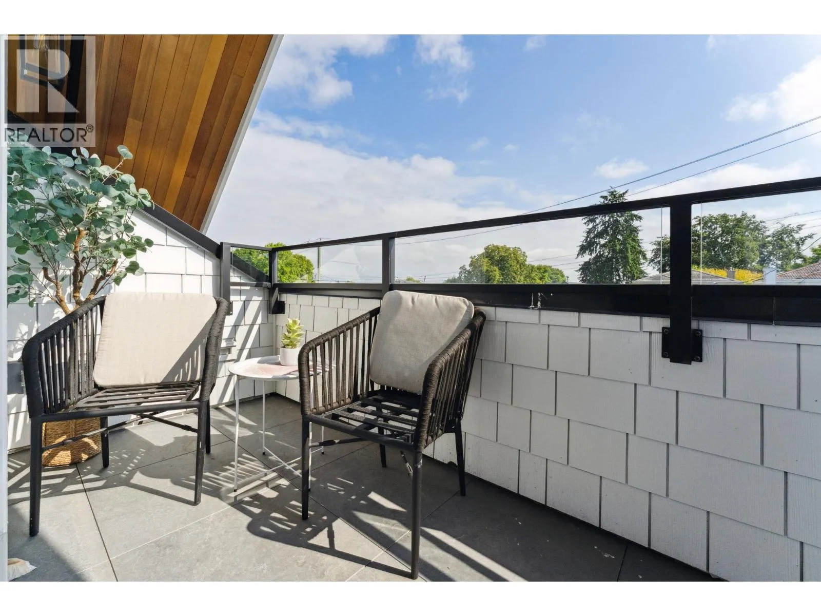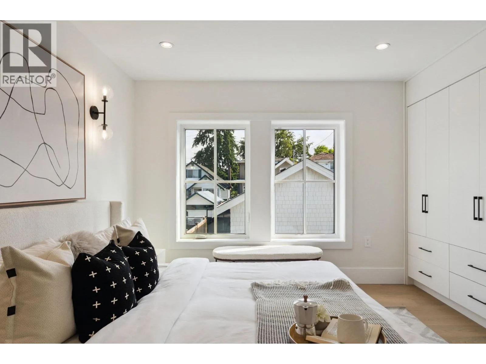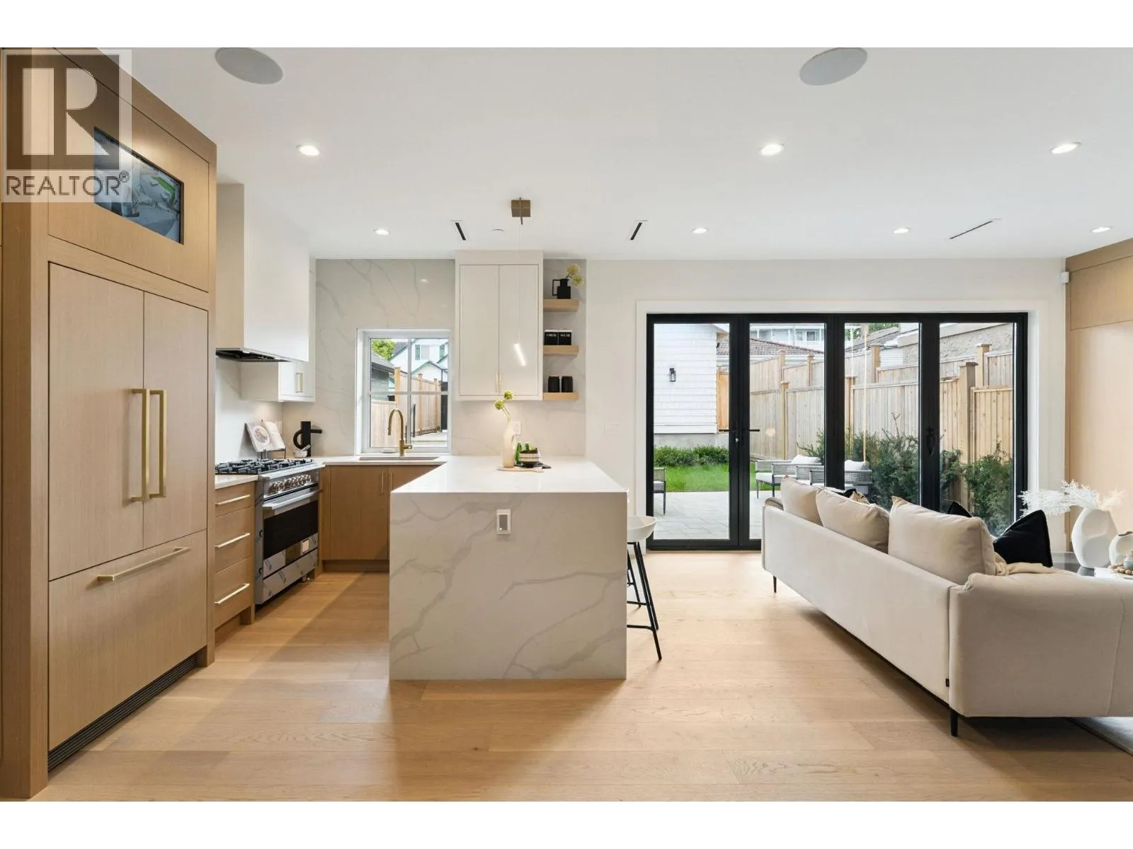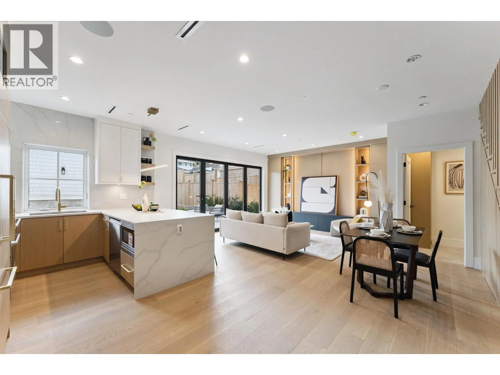 Welcome to this luxurious back-unit duplex crafted by Encore Collection in vibrant East Vancouver. Offering stunning downtown views, this home showcases high-end exterior finishes, blending Hardie, Brick, & Norwegian Fluted siding for a sophisticated design. This thoughtfully designed 3-bed, 3.5-bath home features an open-concept main floor that seamlessly connects the gourmet kitchen, living, dining, & outdoor spaces-perfect for both relaxing and entertaining. The kitchen is equipped with premium Fisher & Paykel appliances & sleek stone countertops. The second floor includes two primary beds, each w/its own luxurious ensuite. The top floor offers a spacious third bedroom with a private ensuite, providing the ultimate retreat for comfort & tranquility. Additional highlights include air conditioning, white oak hardwood floors, custom cabinetry, CCTV security, an alarm system, a 12' accordion patio door, & a private garage. (id:27476)