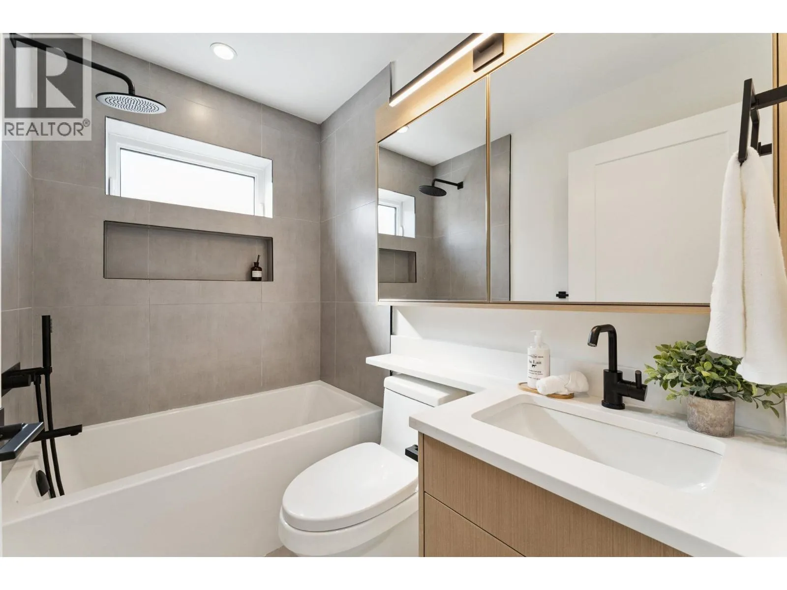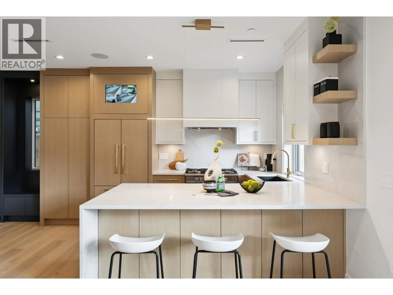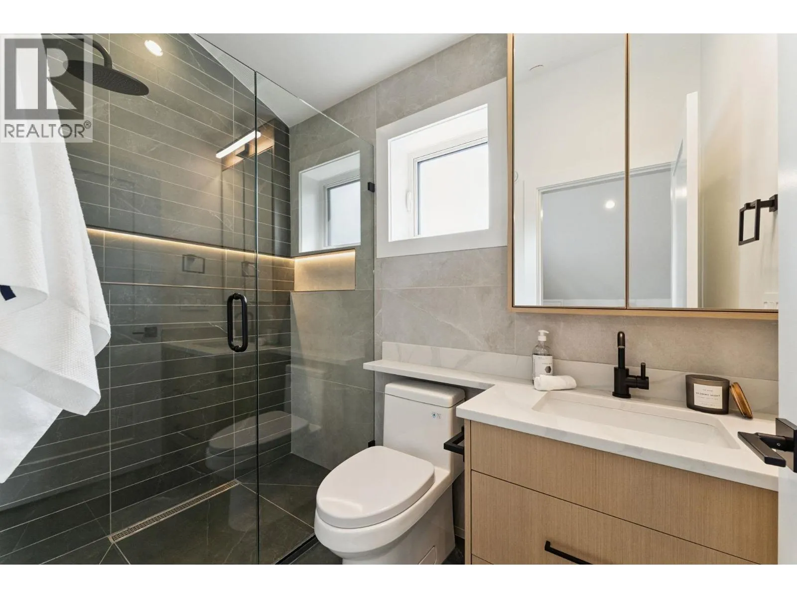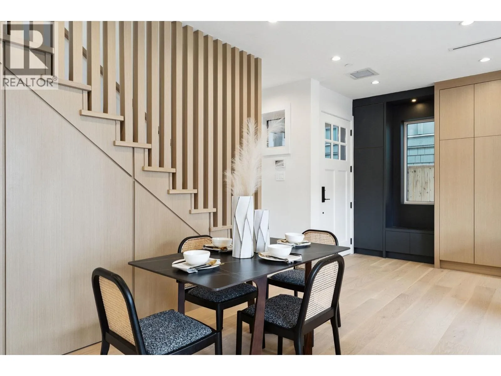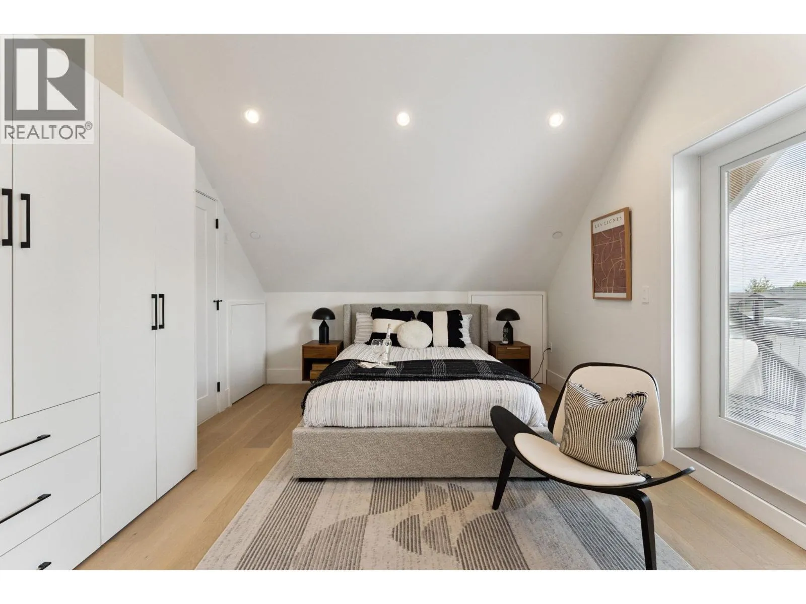 Welcome to this luxurious back-unit duplex crafted by Encore Collection in vibrant East Vancouver. Offering stunning downtown views, this home showcases high-end exterior finishes, blending Hardie, Brick, & Norwegian Fluted siding for a sophisticated design. This thoughtfully designed 3-bed, 3.5-bath home features an open-concept main floor that seamlessly connects the gourmet kitchen, living, dining, & outdoor spaces-perfect for both relaxing and entertaining. The kitchen is equipped with premium Fisher & Paykel appliances & sleek stone countertops. The second floor includes two primary beds, each w/its own luxurious ensuite. The top floor offers a spacious third bedroom with a private ensuite, providing the ultimate retreat for comfort & tranquility. Additional highlights include air conditioning, white oak hardwood floors, custom cabinetry, CCTV security, an alarm system, a 12' accordion patio door, & a private garage. (id:27476)