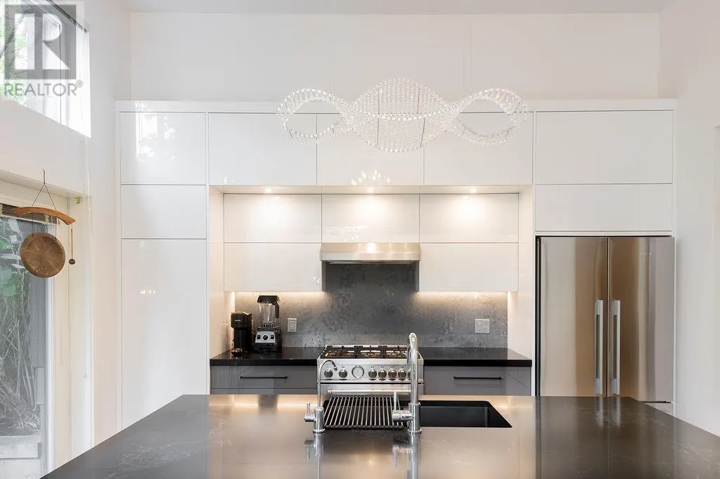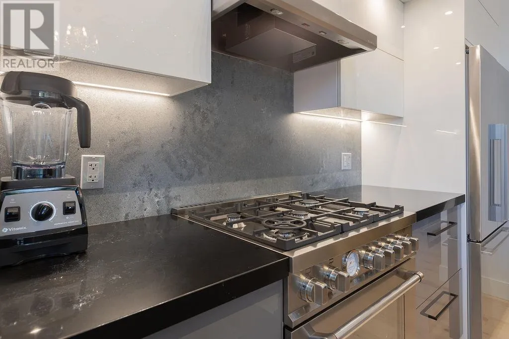 Developed by the award-winning Intracorp, this corner unit in the Chancellor community on the north UBC campus features a northeast orientation with a 12-foot high ceiling, enhance with abundant natural light. Renovated CHEF kitchen includes Luxury cabinetry, a Bertazzoni cooktop, Caesarstone countertops with waterfall edge, full slab backsplash. Flooring is Mirage DuraMatt engineered wide hardwood, paired with a granite fireplace. The upper level hosts a spacious master bedroom with high ceilings and upgrated wool carpet, two extra bedrooms with mountain and ocean views, and a den.Basement provides an open plan for a recreation room with the option for 4 th bedroom, In-suite laundry, and ample storage. Includes 2 underground parking stalls, private entry, large patio. (id:27476)