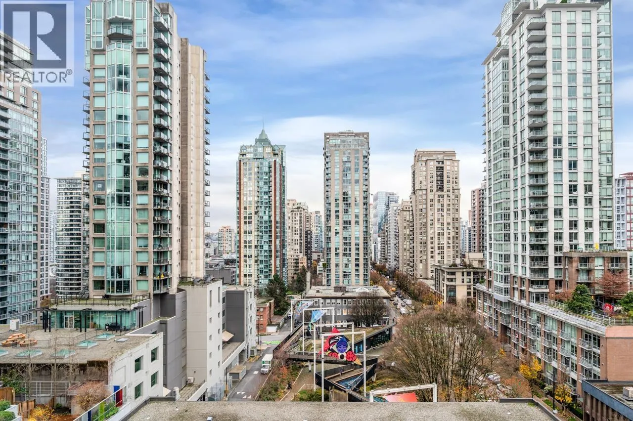 LOCATION LOCATION!!! A rare opportunity to invest or to own this 915 SqFt 2 beds + 2 baths + den + 1 parking unit at the R & R Building in the heart of Downtown Vancouver. This bright & cozy home features an open concept floorplan with views of the city and future park view! Open kitchen includes granite counter tops, stainless steel appliances, gas stove, and a huge in suite storage. All the great restaurants, coffee shops, shopping, and sport entertainment are all just steps away. "BC Place, Vancouver Public Library, Starbucks, Tractor, Medina and only few mins away from Granville entertainment strip, Pacific Centre, etc.. Don´t miss the chance to live on the most prestige street in Downtown Vancouver, "Robson Street".Wonderful well maintained building with concierge service, very motivated seller, try your offer! Open house Sat.&Sun. Nov 8&9 (2-4pm). (id:27476)