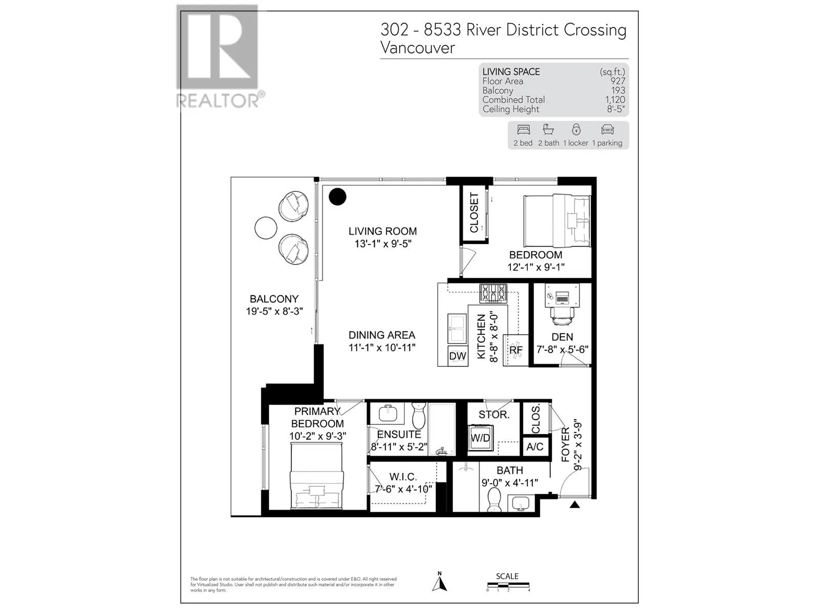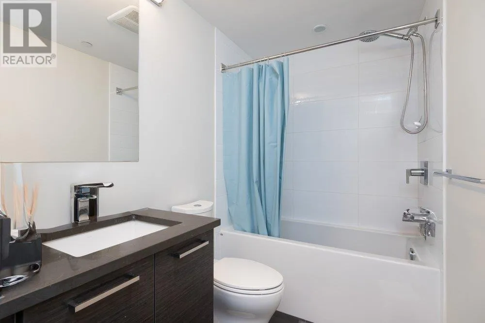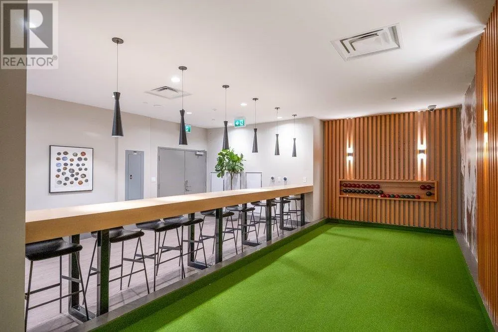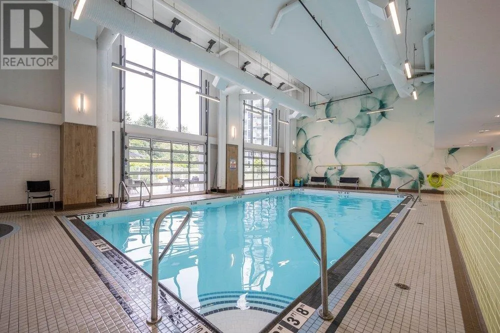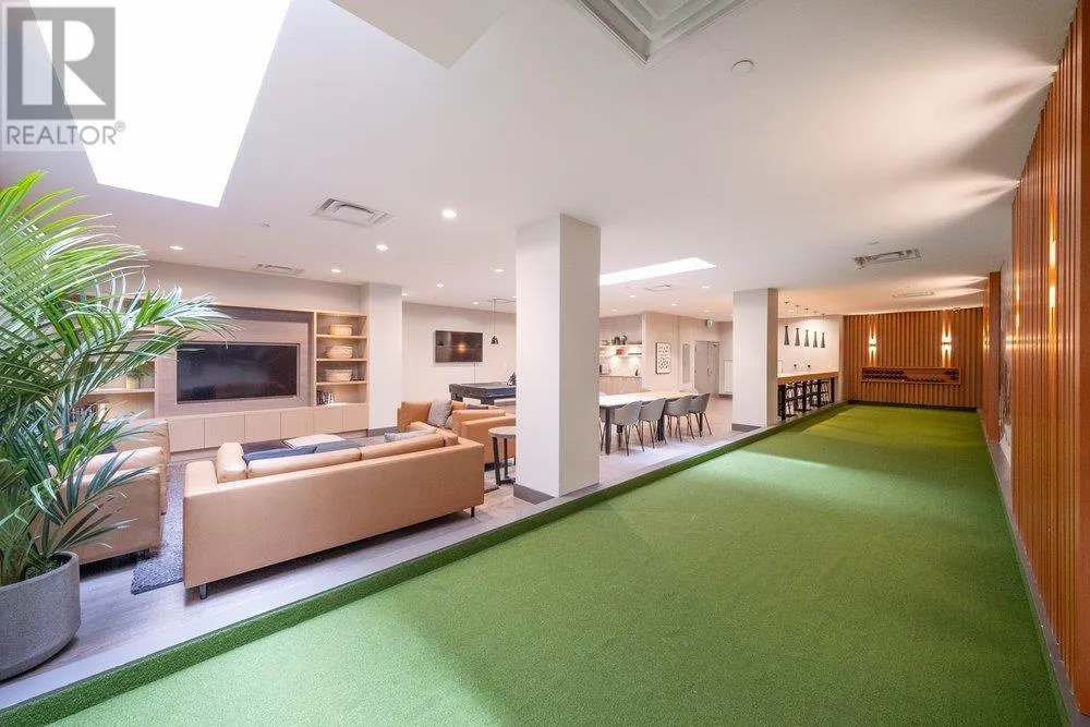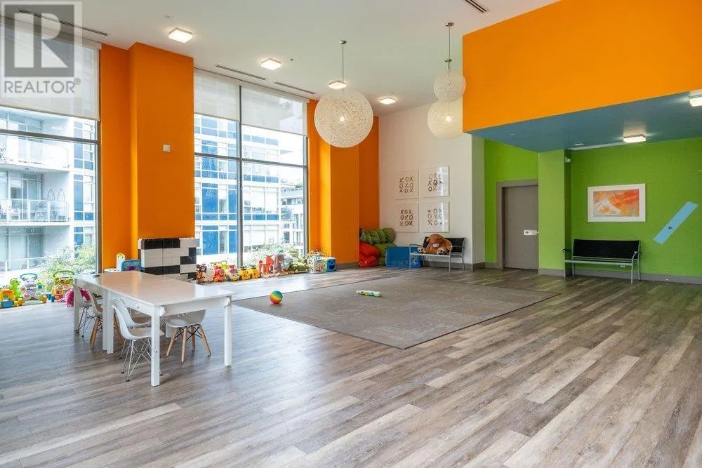 Seldom available inside CORNER SUITE at the vibrant River District Village. This AIR-CONDTIONED spacious 2-bedroom + den, 2 bath home features 8'-5" ceilings for the bright & airy feeling with a direct view to the quiet inner courtyard, laminated floorings, large covered balcony. The chef inspired kitchen boasts quartz countertops & tiled backsplash, high-end Jenn-Air stainless steel appliances with gas cooktop. Primary bedroom features a large walk-in-closet and a 3 piece ensuite with in-floor radiant heating. The second bedroom is non-adjoining for maximum privacy. Enjoy exclusive access to Club Central, a 14,000sf amenity center with indoor pool, hot tub, sauna, steam room, a fully equipped gym, indoor basketball & squash courts plus multiple social lounges, kids' playroom and more. (id:27476)