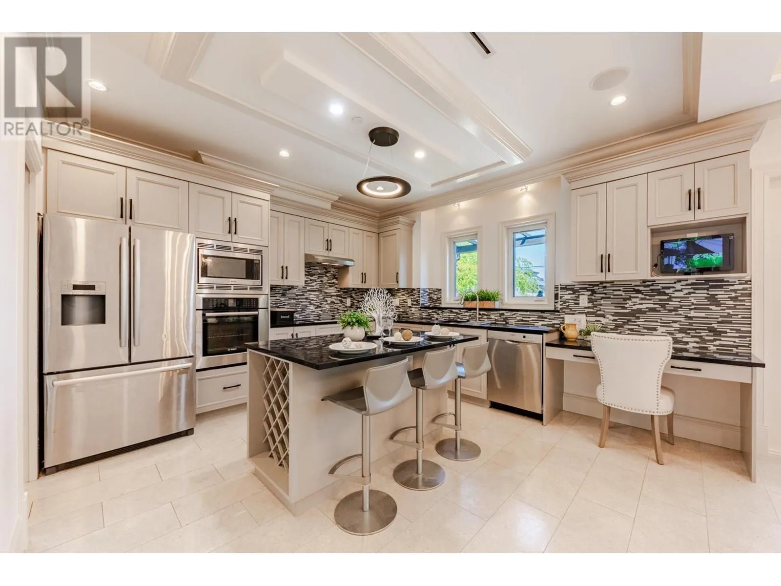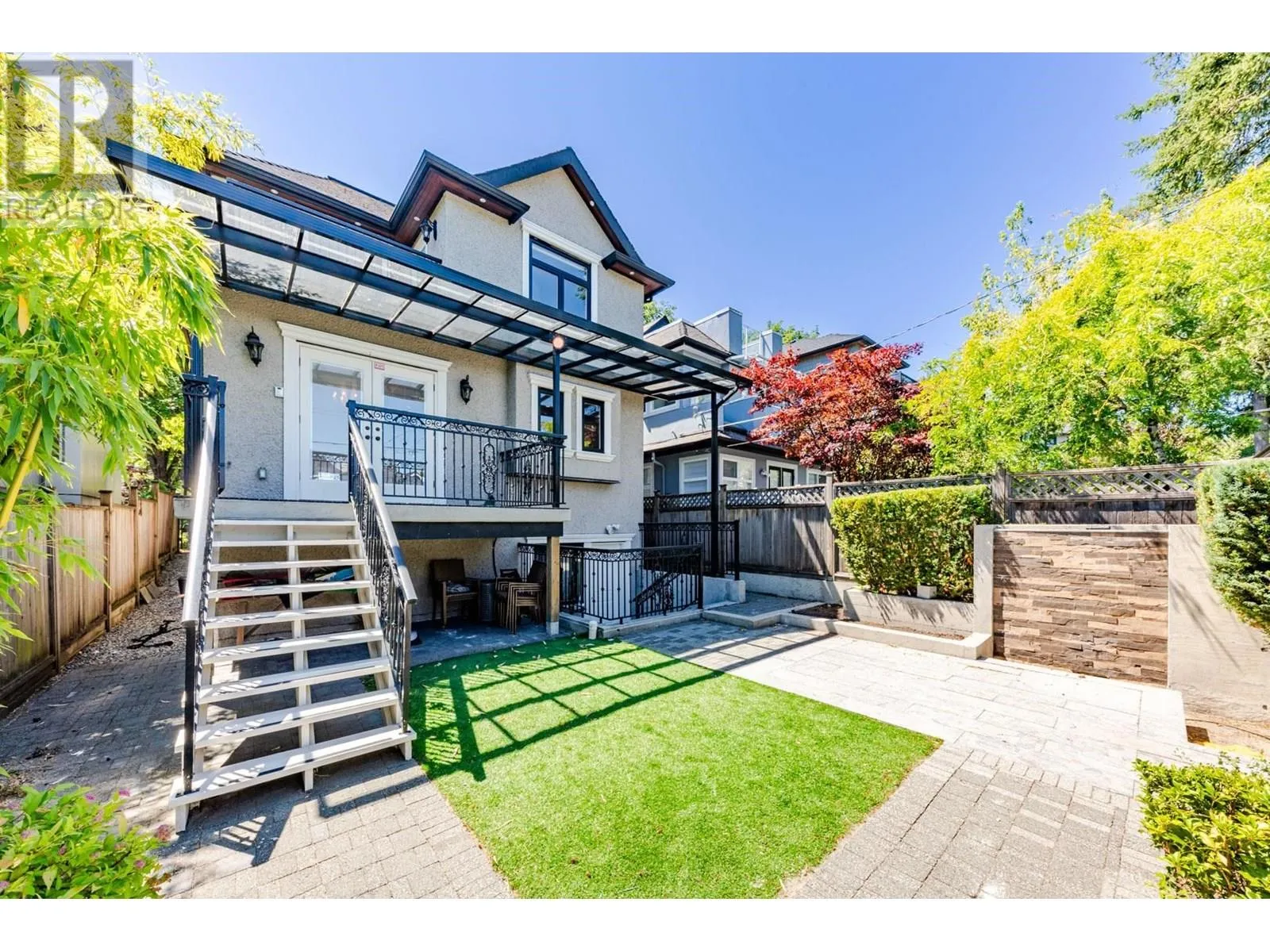 Stunning home in the prestigious Dunbar neighborhood. Over 2800 sq. ft. of luxury living built with supreme workmanship and attention to details. This home features hardwood floors throughout, contemporary light fixtures, gourmet kitchen and wok kitchen with high end S/S appliances, A/C, HRV. Upstairs with 3 bedrooms and 2 bathroom. Spacious master suite with a large walk-in closet. Basement has a recreation room for entertaining. 2 bedrooms self contained suite with separate entrance. Large private backyard with a lovely fountain, well maintained garden; 2 car detached garage. Easy access to Lord Byng Secondary School, Lord Kitchener/Queen Elizabeth Elementary. And St. George's School, UBC, shopping & restaurants are also within easy reach. Open house Saturday 2-4pm (id:27476)