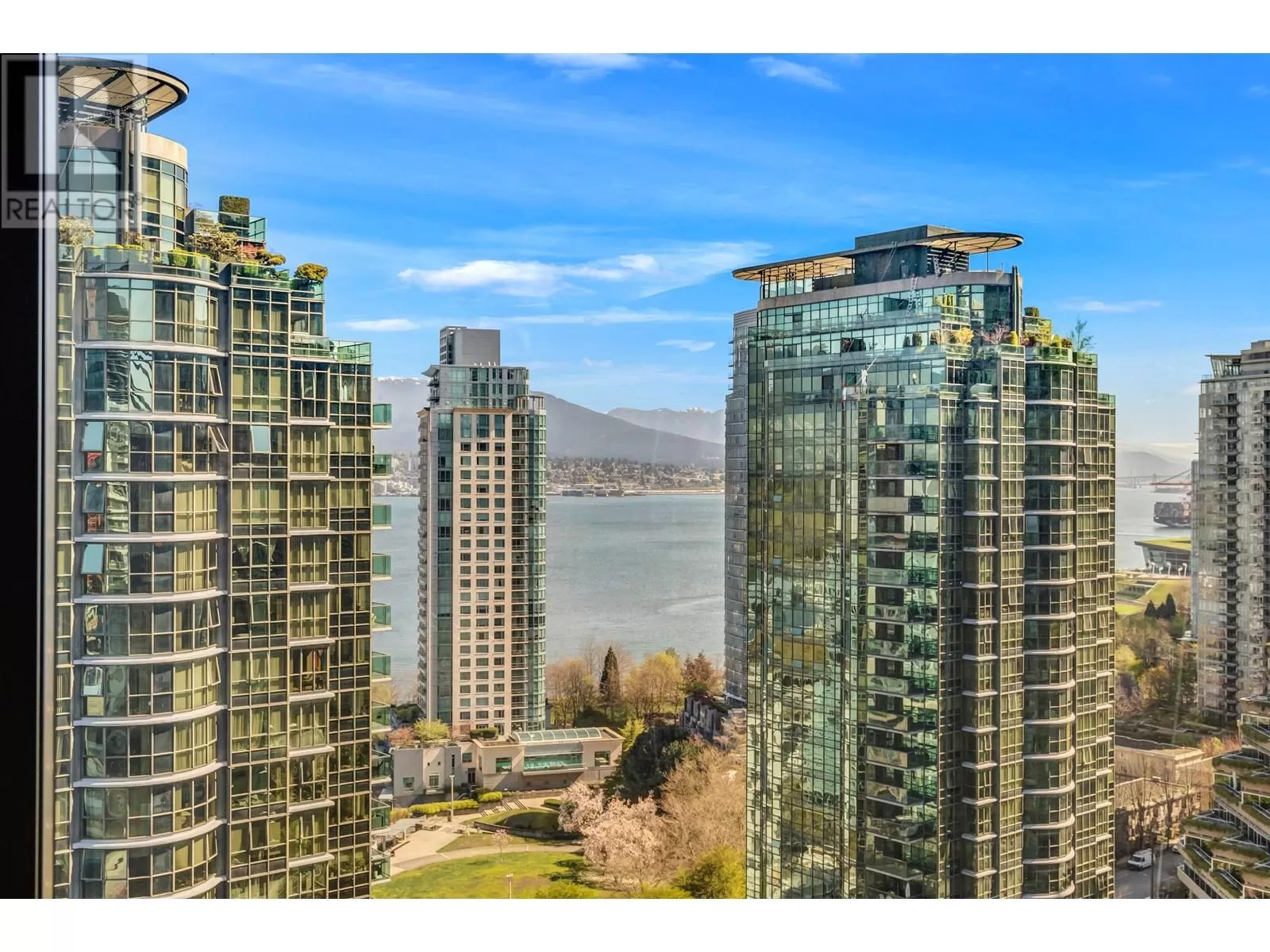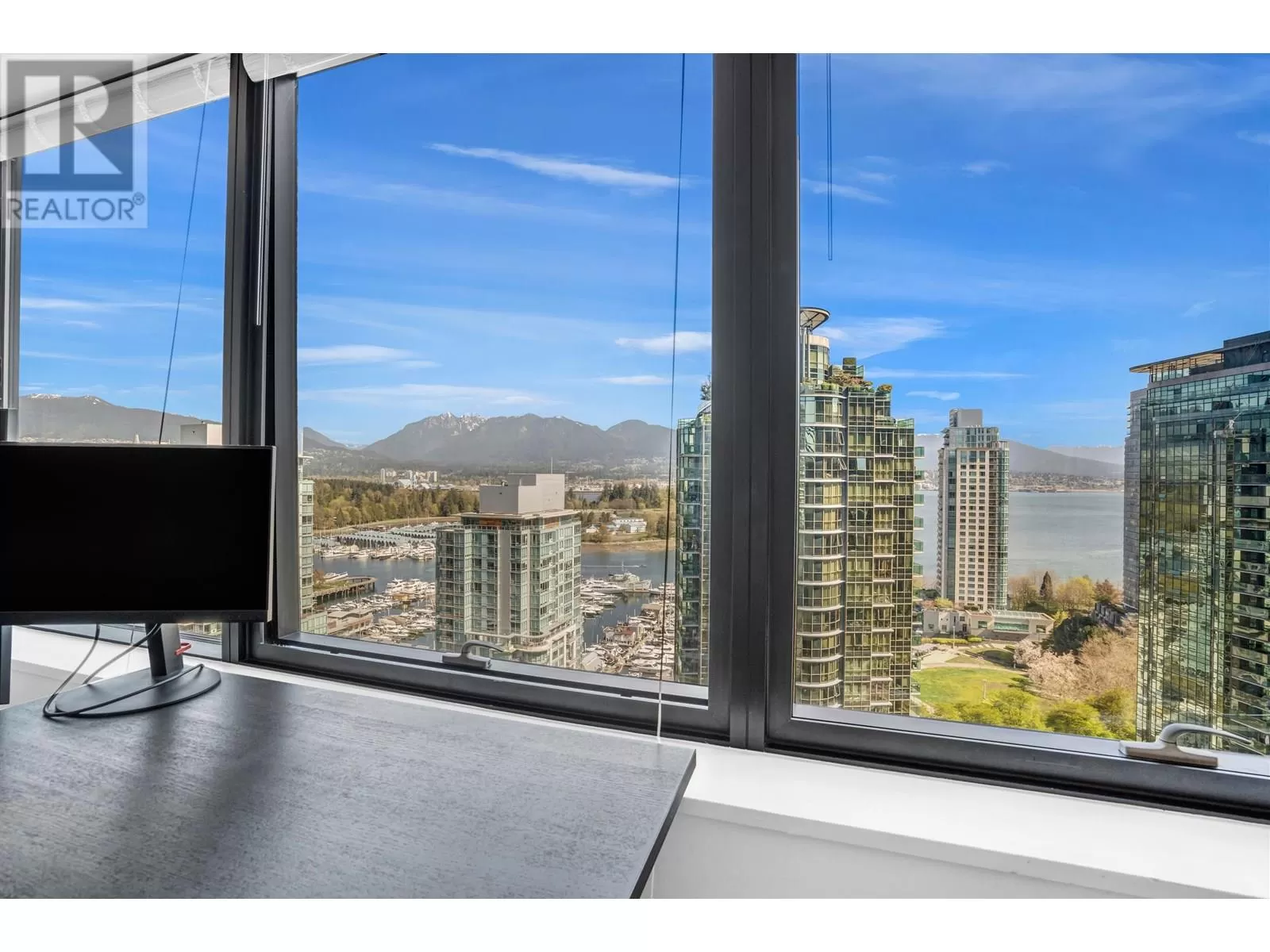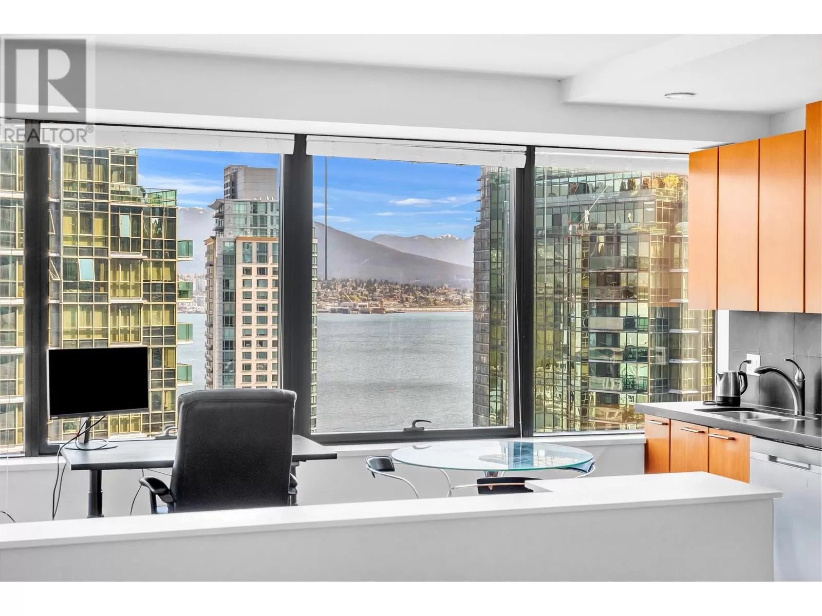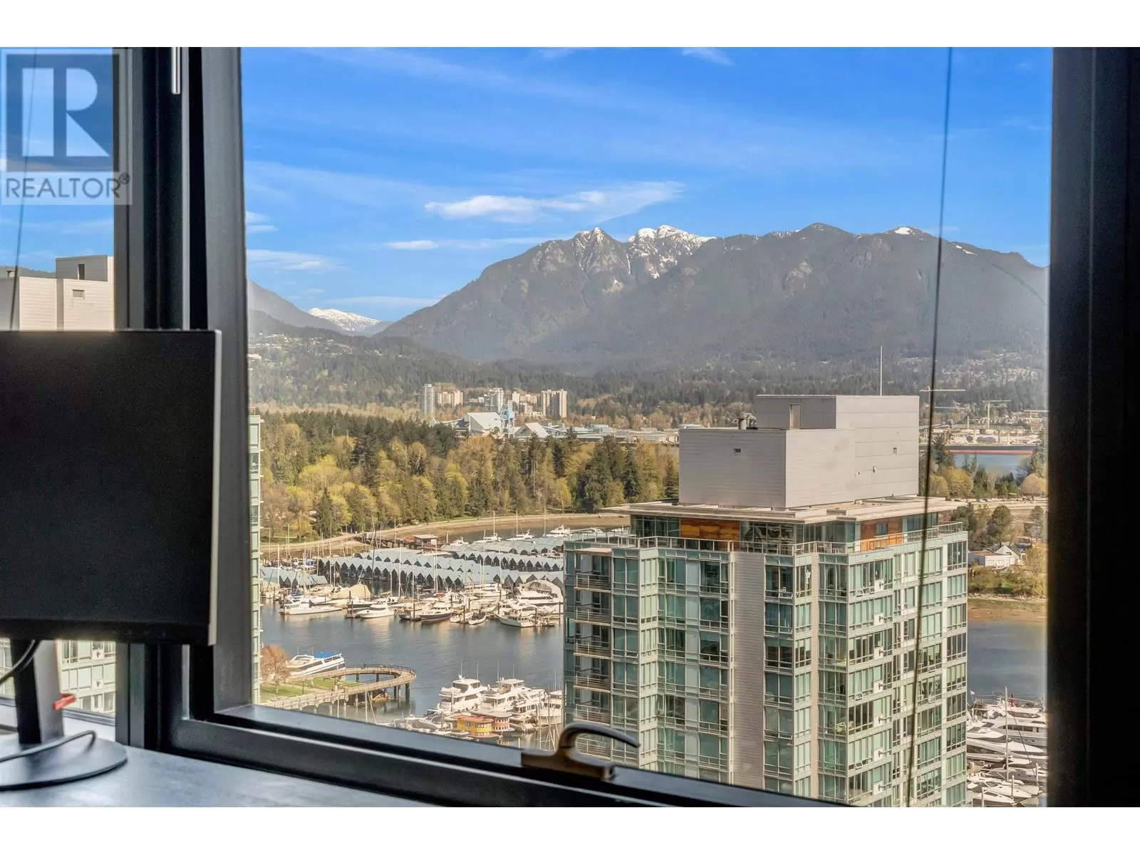 Perched on the top floor of a coveted address in Coal Harbour, this elegantly appointed one-bedroom and den residence offers sweeping, uninterrupted views of the harbour, Burrard Inlet, Stanley Park, and the North Shore mountains. With soaring ceilings and a thoughtfully designed open-concept layout, the home captures both light and landscape in perfect harmony. The north-facing exposure provides a tranquil backdrop, making every moment at home feel elevated. Included are one secured parking stall and access to ample visitor parking. Set within walking distance to the famed seawall, marina, boutique shops, Urban Fare, Robson Market, transit options, and an array of celebrated cafés and restaurants, this location places the best of Vancouver at your doorstep. This pet- and rental-friendly building offers flexibility for both discerning homeowners and investors. The home is currently tenanted on a month-to-month basis($2,718); 24 hours´ notice is required for all viewings. Open House Sunday July 27th 1-3 pm (id:27476)