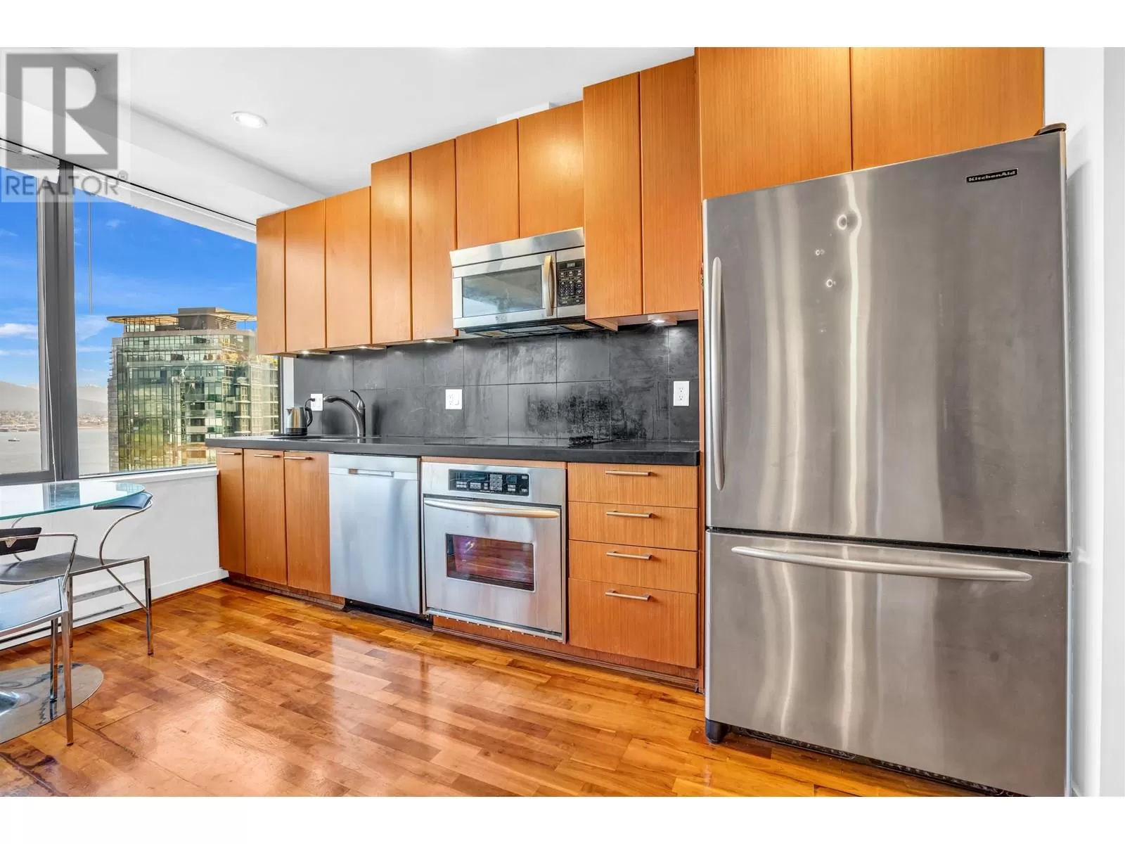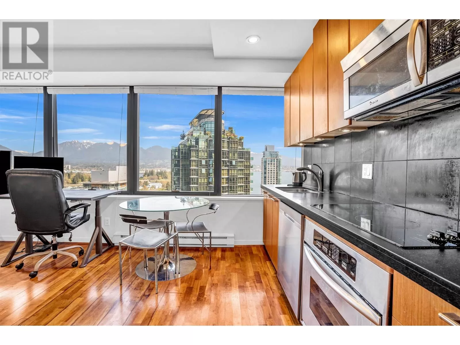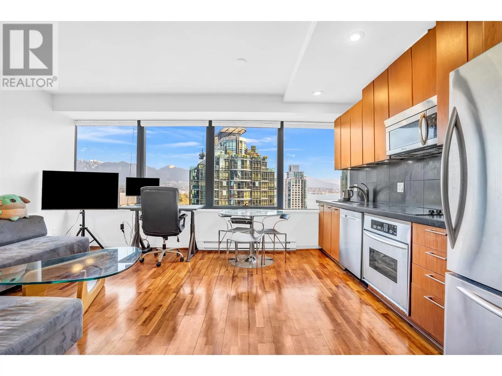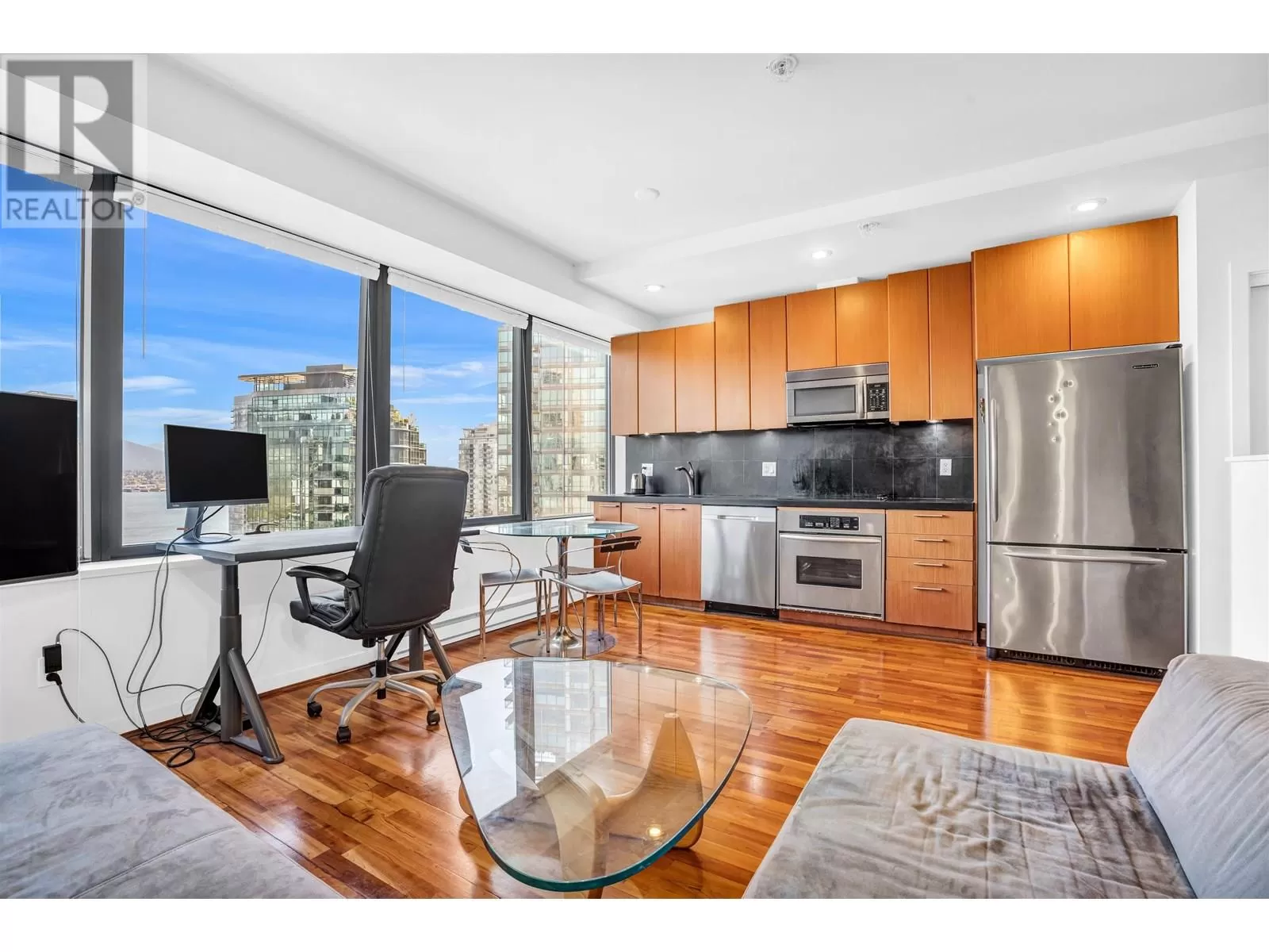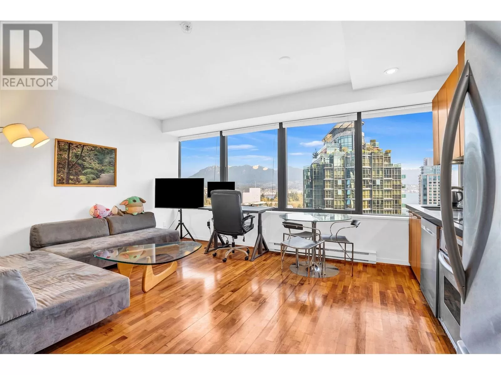 Perched on the top floor of a coveted address in Coal Harbour, this elegantly appointed one-bedroom and den residence offers sweeping, uninterrupted views of the harbour, Burrard Inlet, Stanley Park, and the North Shore mountains. With soaring ceilings and a thoughtfully designed open-concept layout, the home captures both light and landscape in perfect harmony. The north-facing exposure provides a tranquil backdrop, making every moment at home feel elevated. Included are one secured parking stall and access to ample visitor parking. Set within walking distance to the famed seawall, marina, boutique shops, Urban Fare, Robson Market, transit options, and an array of celebrated cafés and restaurants, this location places the best of Vancouver at your doorstep. This pet- and rental-friendly building offers flexibility for both discerning homeowners and investors. The home is currently tenanted on a month-to-month basis($2,718); 24 hours´ notice is required for all viewings. Open House Sunday July 27th 1-3 pm (id:27476)