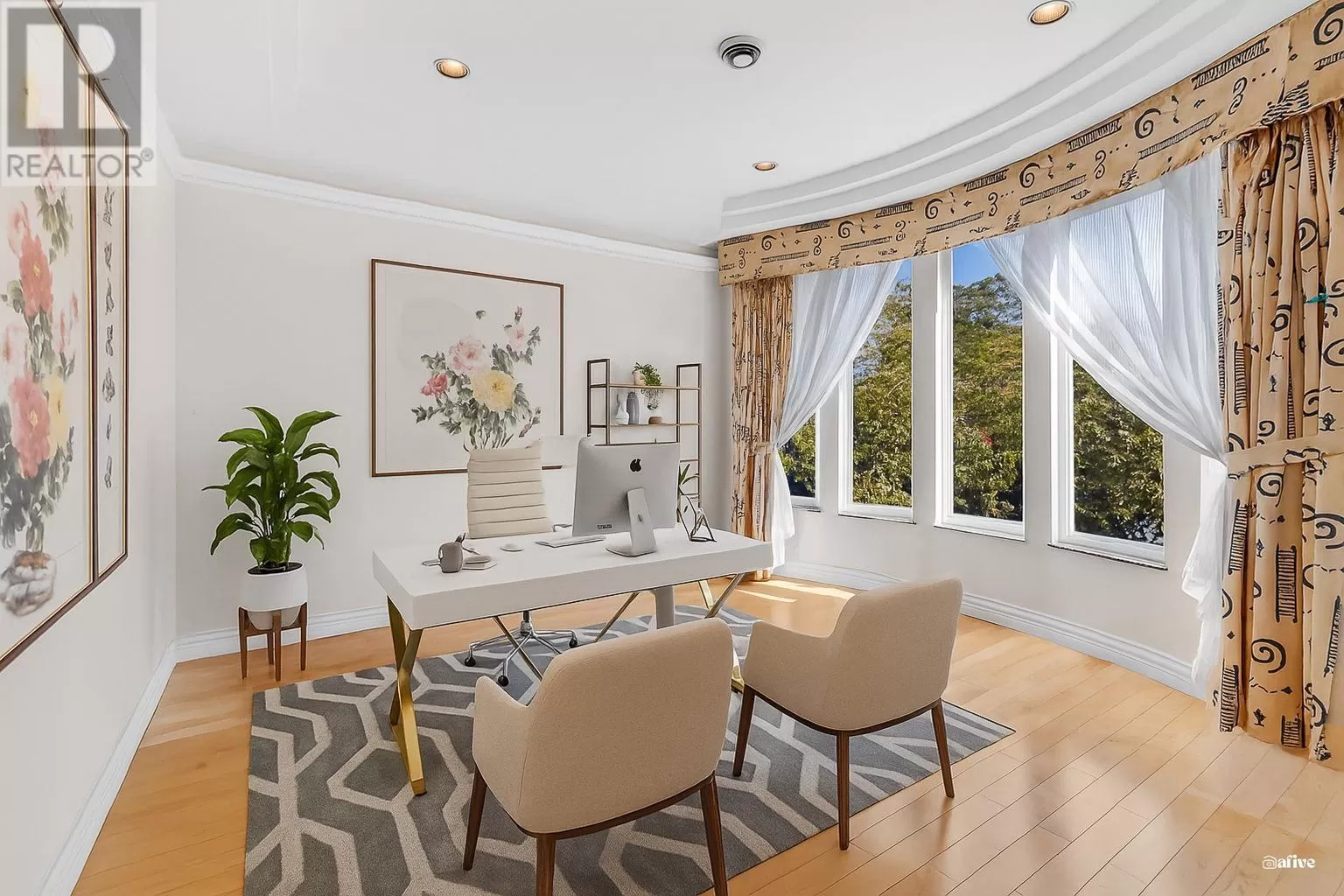 Vancouver West prestigious South Granville, this 3,934 sqft custom-built home sits on a 50x126ft lot with potential for future multiplex development. Featuring 5 bedrooms, 6 baths, home theater room, 3-car garage, radiant heat, hardwood floors, and high ceilings with a grand spiral staircase. Quiet, private yard with no back alley and convenient access to 56th Ave. School Catchments: David Lloyd George Elementary, Sir Winston Churchill Secondary. (id:27476)